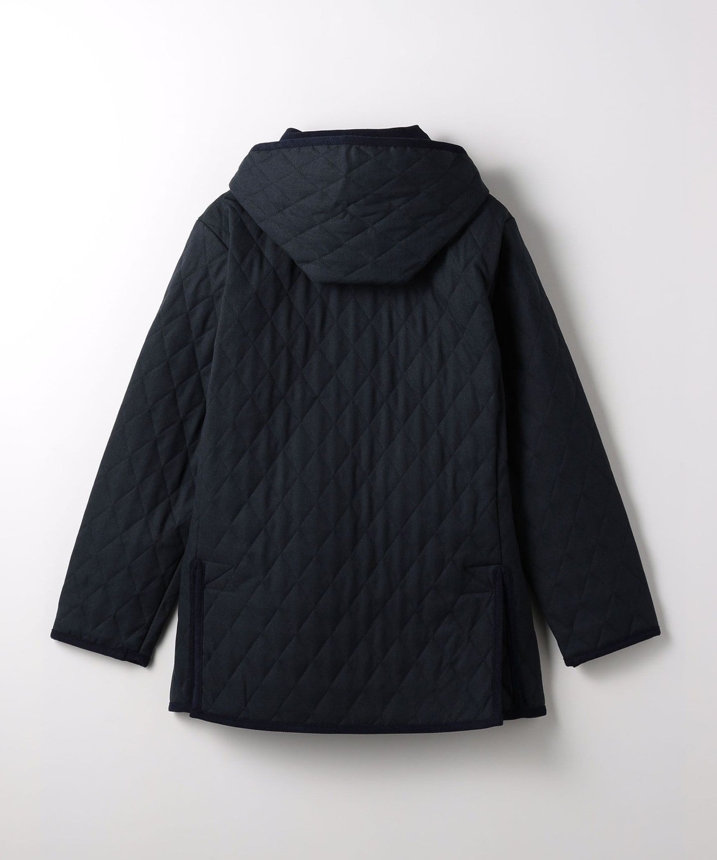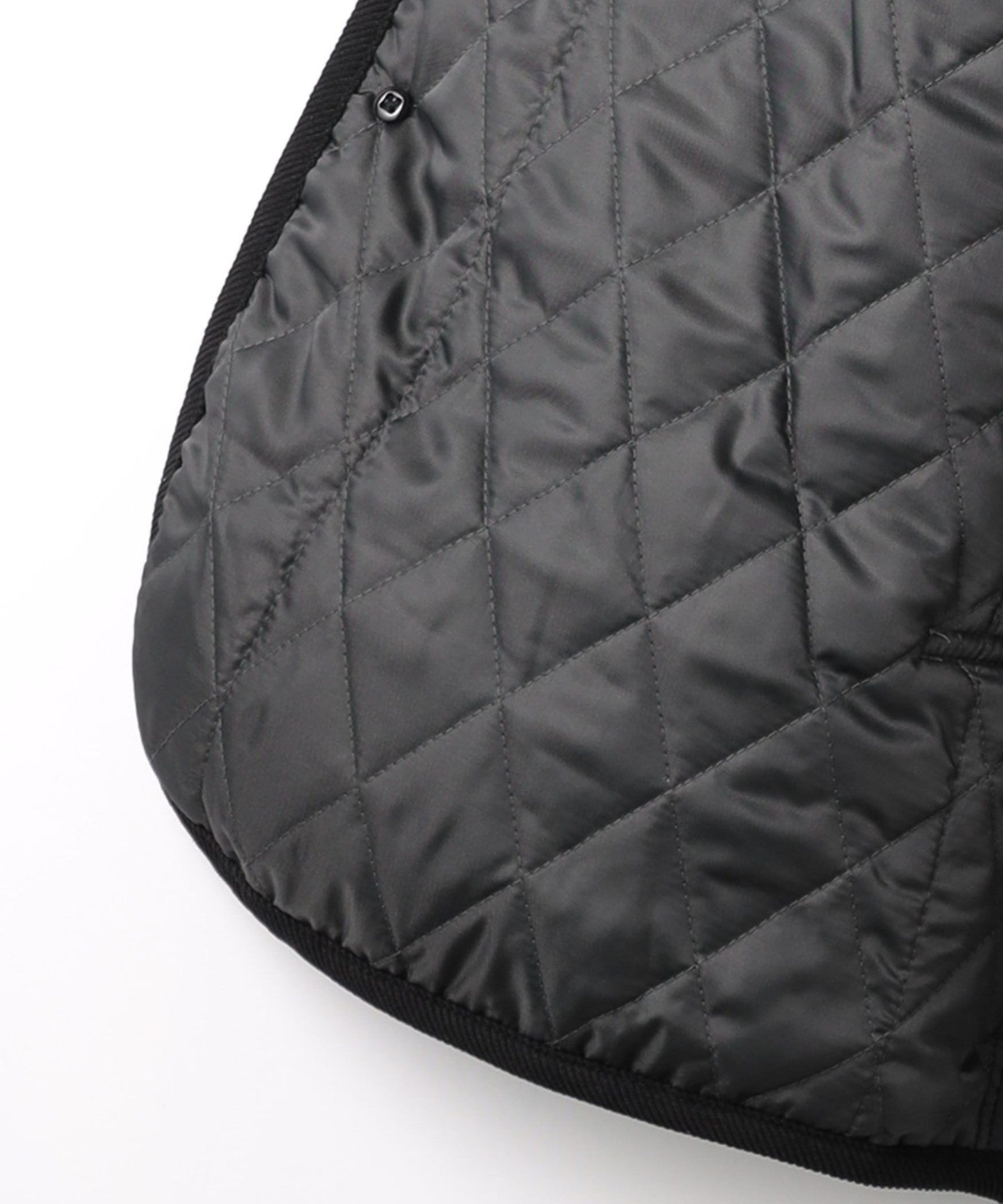 A padded coat with a unique look created by diamond pattern stitching.