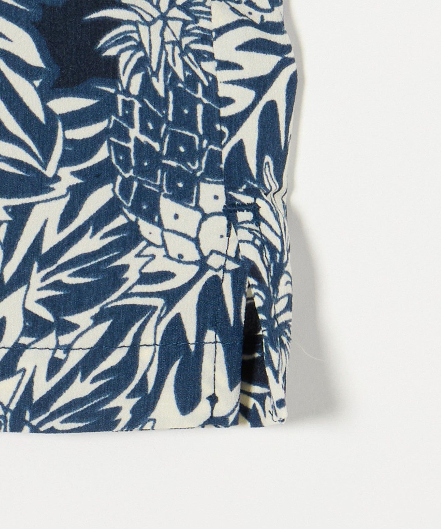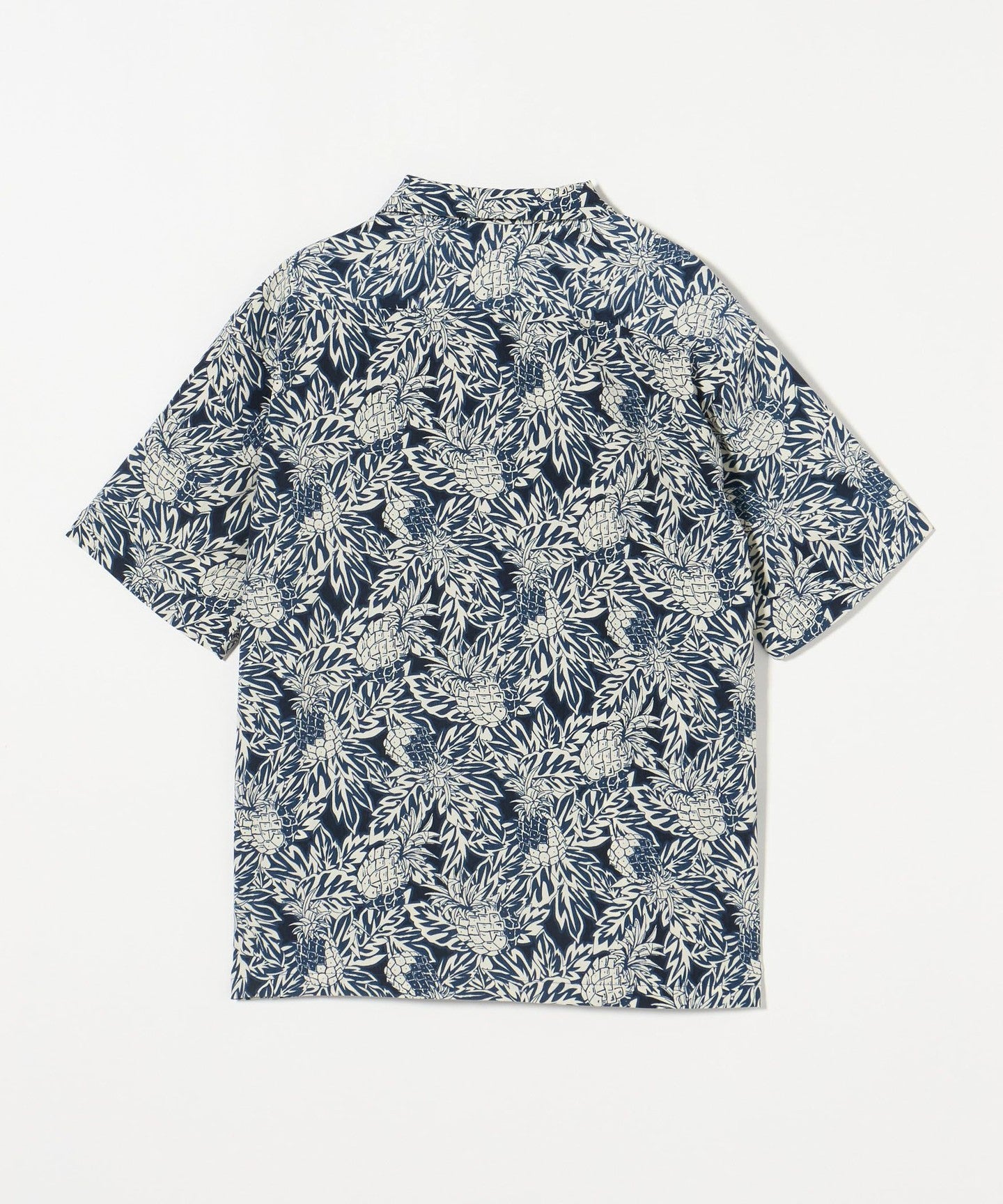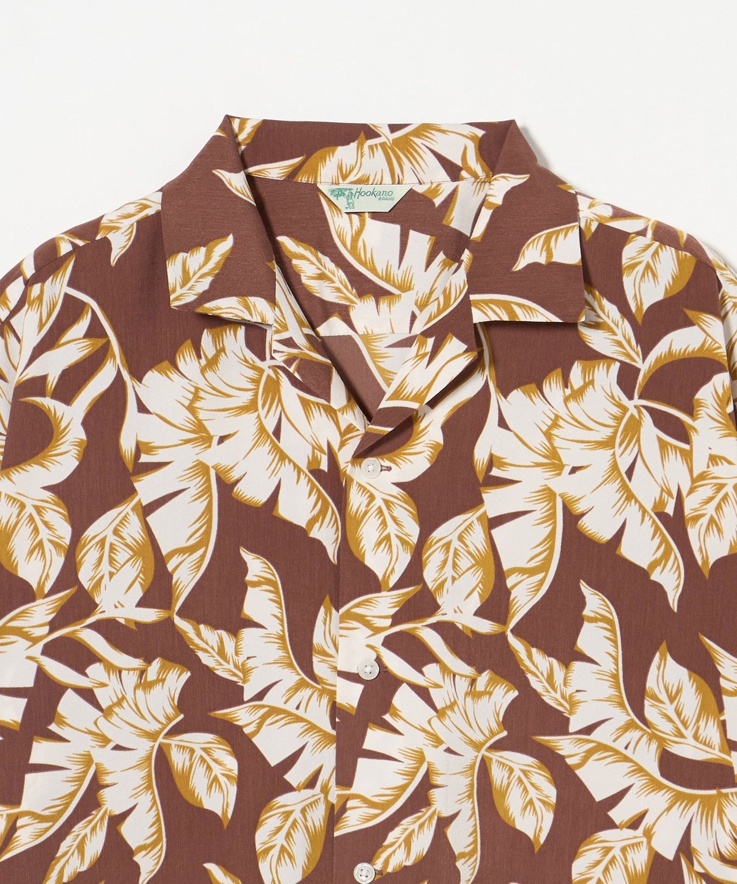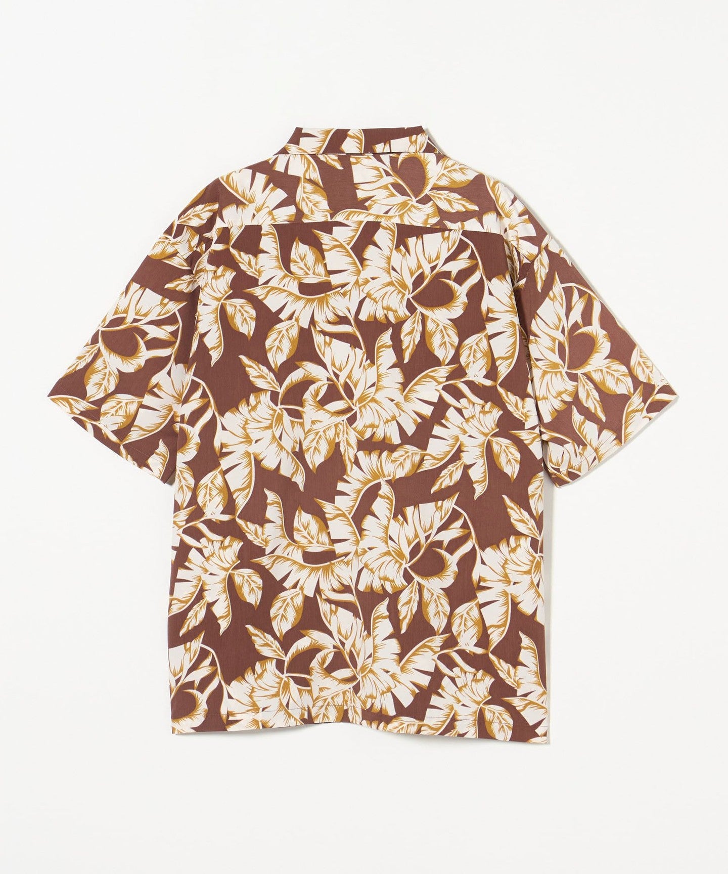An open-collar shirt made of jacquard material with a botanical pattern that uses shadows to create a perfect summer look.