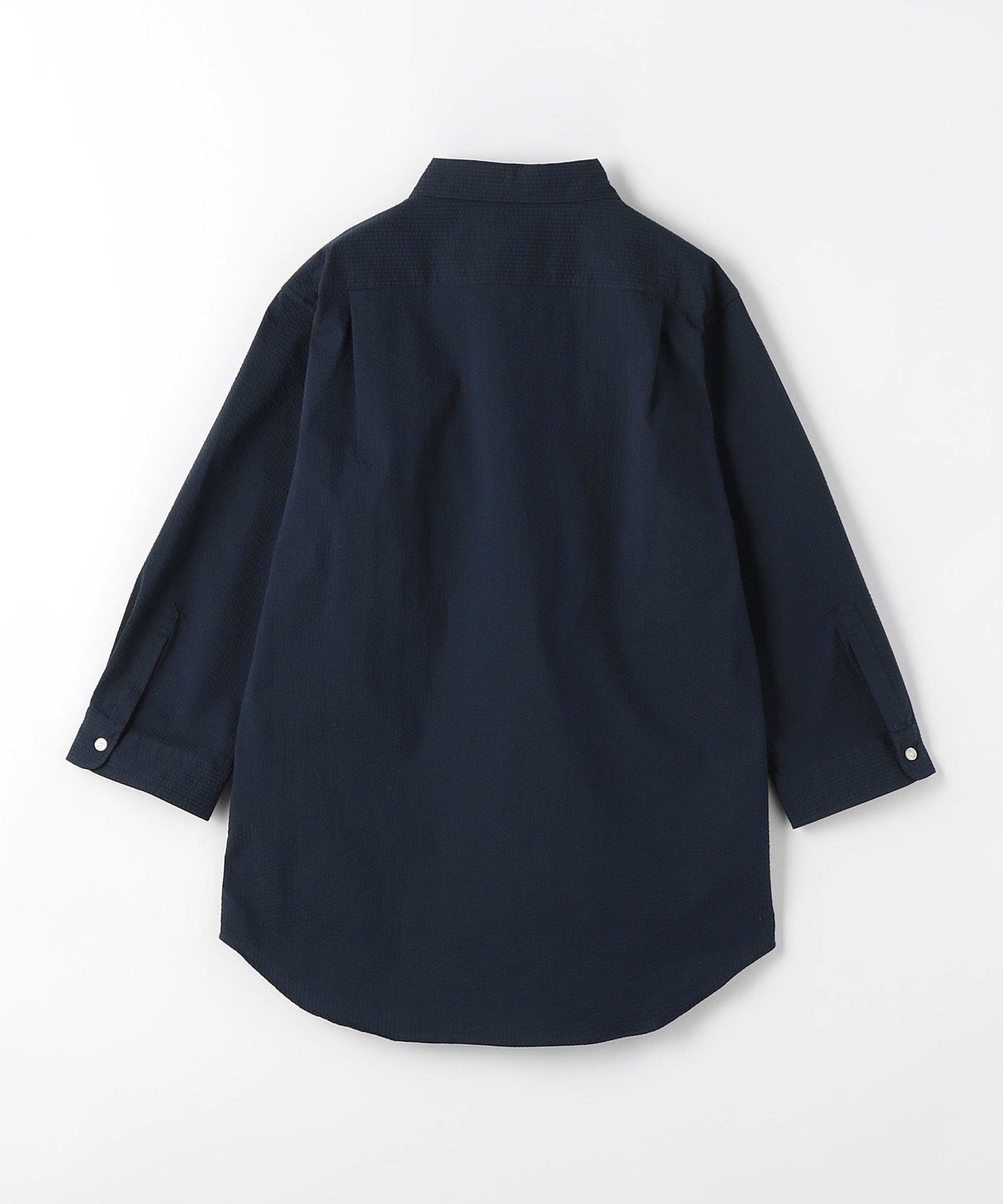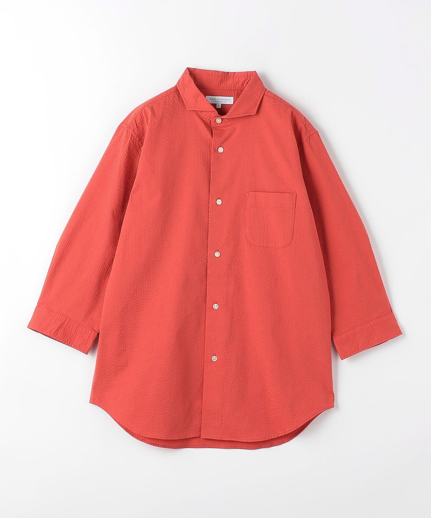 A three-quarter sleeve shirt with a cutaway collar and a clean neckline.