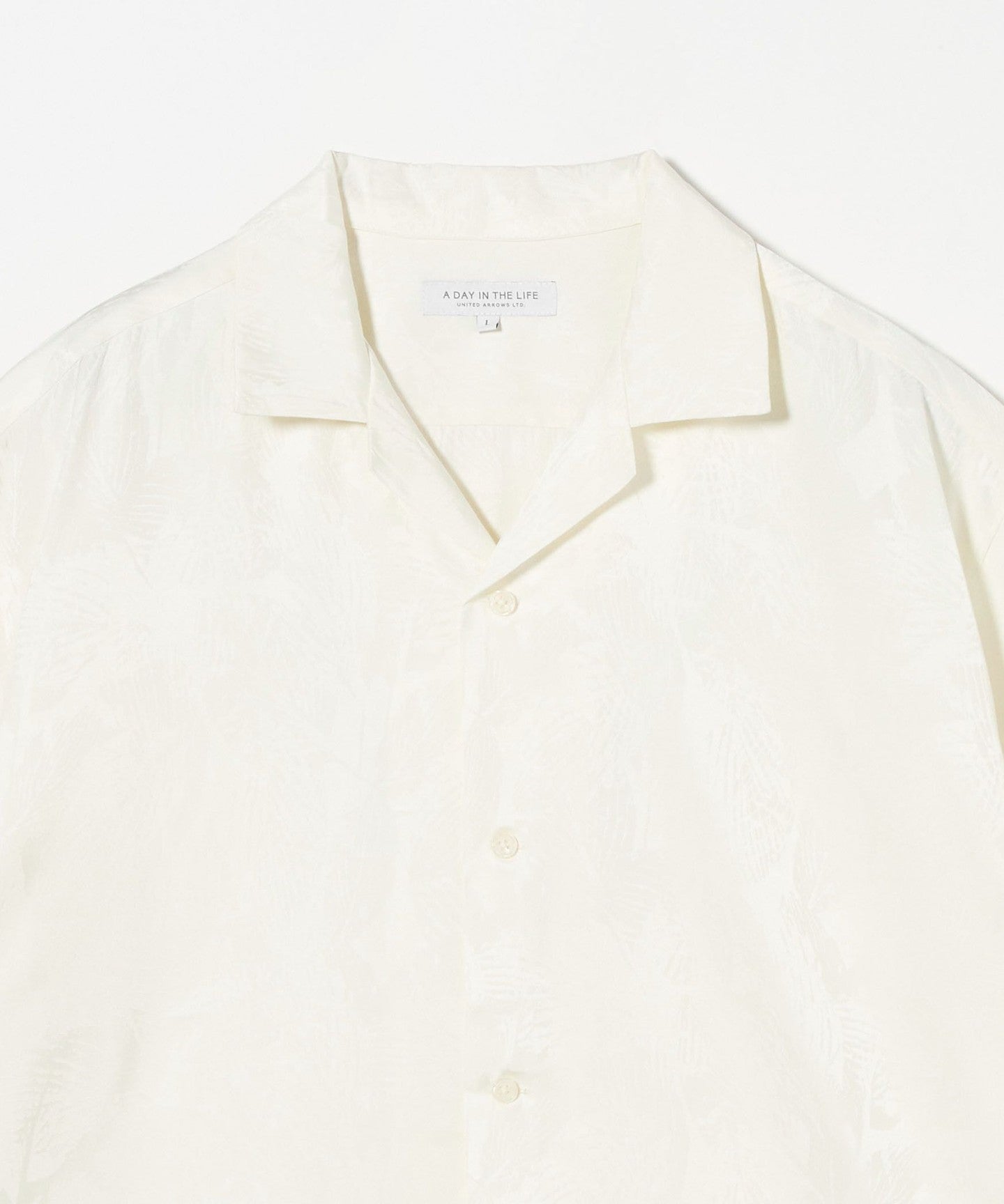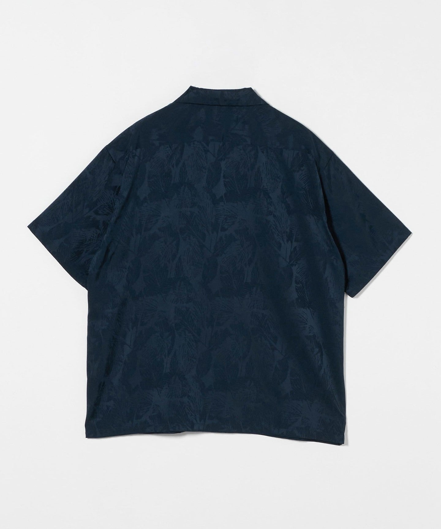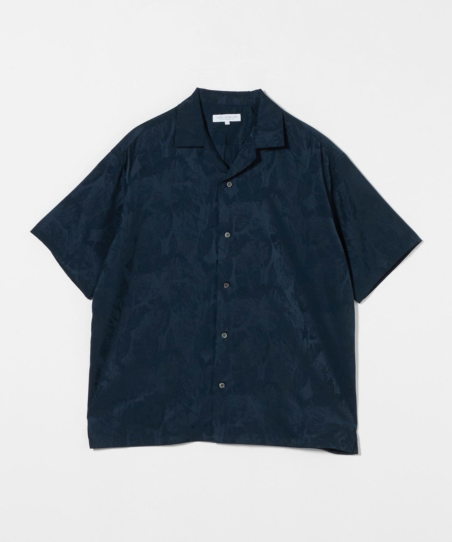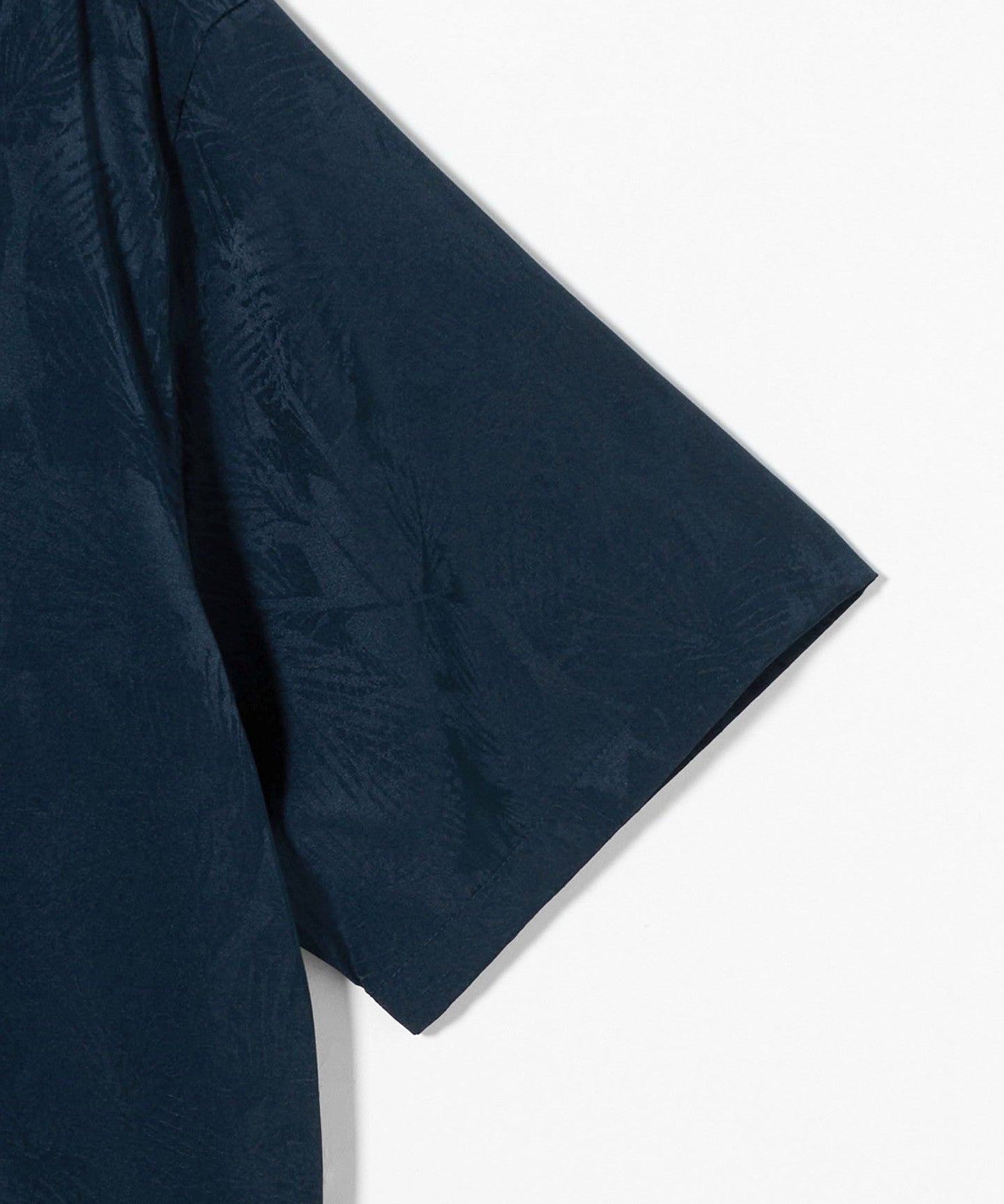 An open-collar shirt made of jacquard material with a botanical pattern that uses shadows to create a perfect summer look.