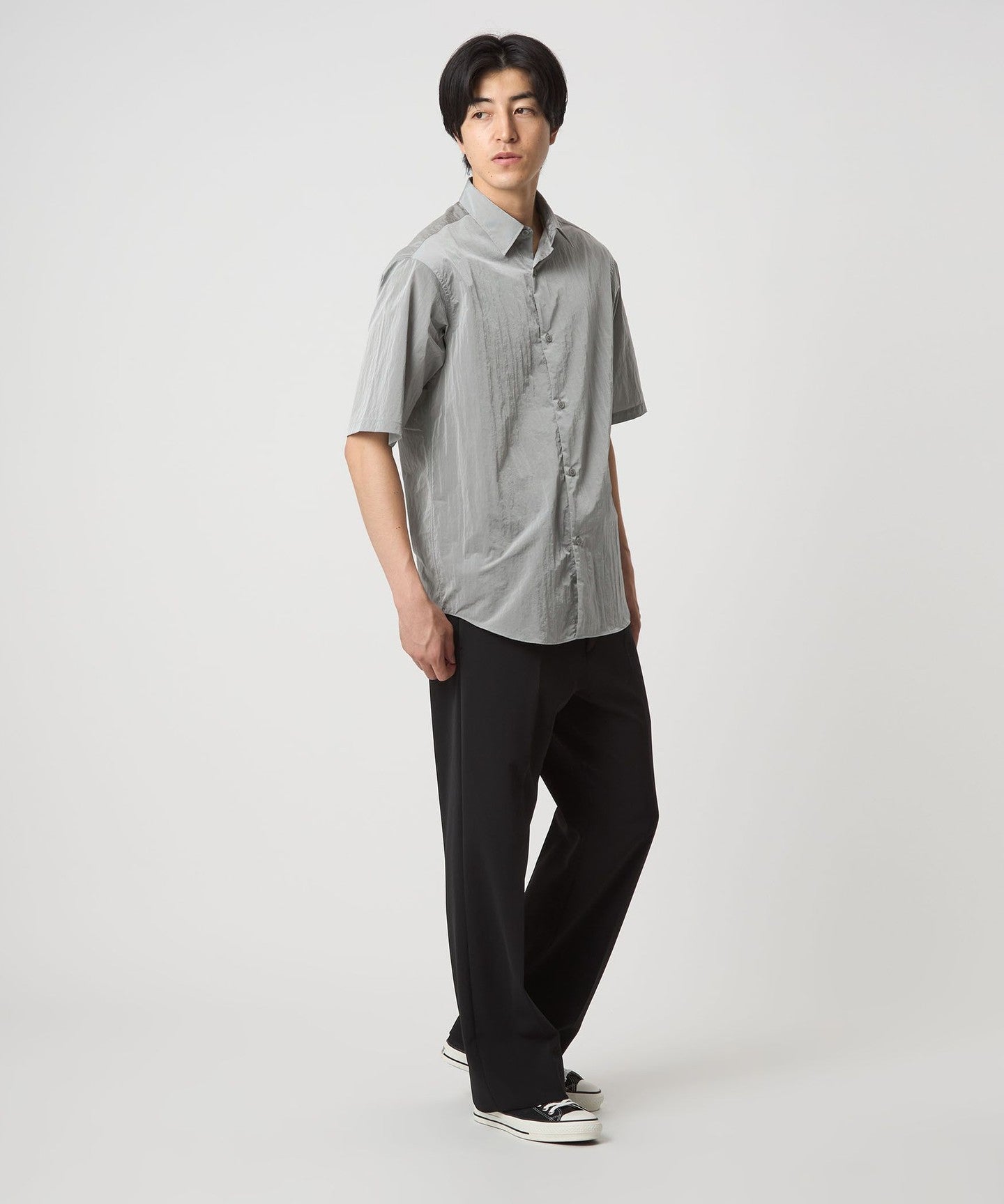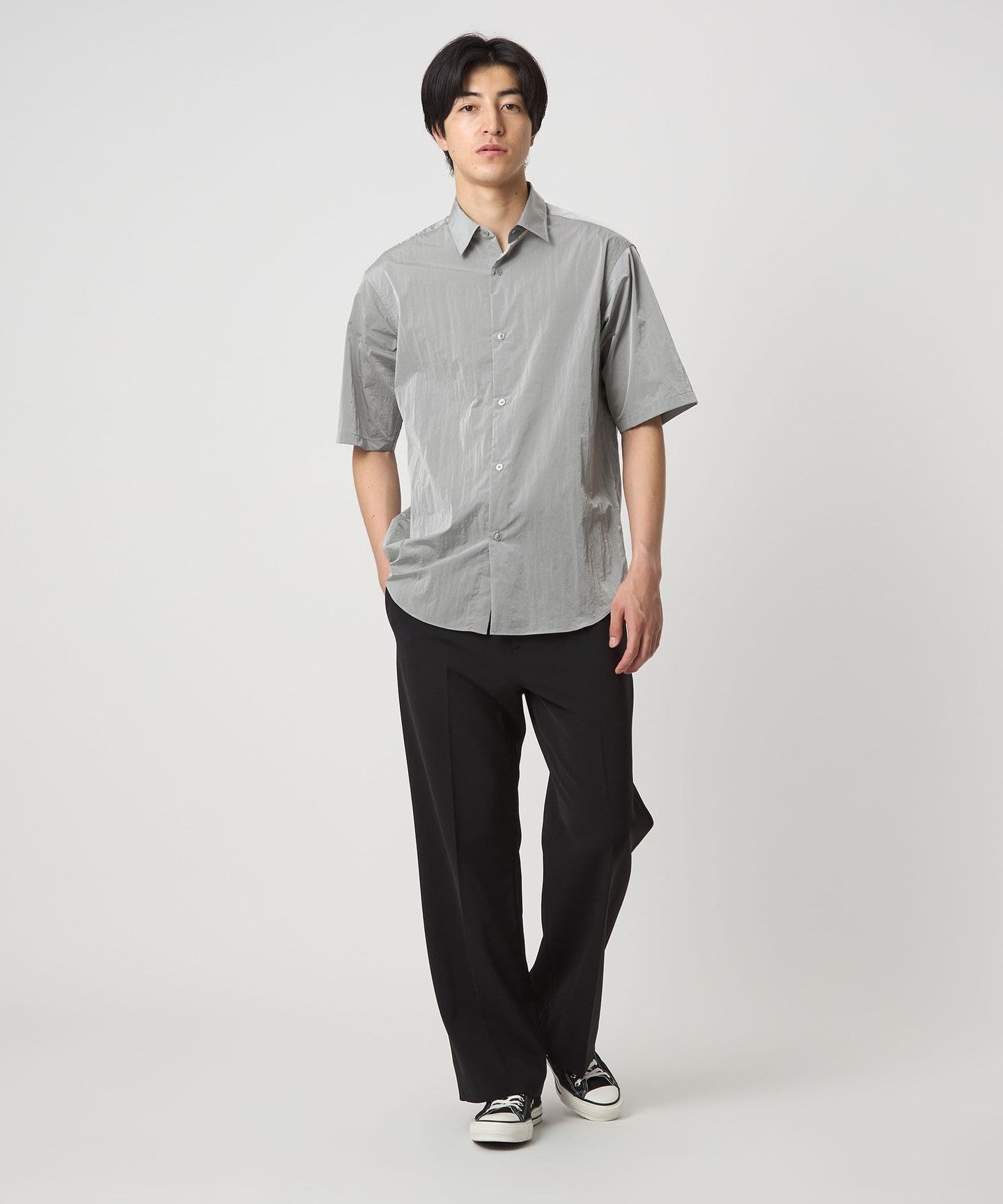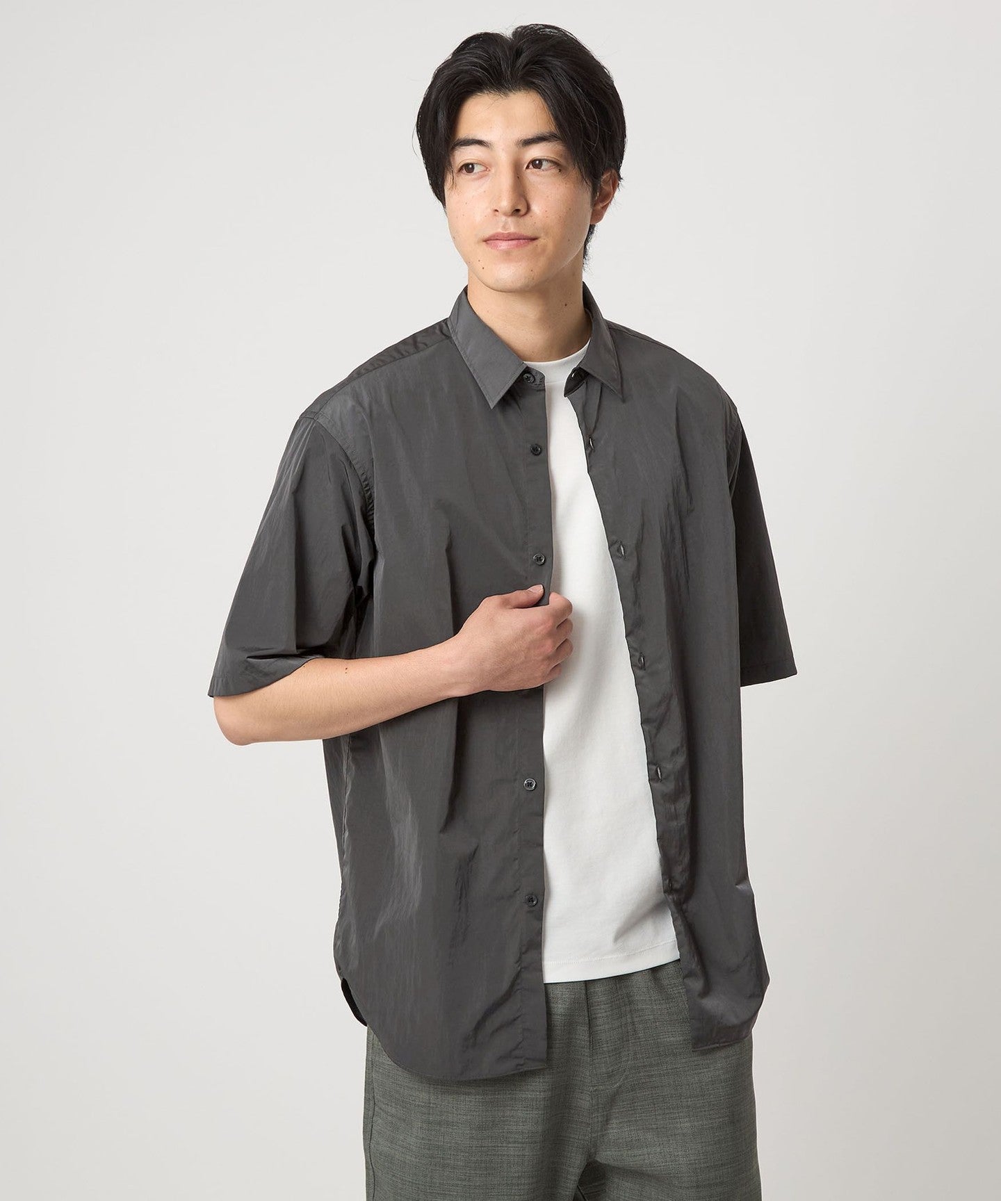 Glossy Nylon Relaxed Regular Collar Shirt - Water-absorbent and quick-drying -