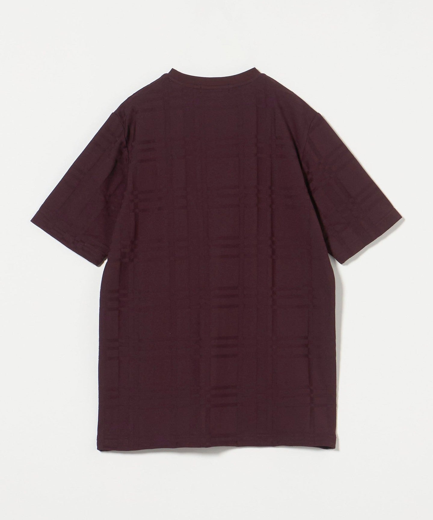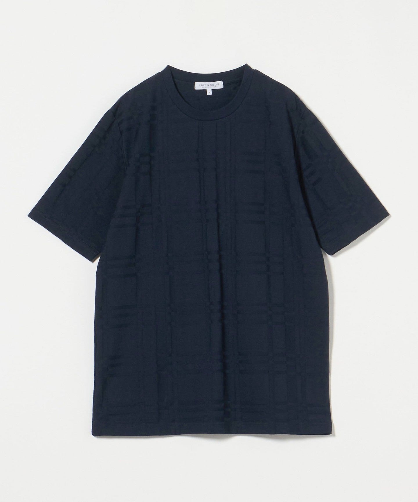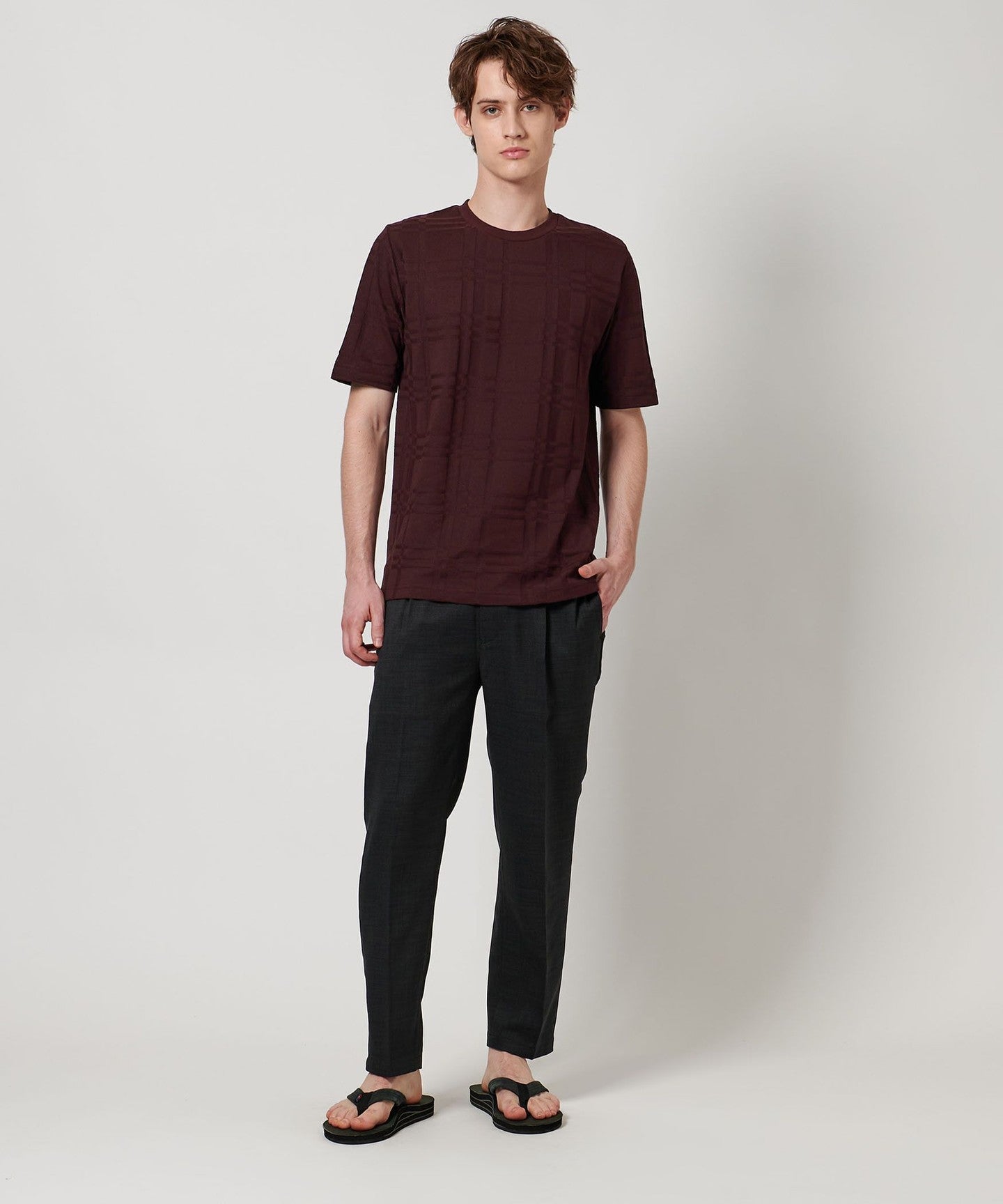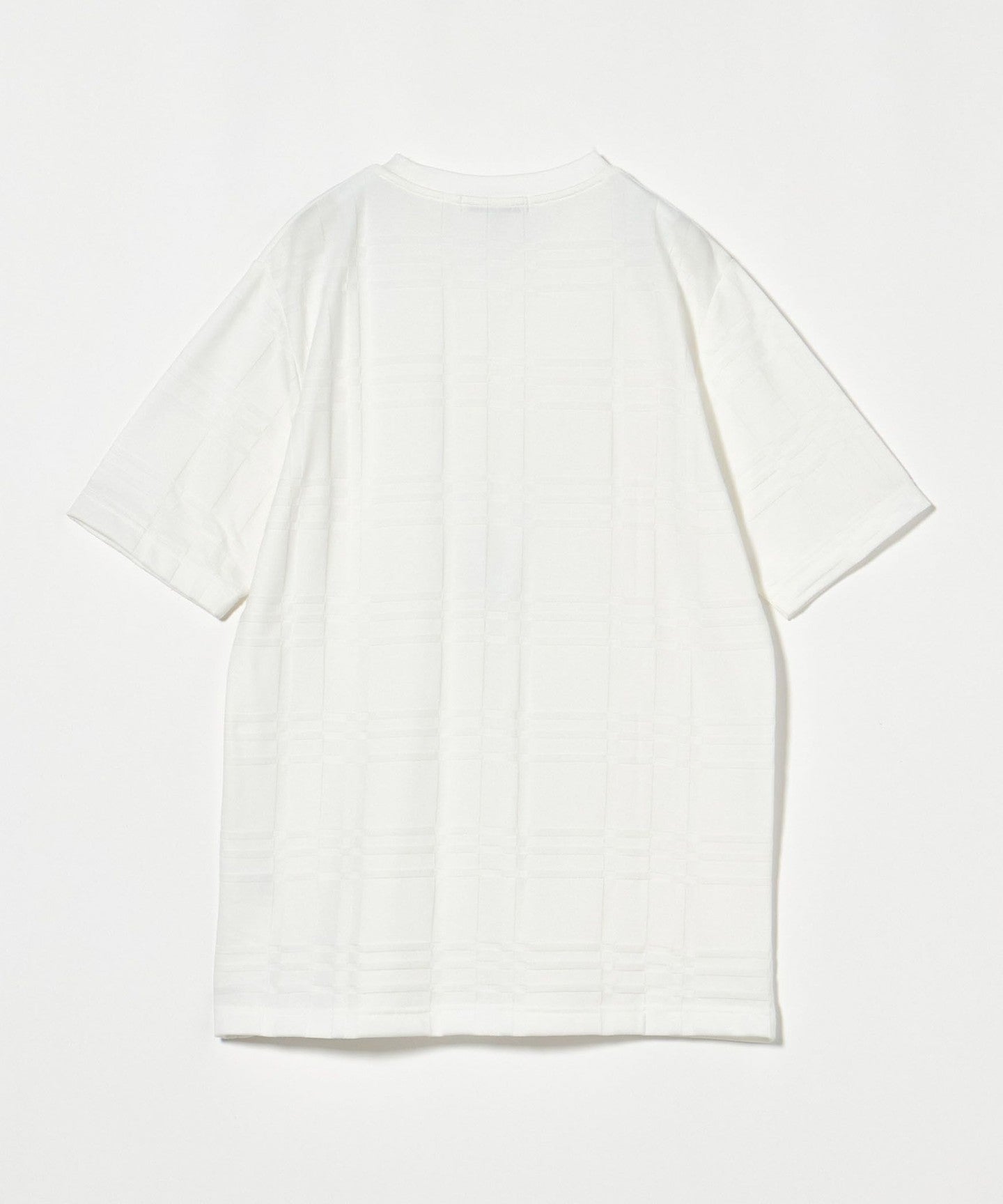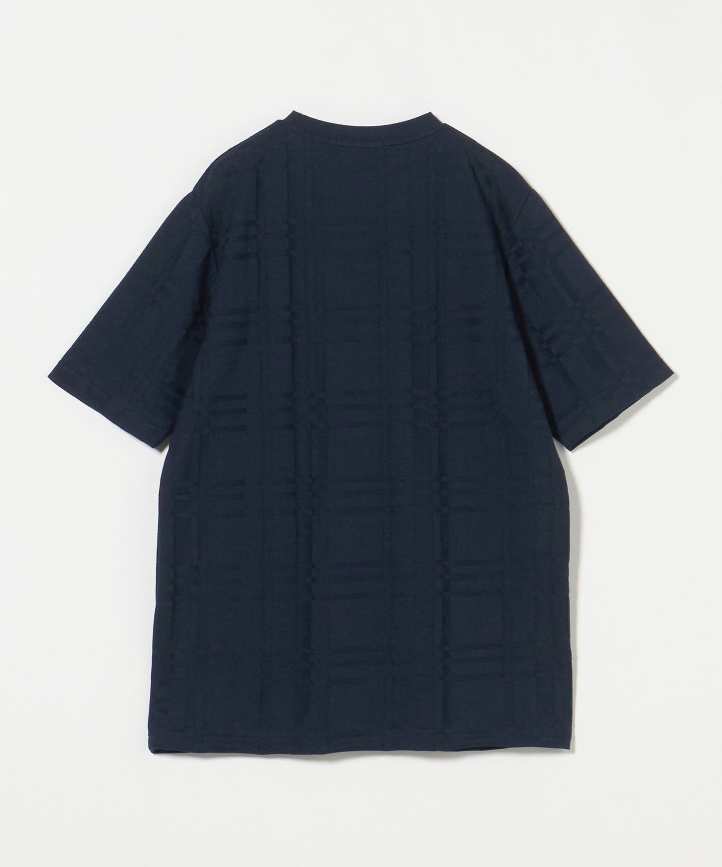 A cut-and-sew top with a subtle check pattern created by the unevenness of the knit fabric.