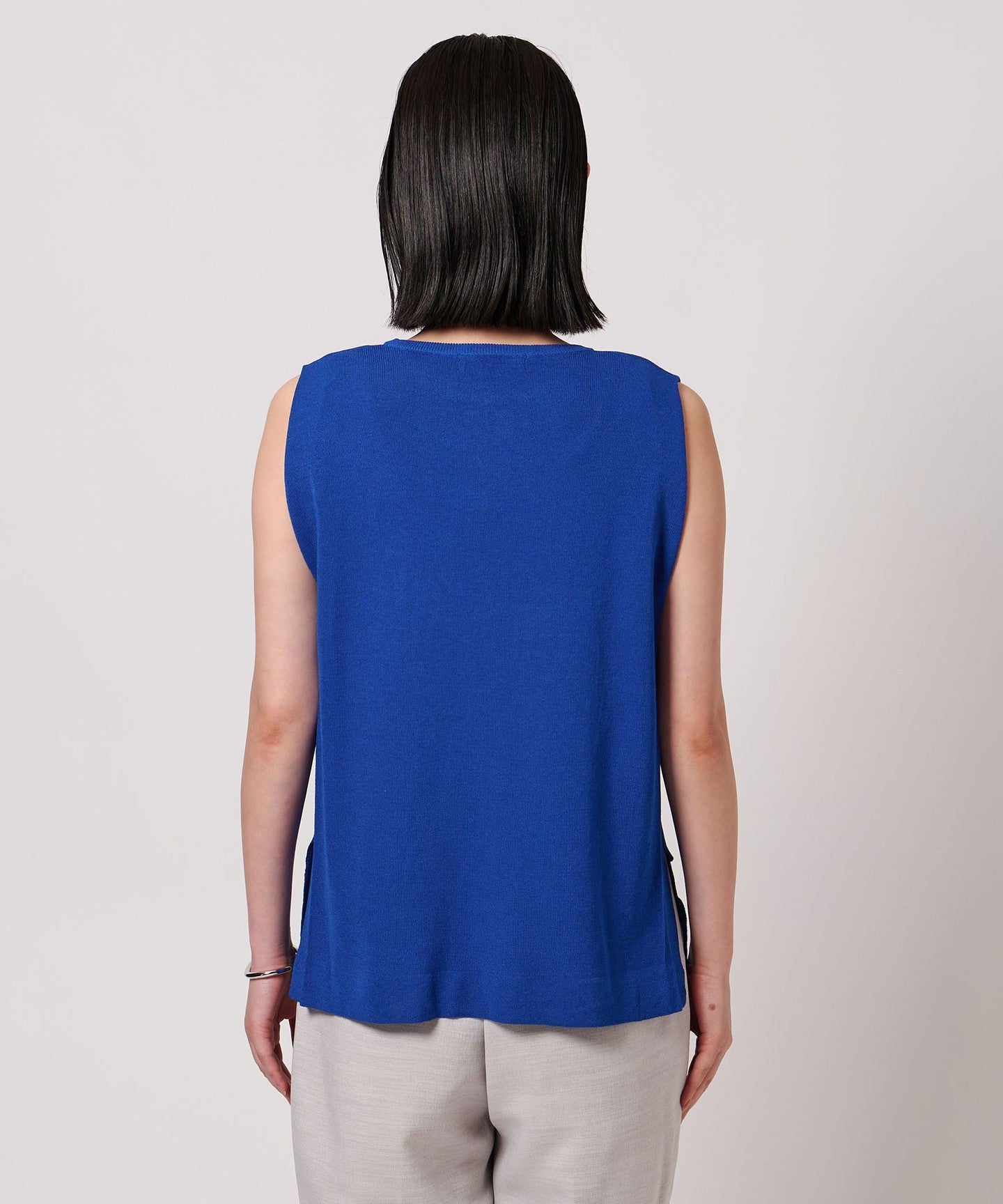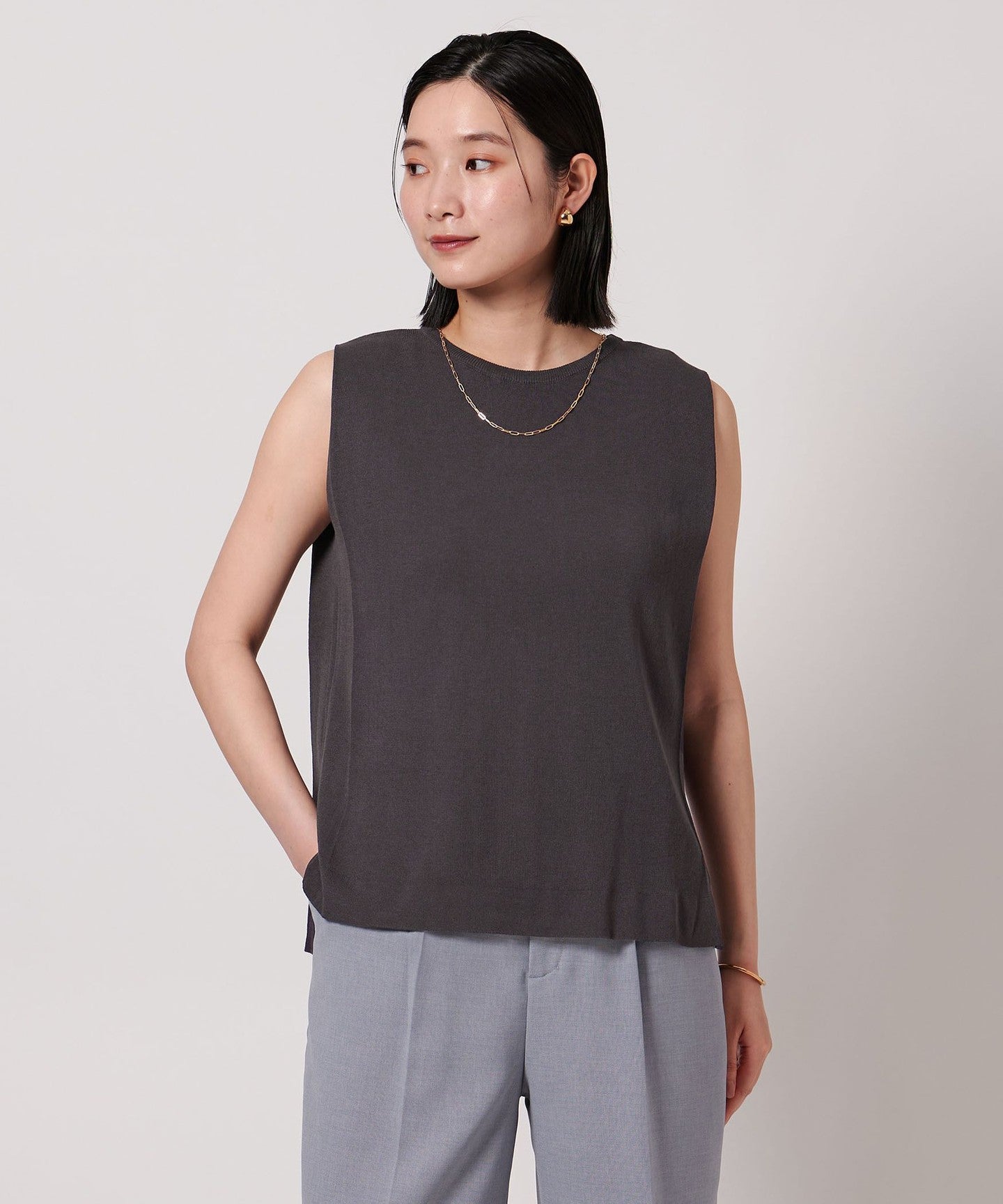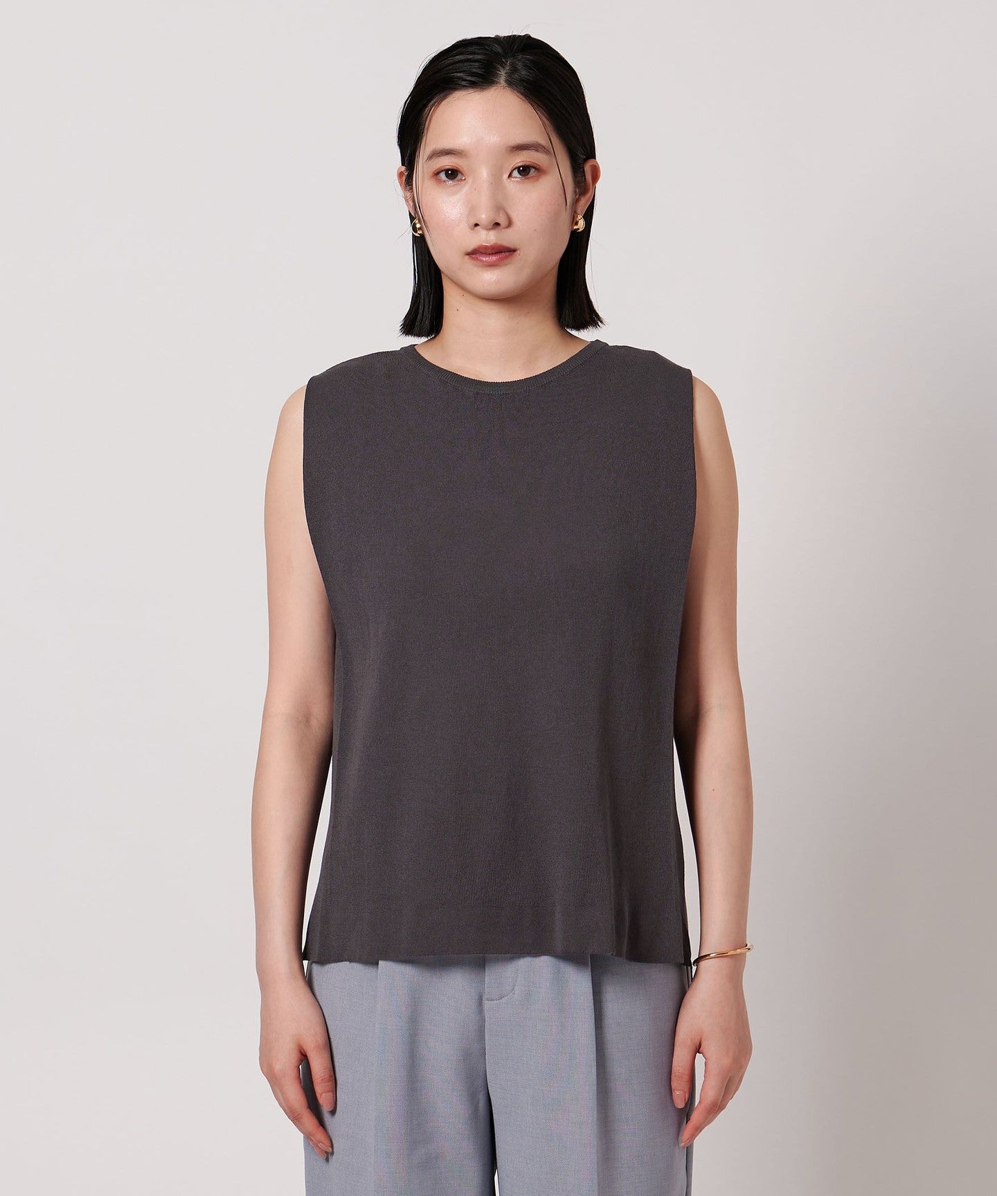 A simple crew neck sleeveless knit.