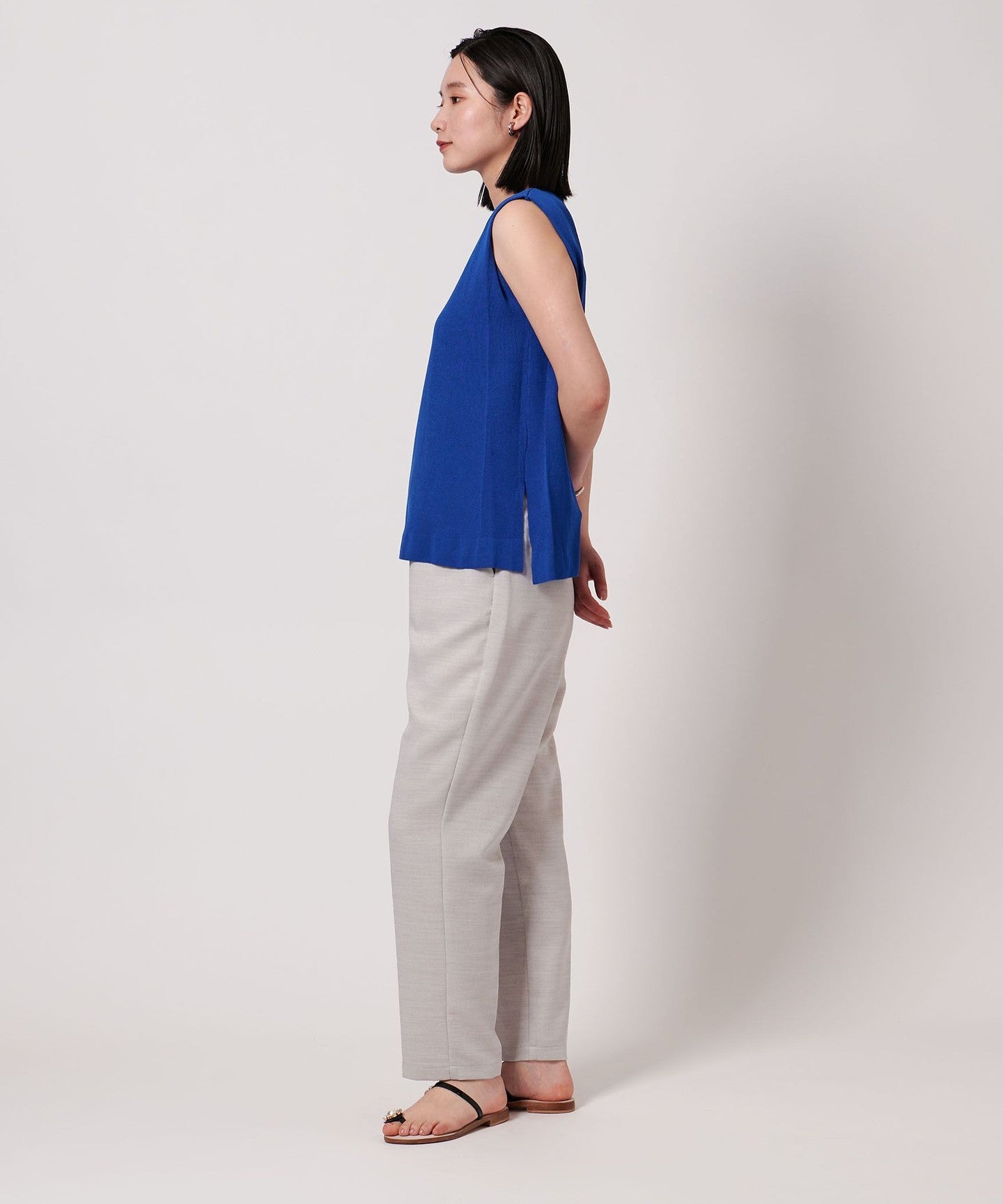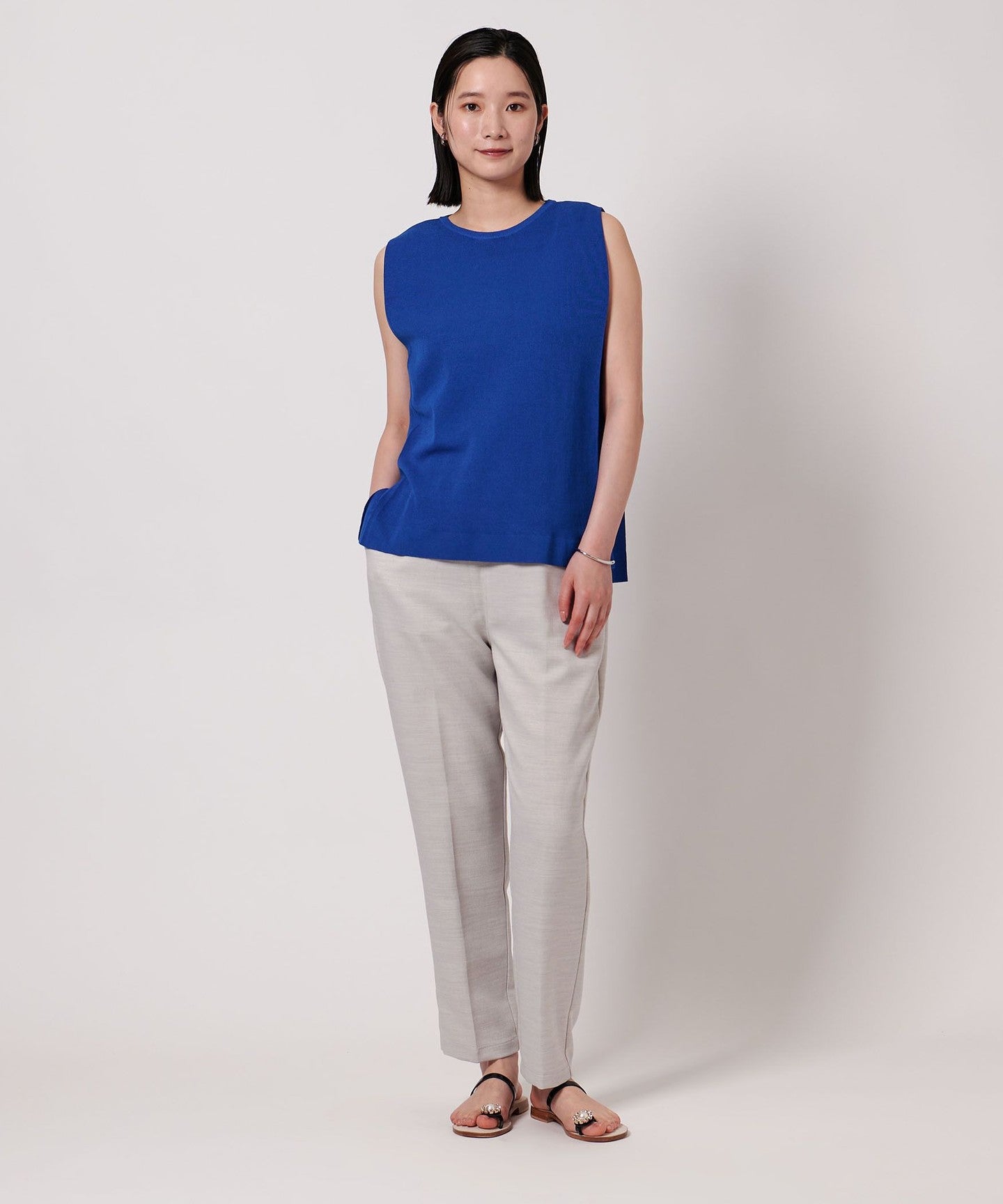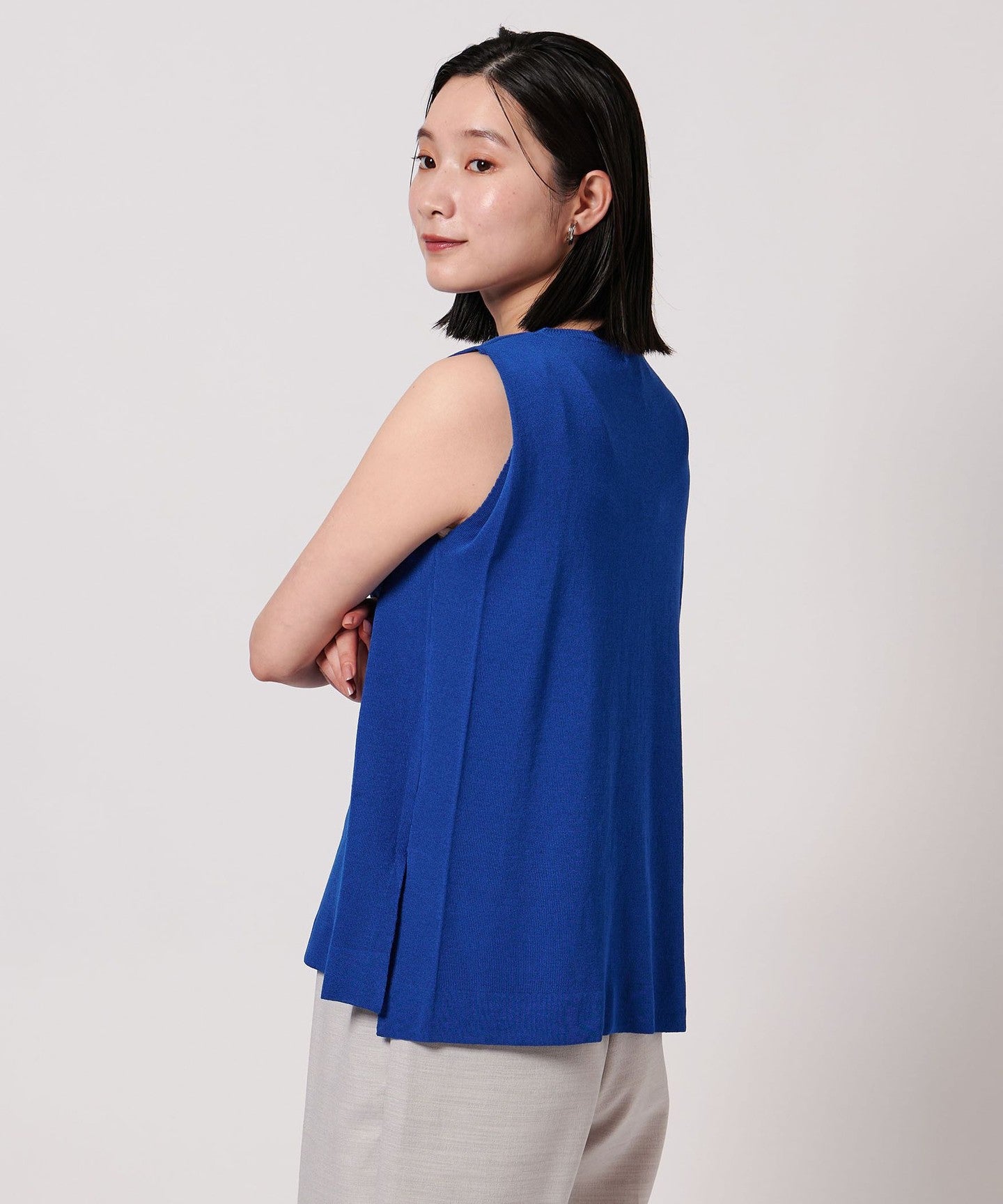 A simple crew neck sleeveless knit.