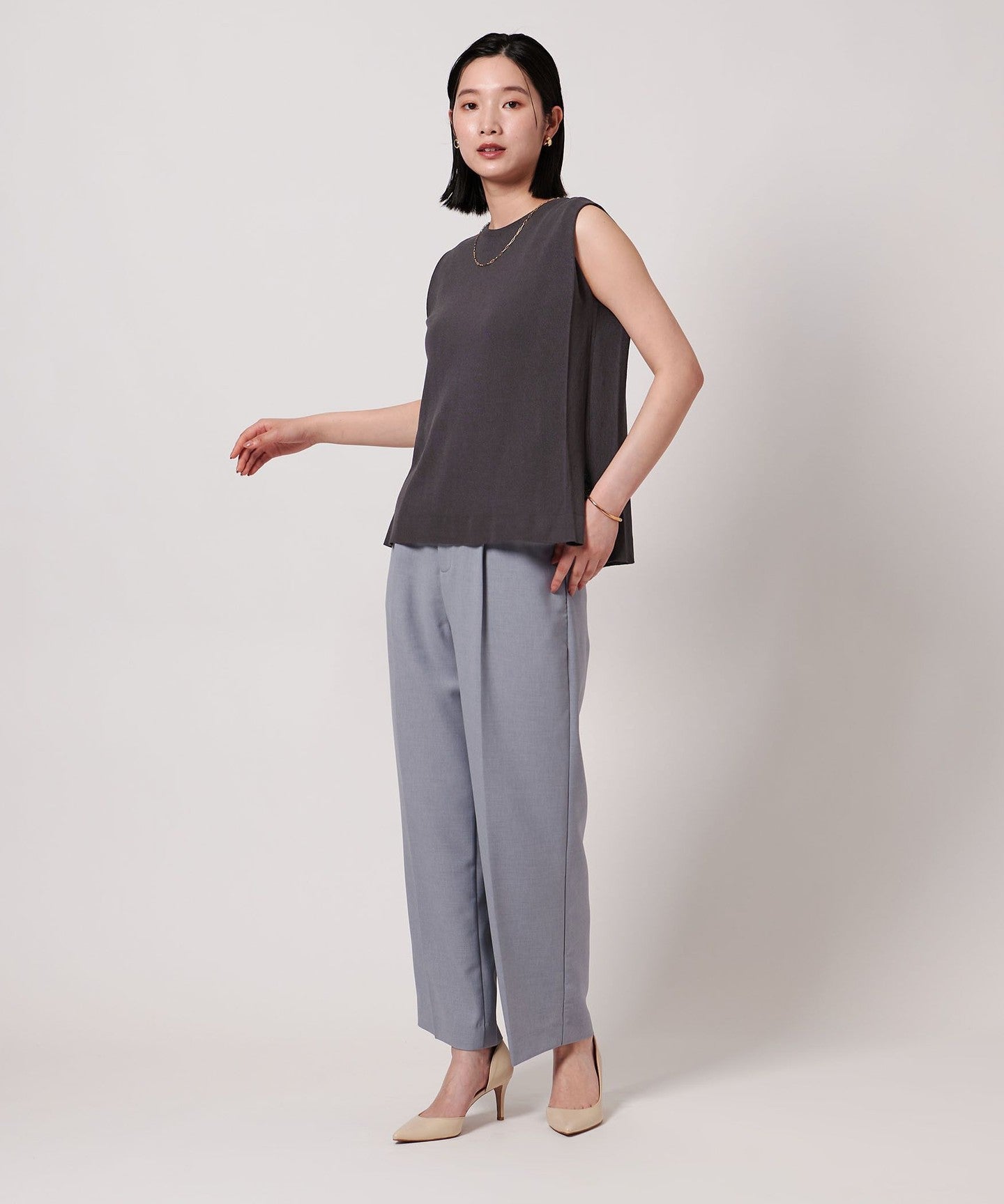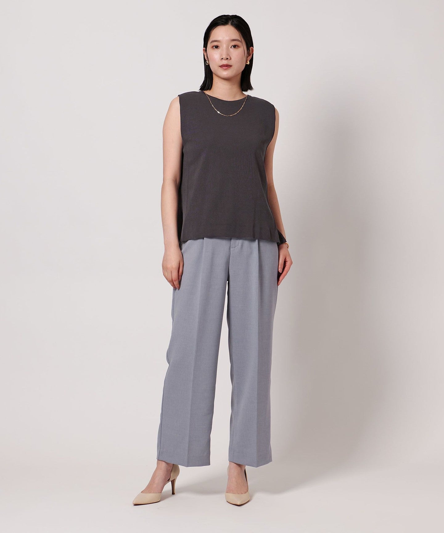 It can be coordinated with a wide range of items, from neat slacks to voluminous flared skirts.