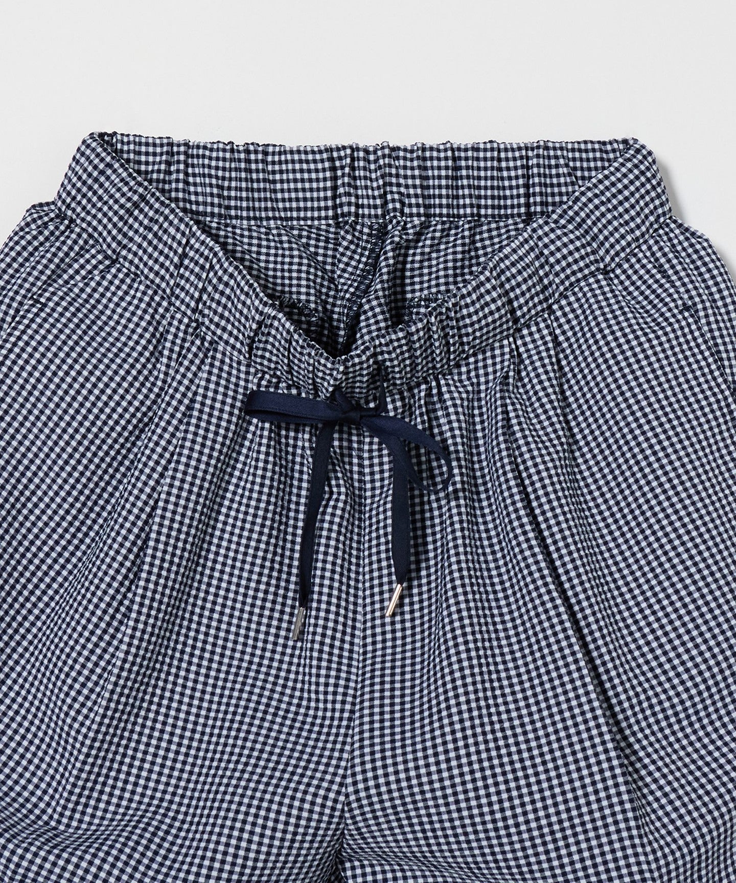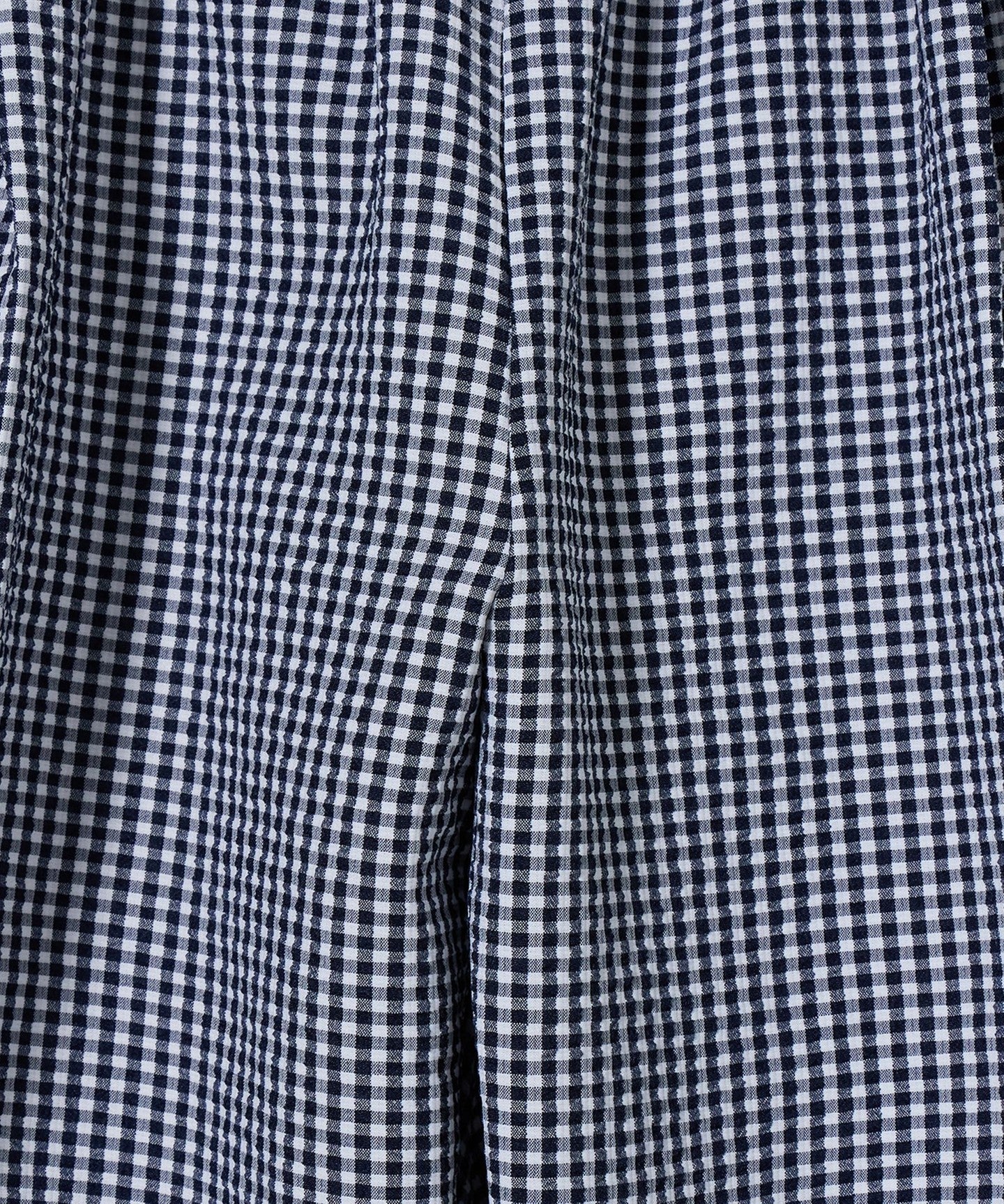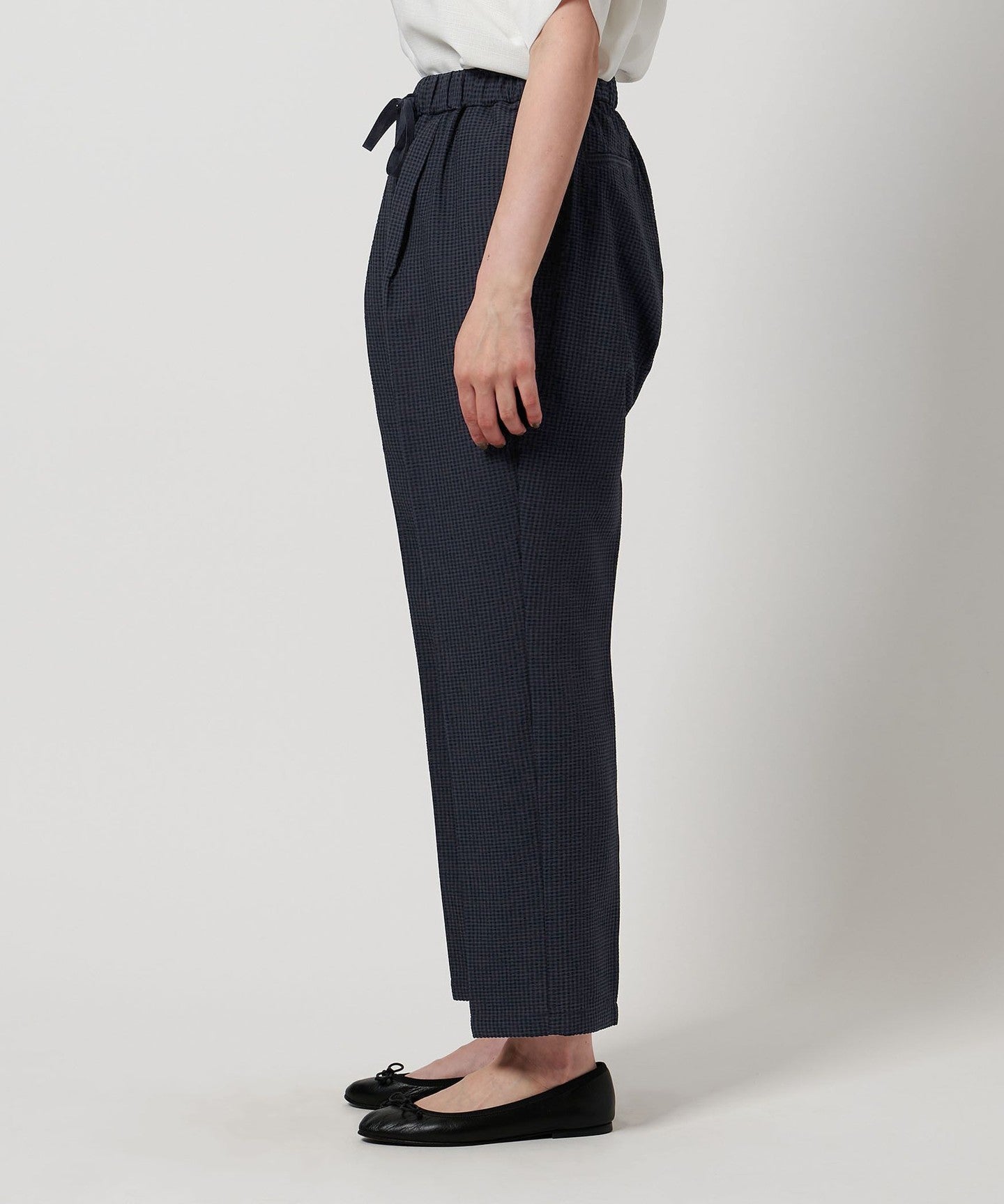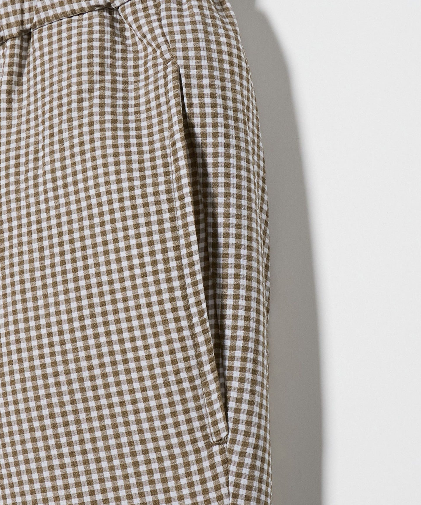 The tapered silhouette with tucks provides just the right amount of looseness, making it comfortable to wear even in hot weather.