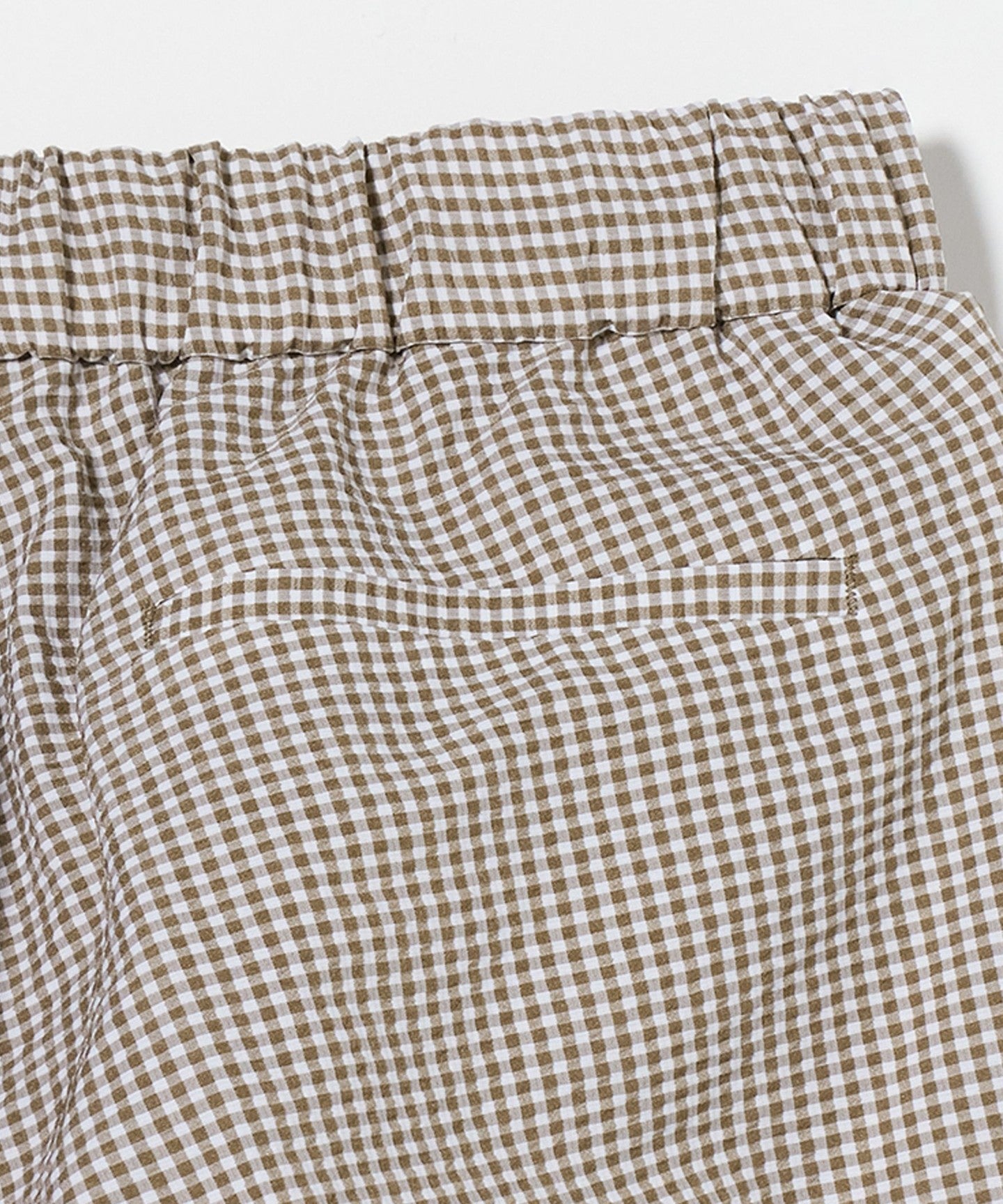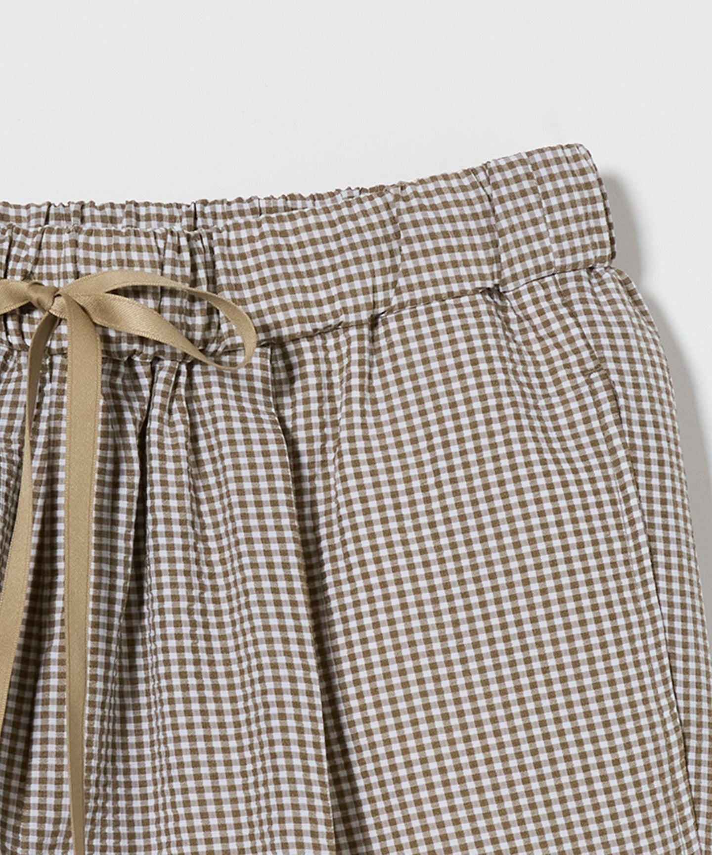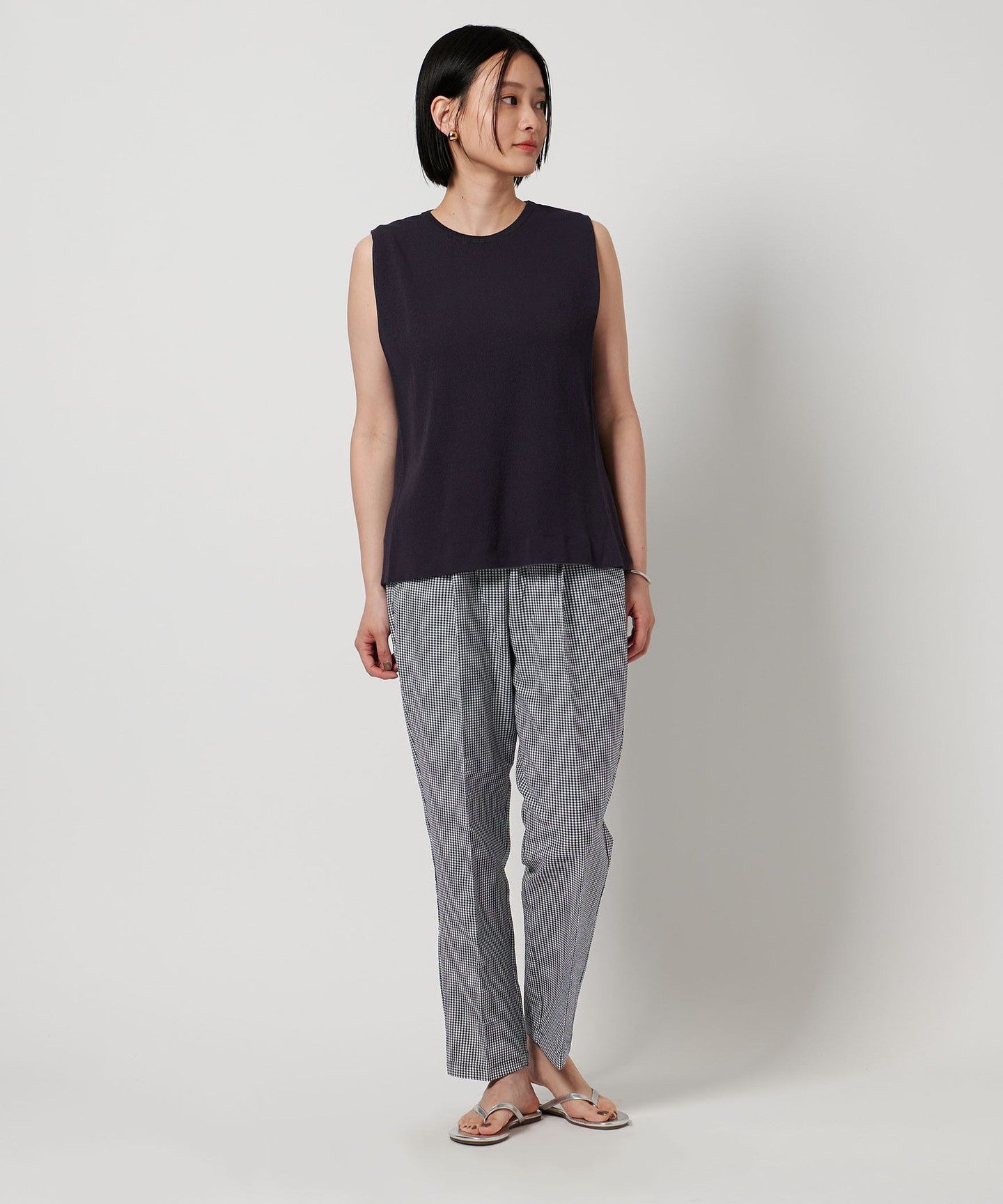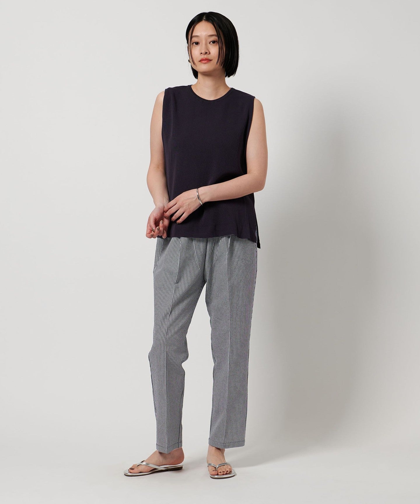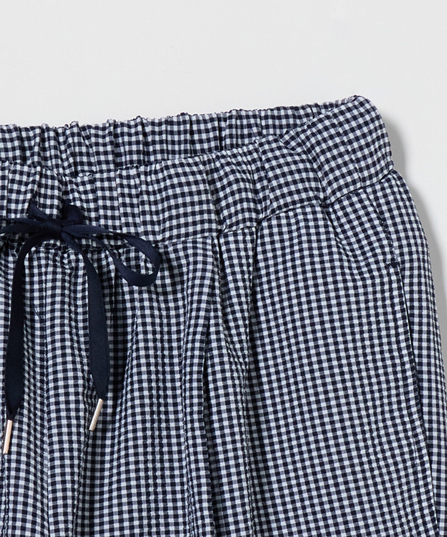 The tapered silhouette with tucks provides just the right amount of looseness, making it comfortable to wear even in hot weather.