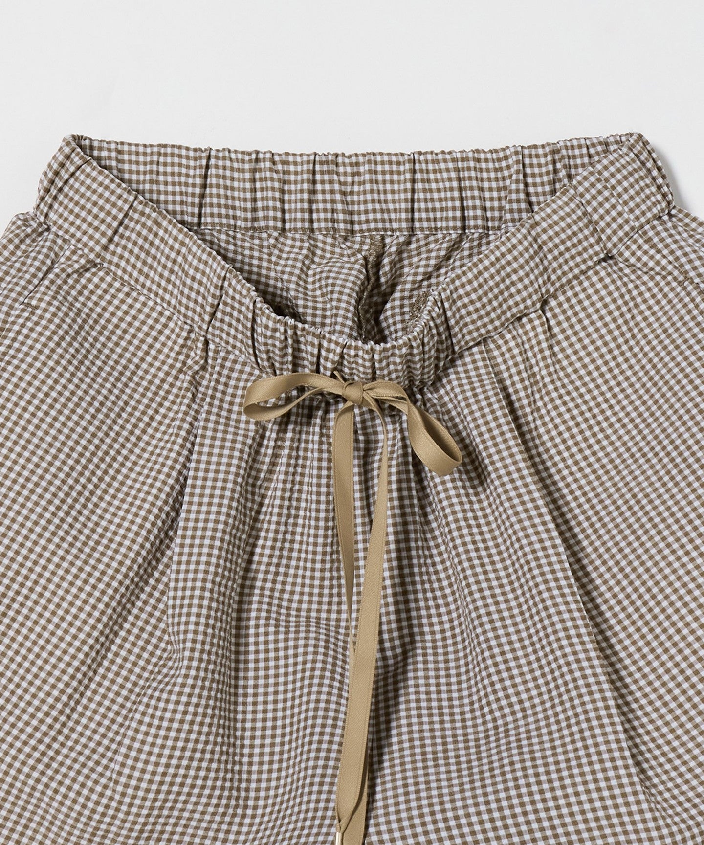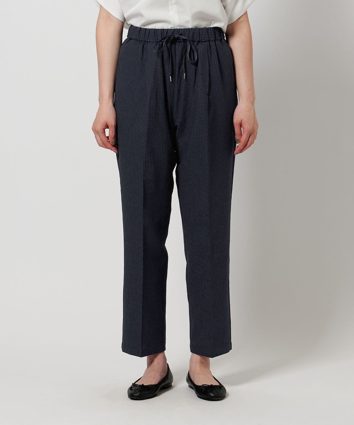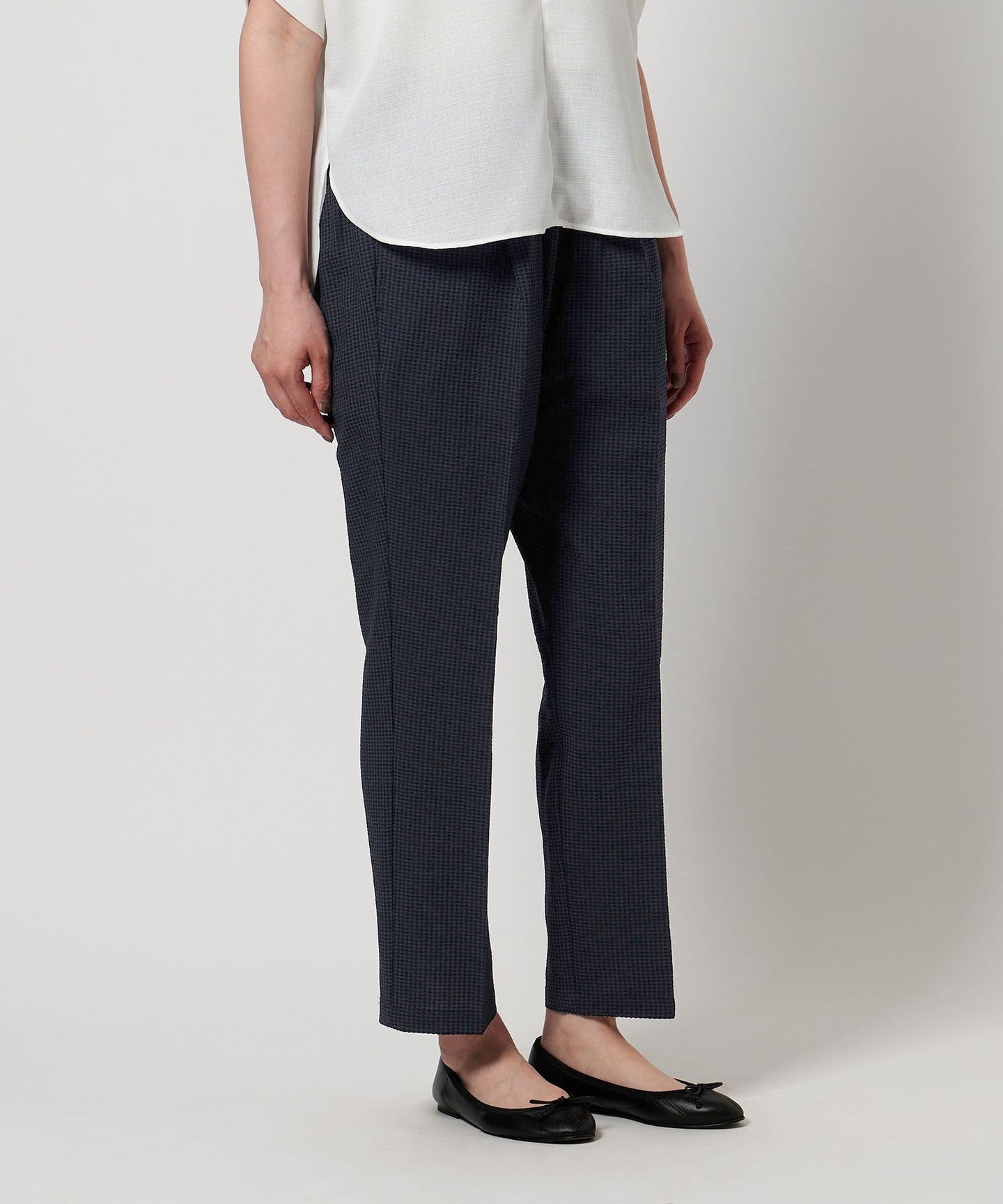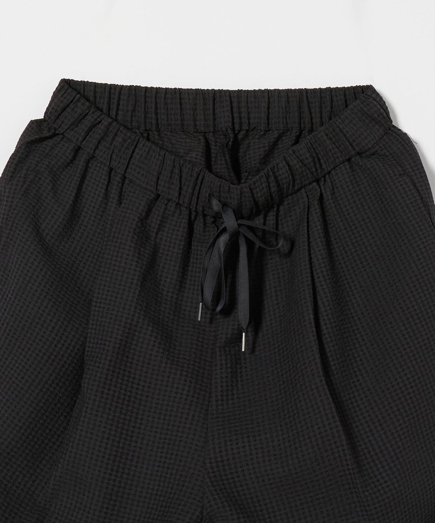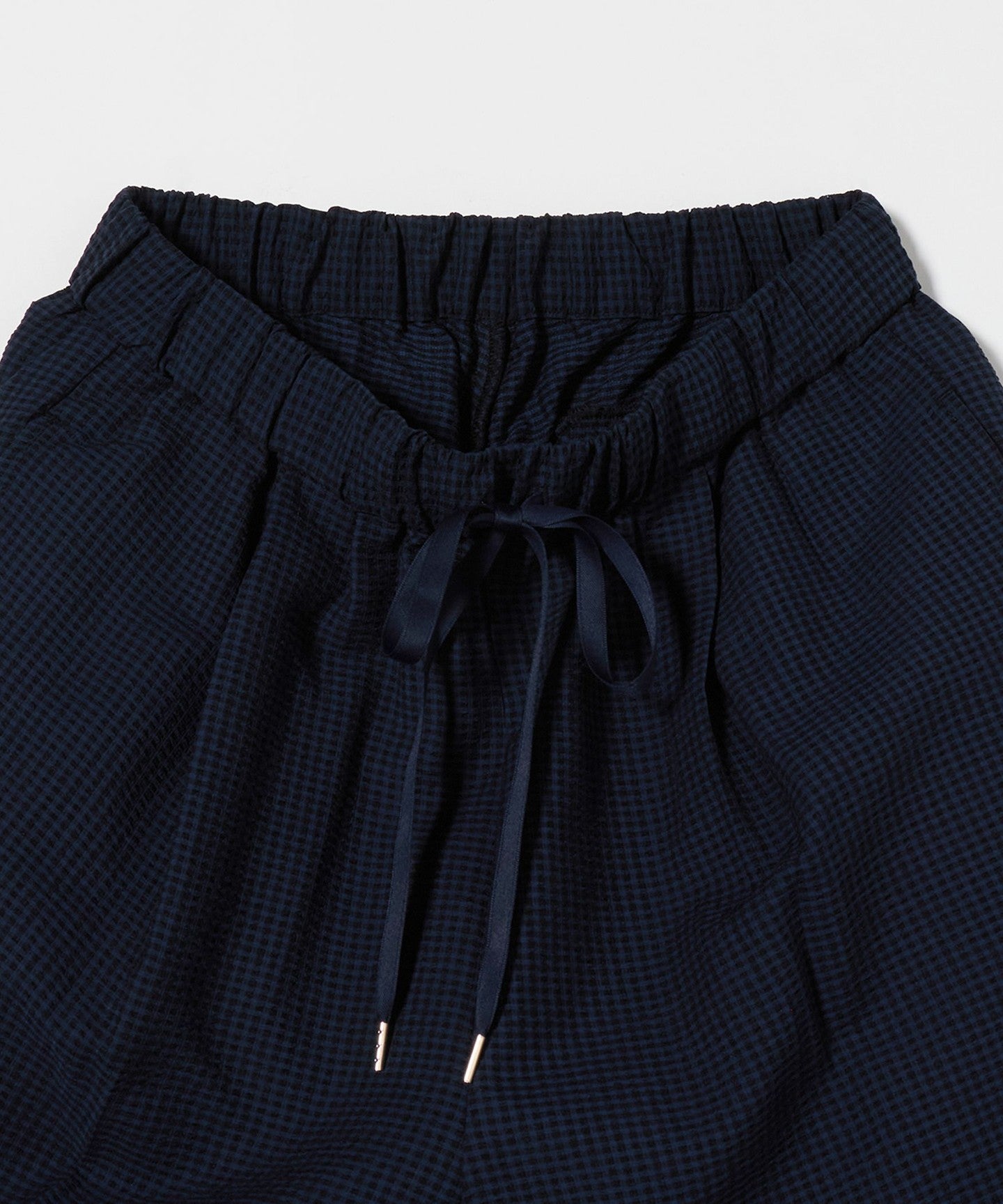 The tapered silhouette with tucks provides just the right amount of looseness, making it comfortable to wear even in hot weather.