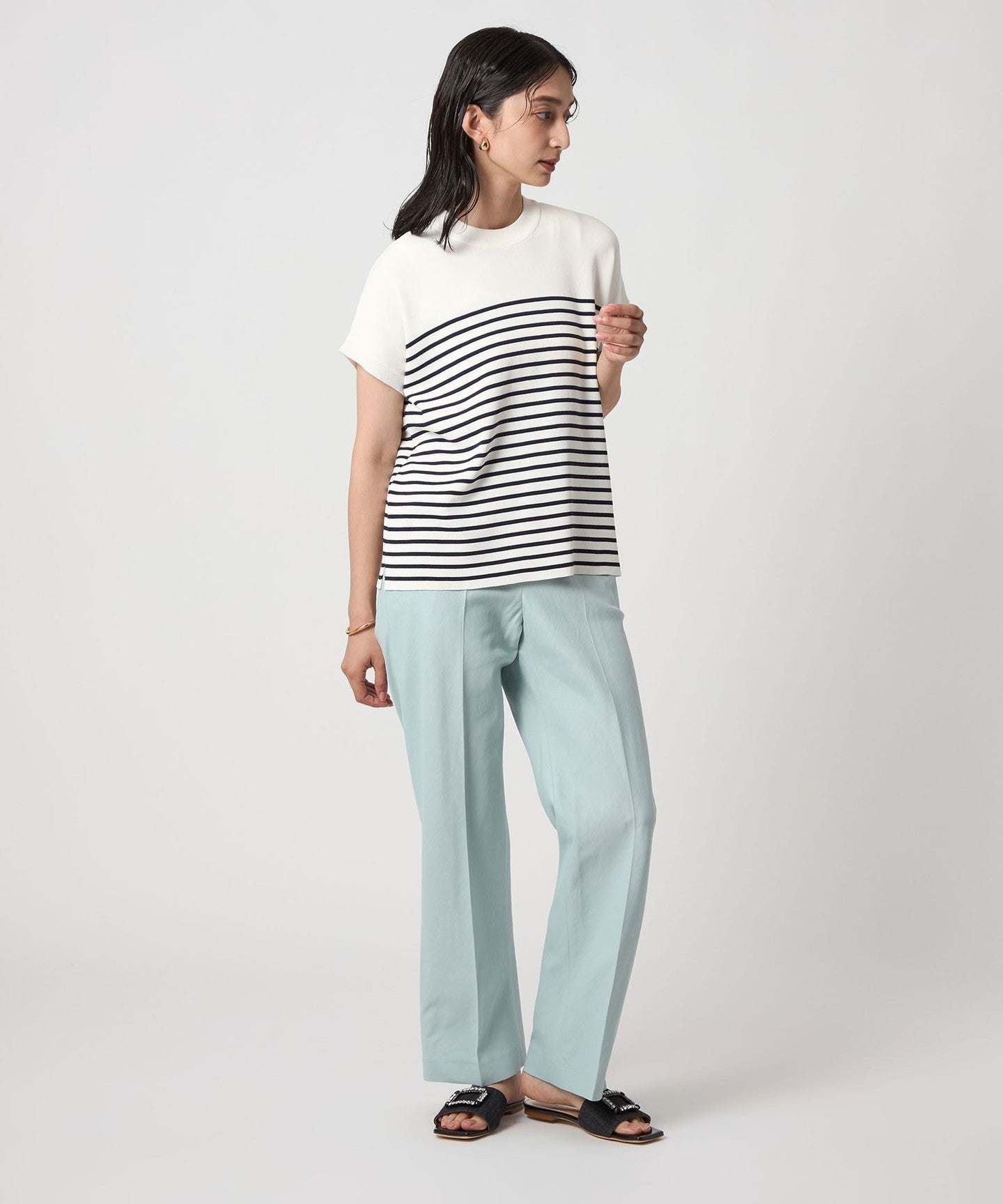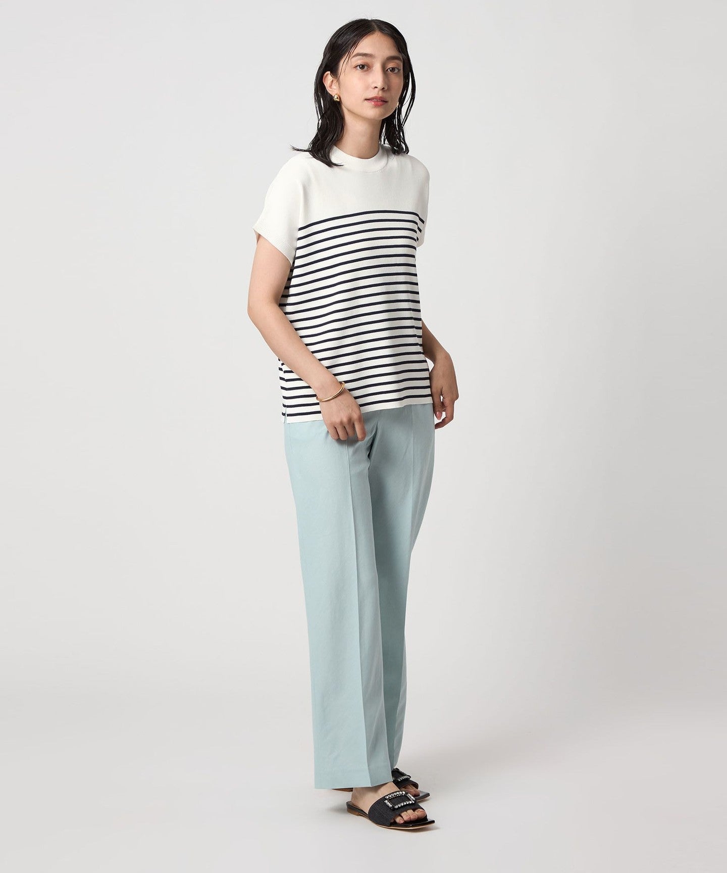 It can be coordinated with a variety of outfits, such as a light look with a flared skirt or a relaxed look with wide pants and sandals.