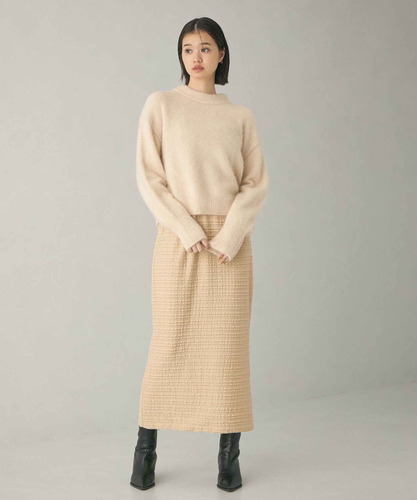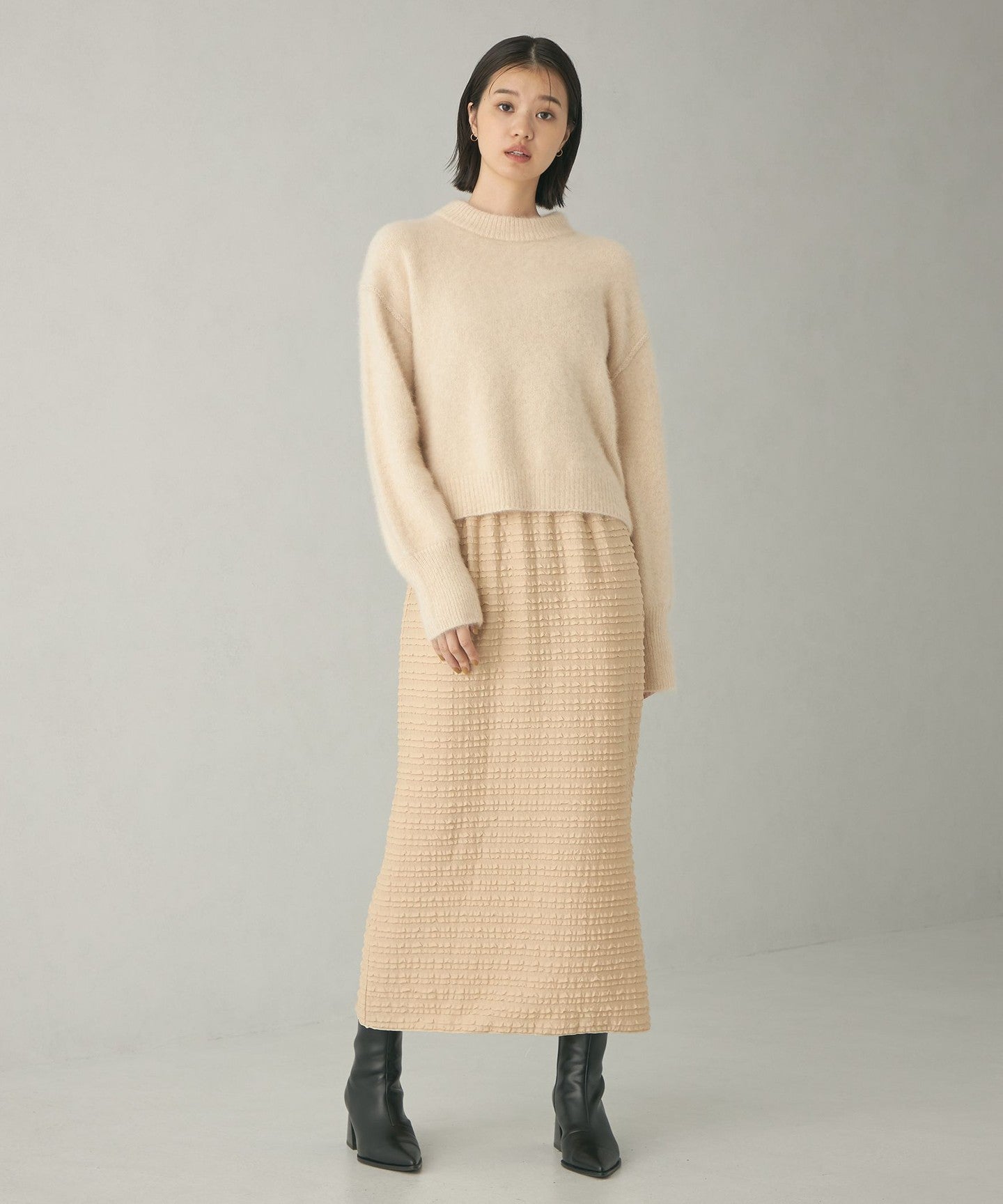 The silhouette is easy to match with any bottoms, from skirts with a fluffy silhouette to skirts with a narrow silhouette, or even casually paired with denim.