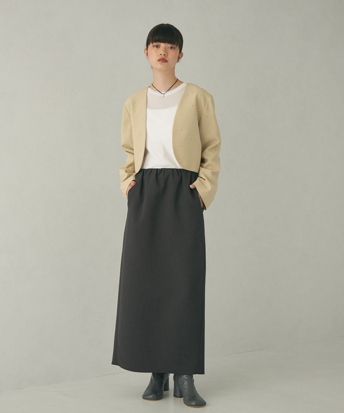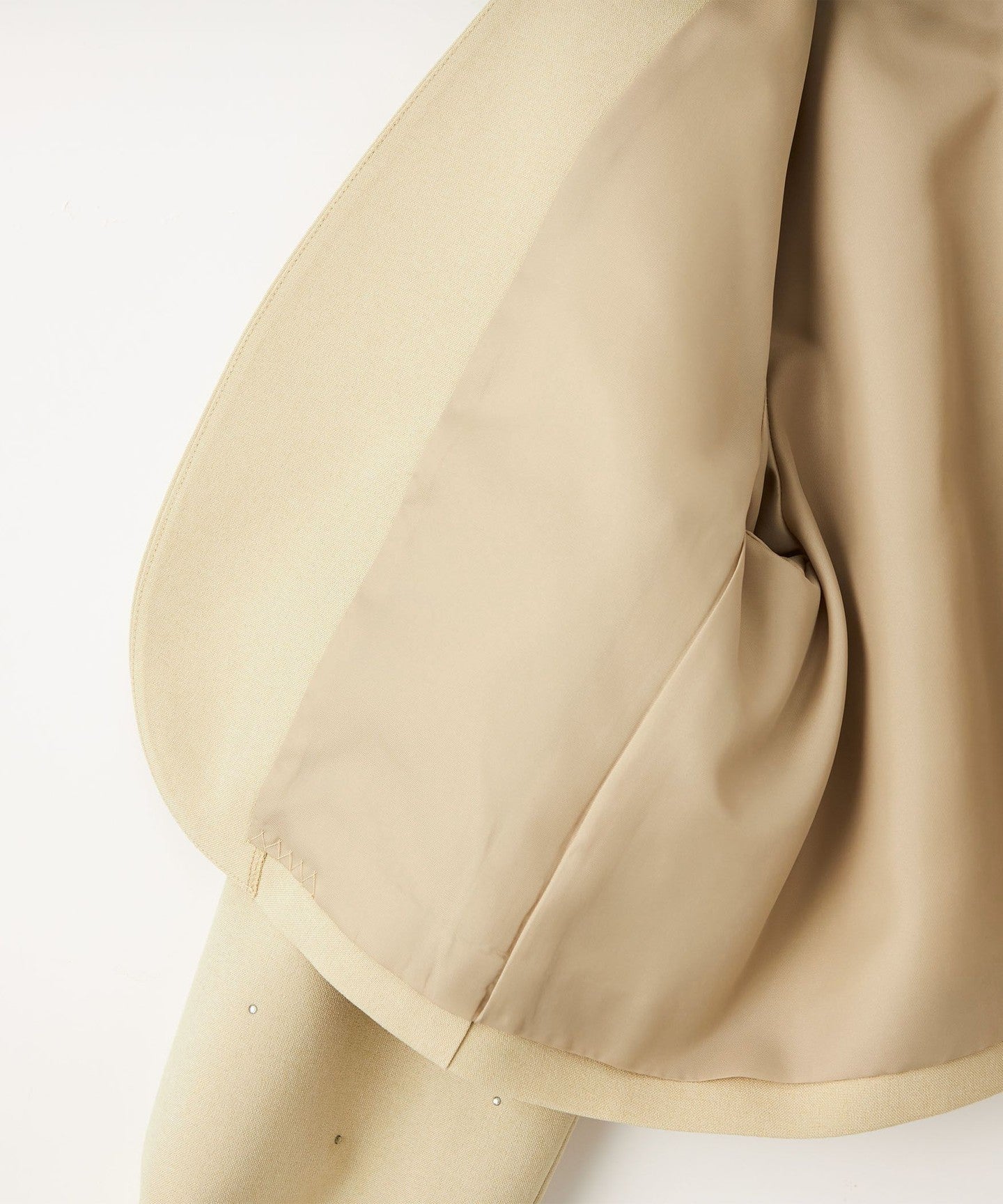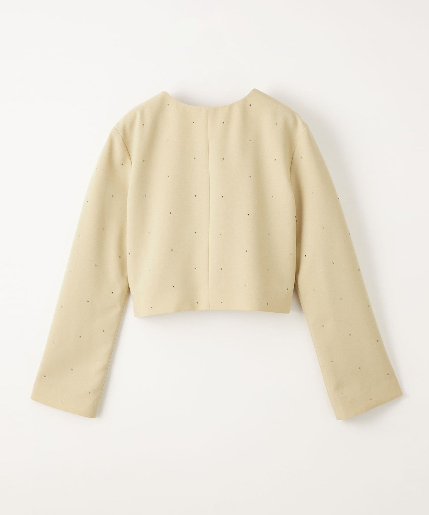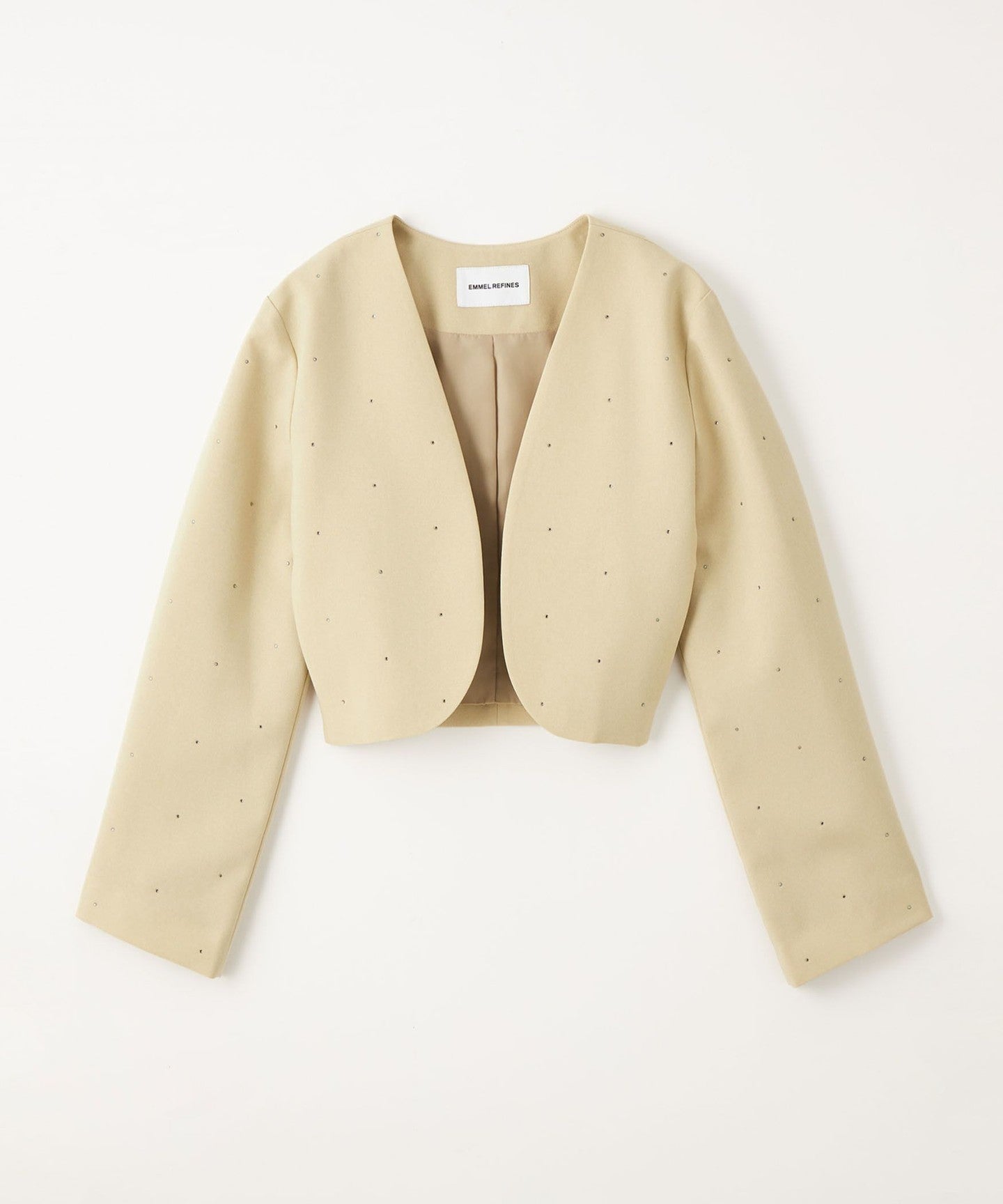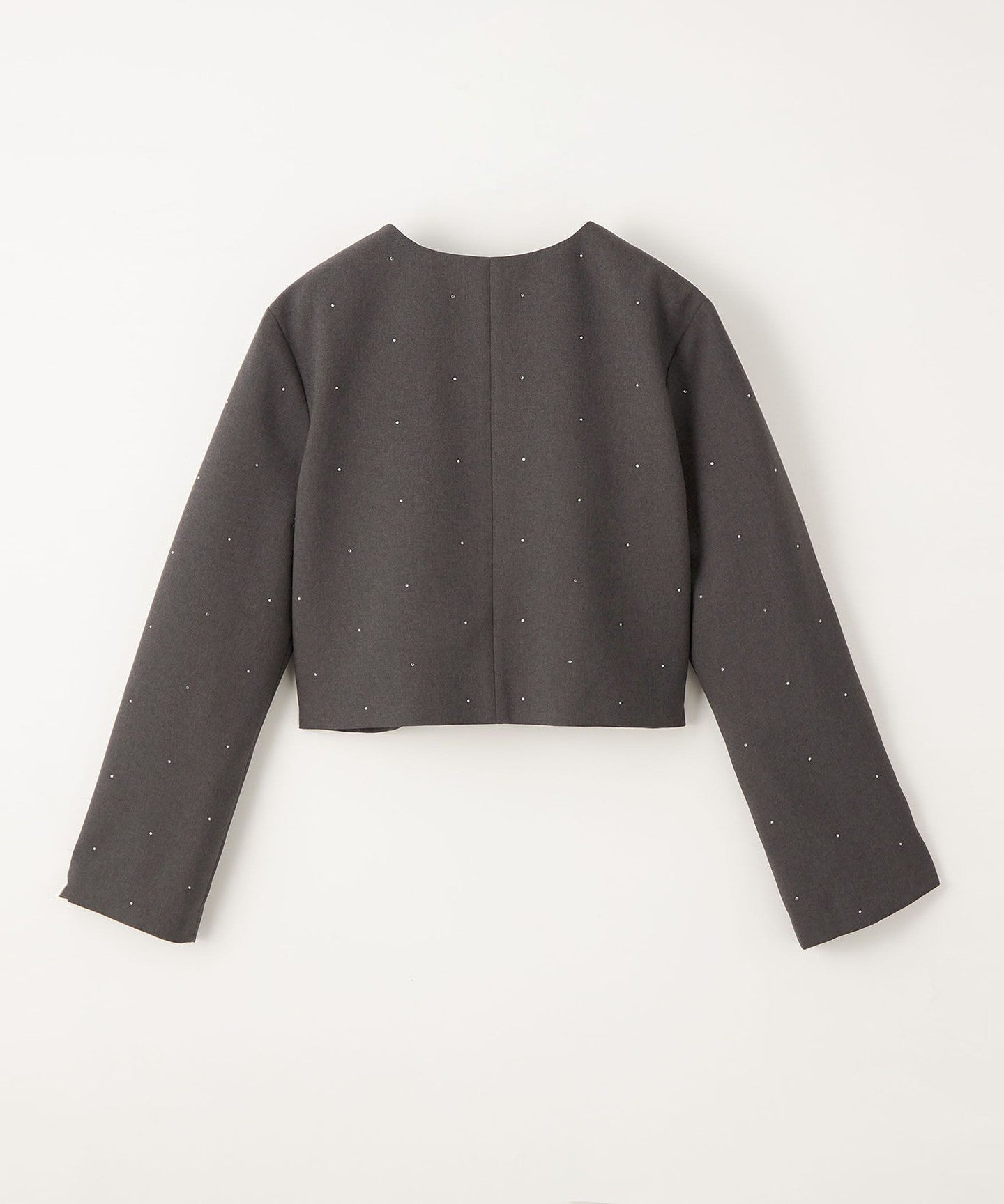 This short, buttonless, bolero-style jacket is easy to put on and can be worn casually without giving off a stiff impression.