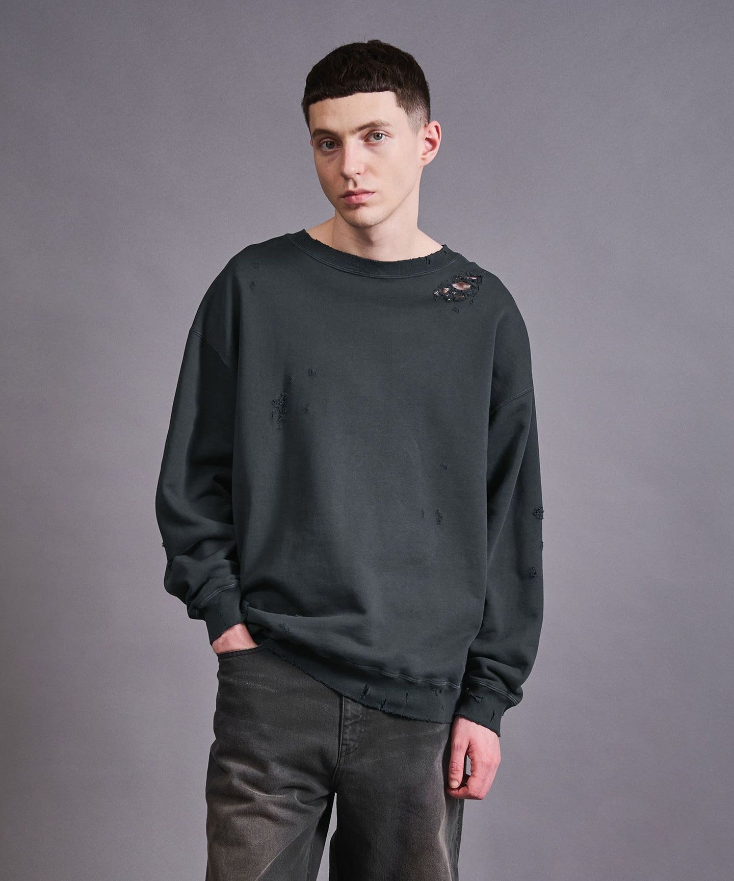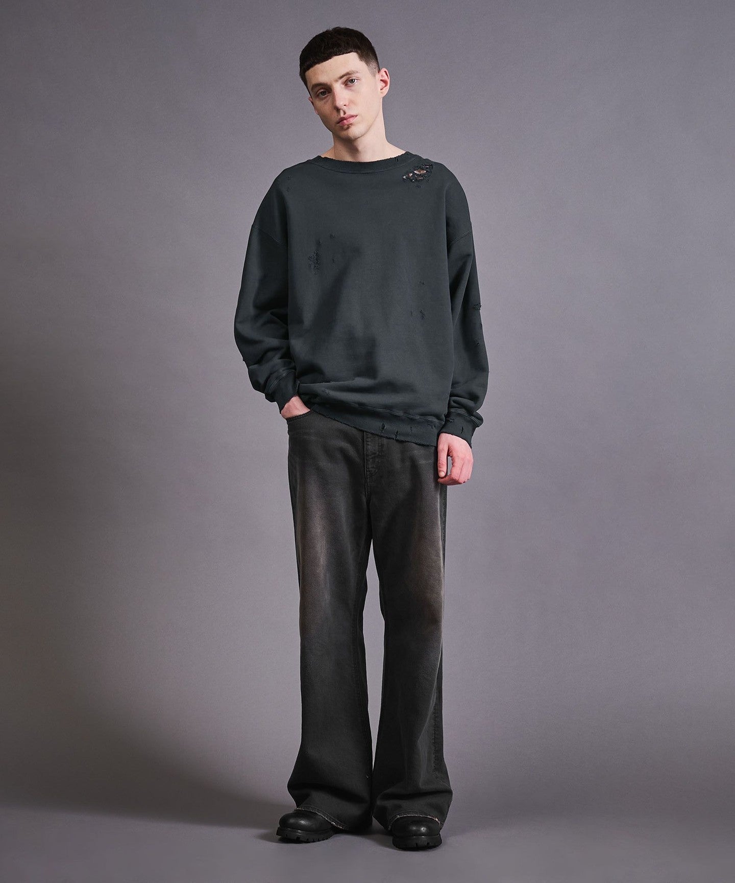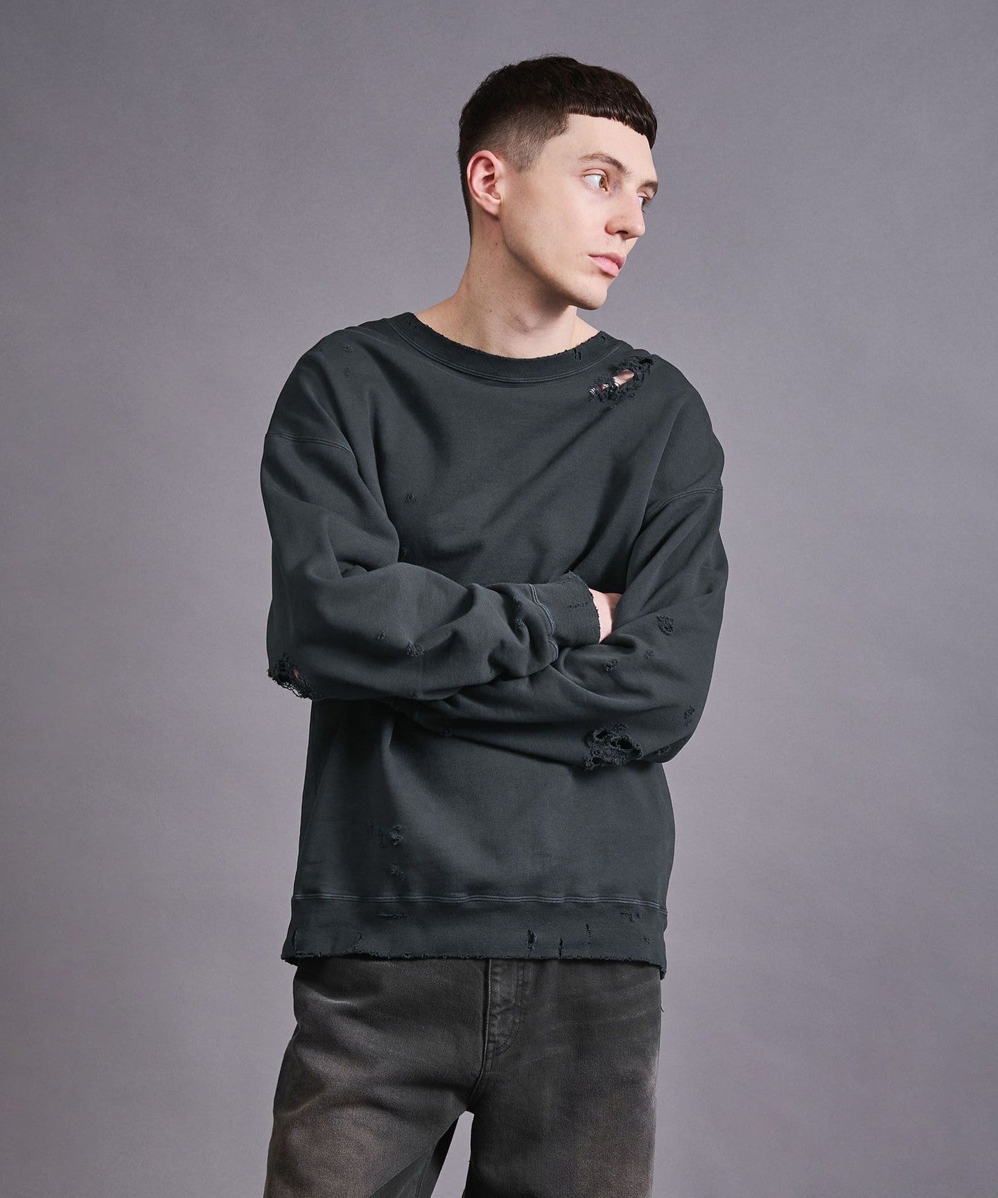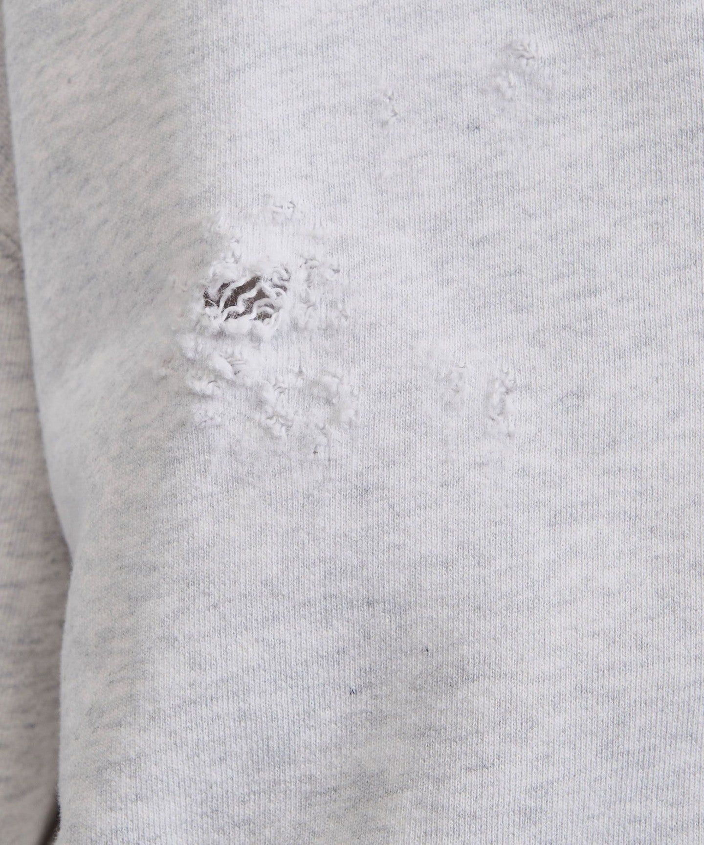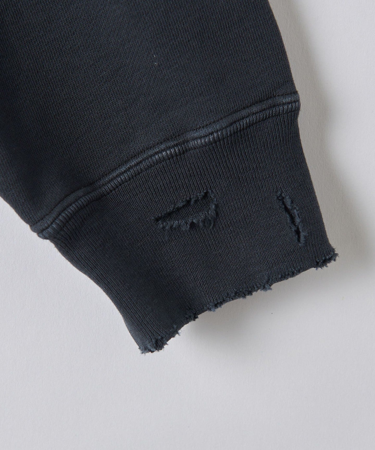It has a relaxed fit and distressed finish in various places, making it a stylish item to wear on its own.