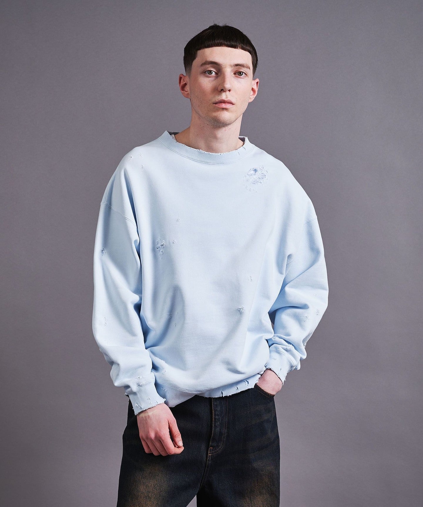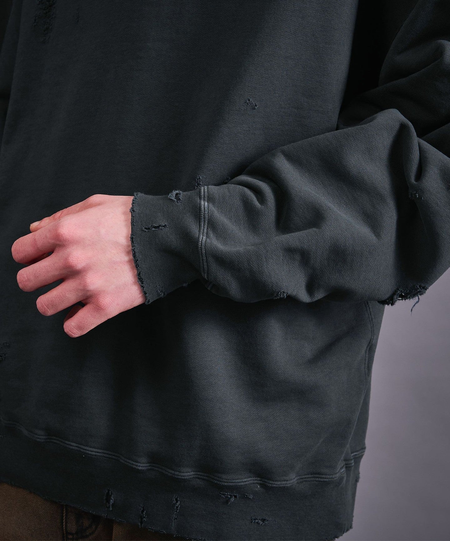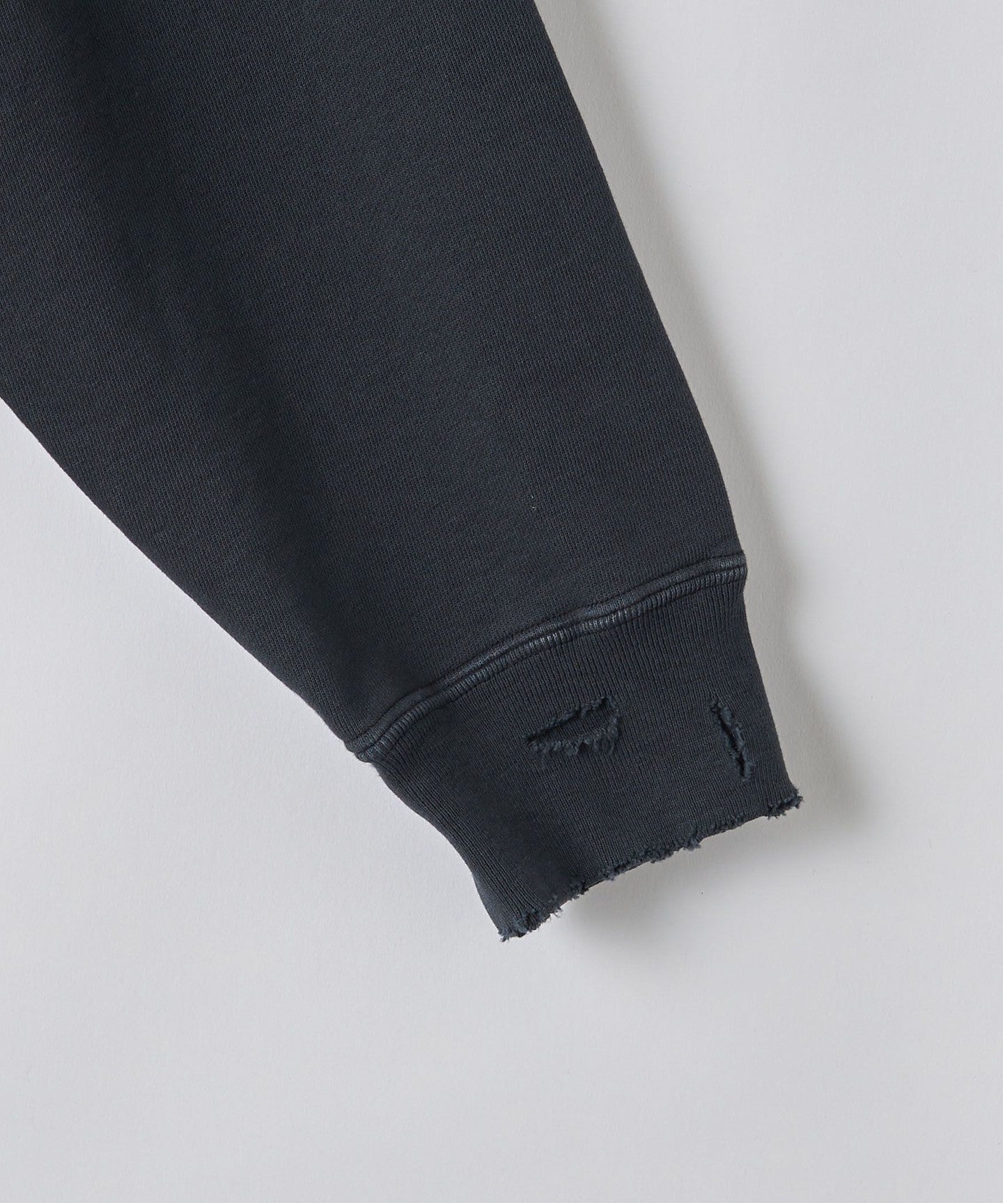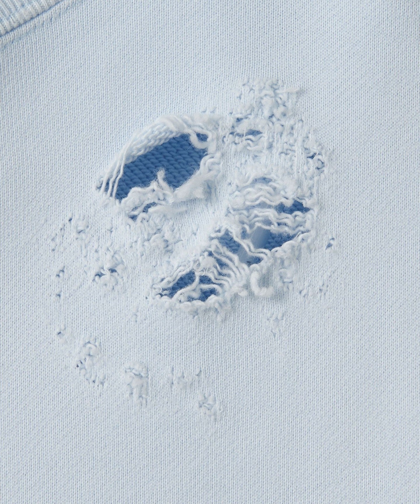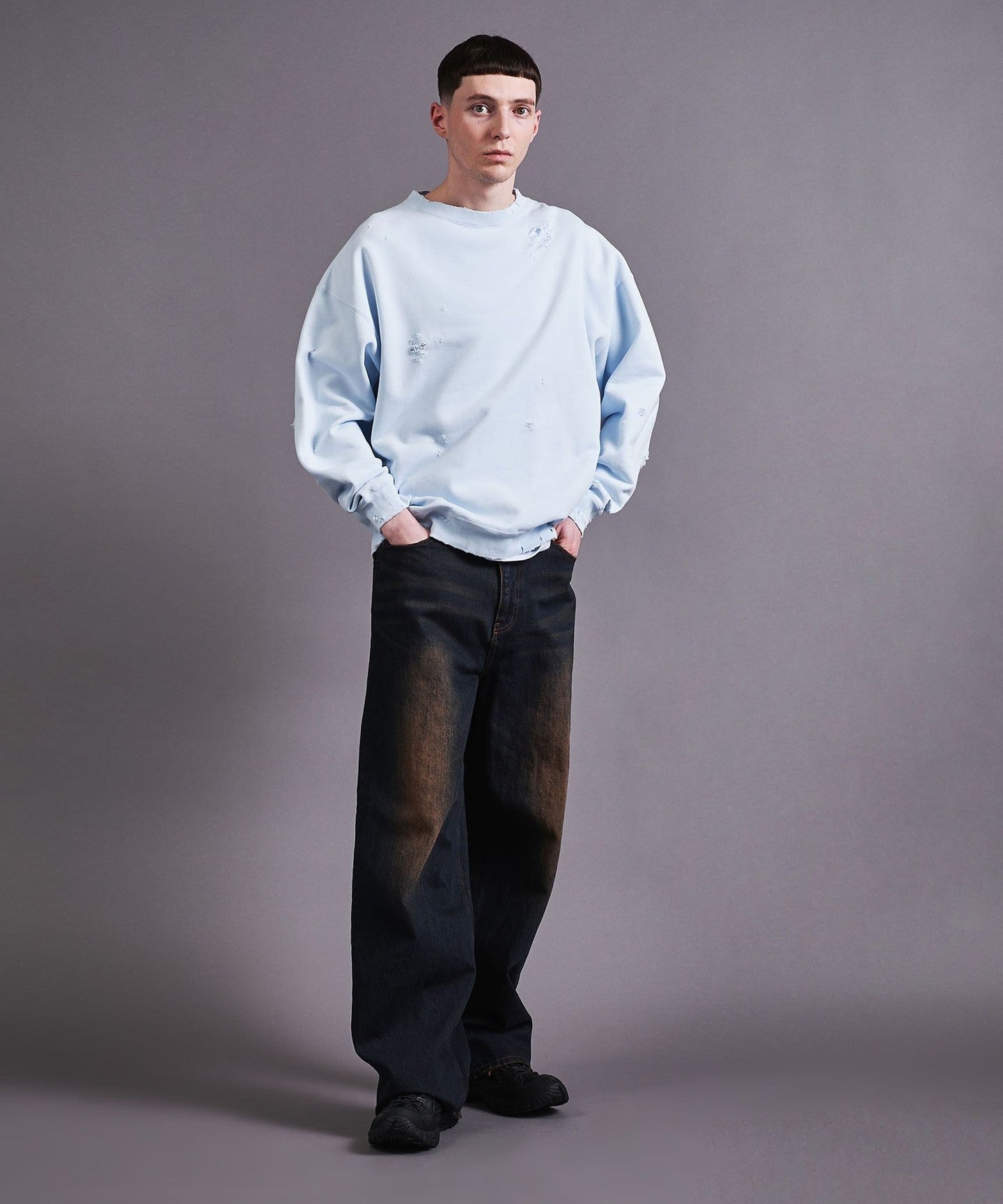 It has a relaxed fit and distressed finish in various places, making it a stylish item to wear on its own.