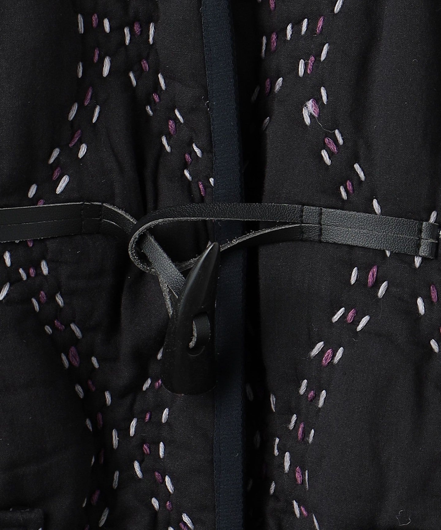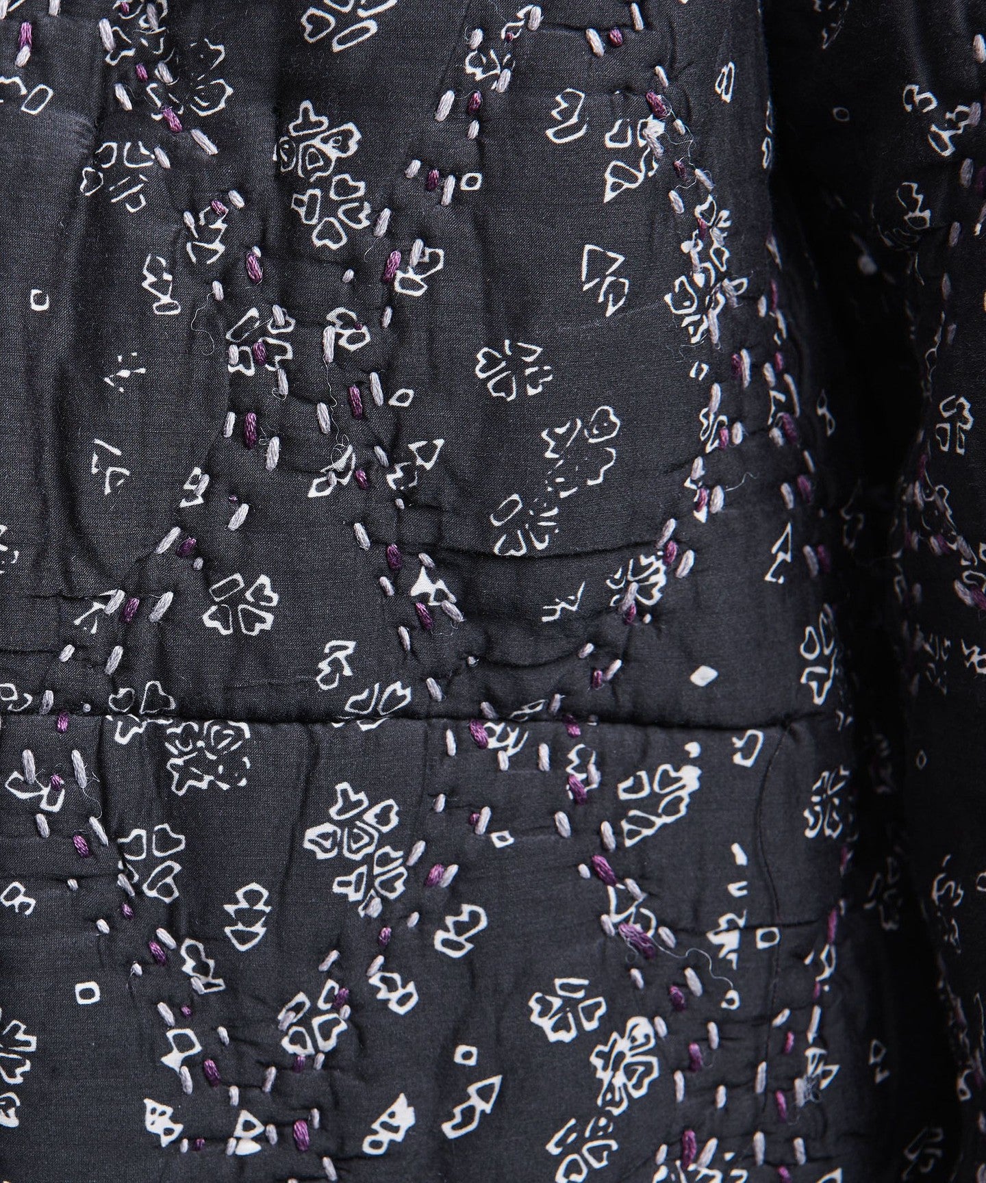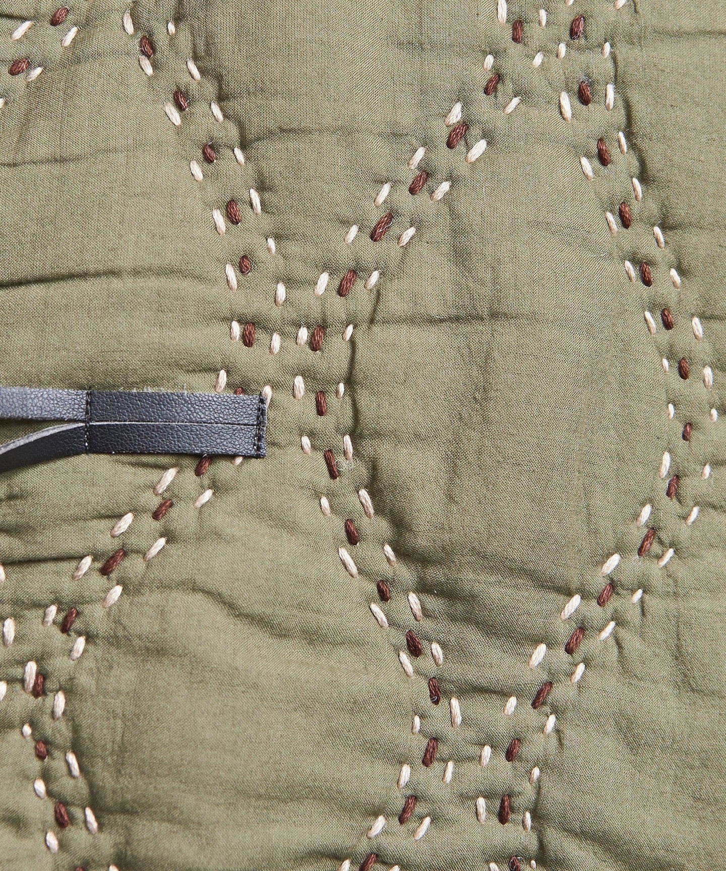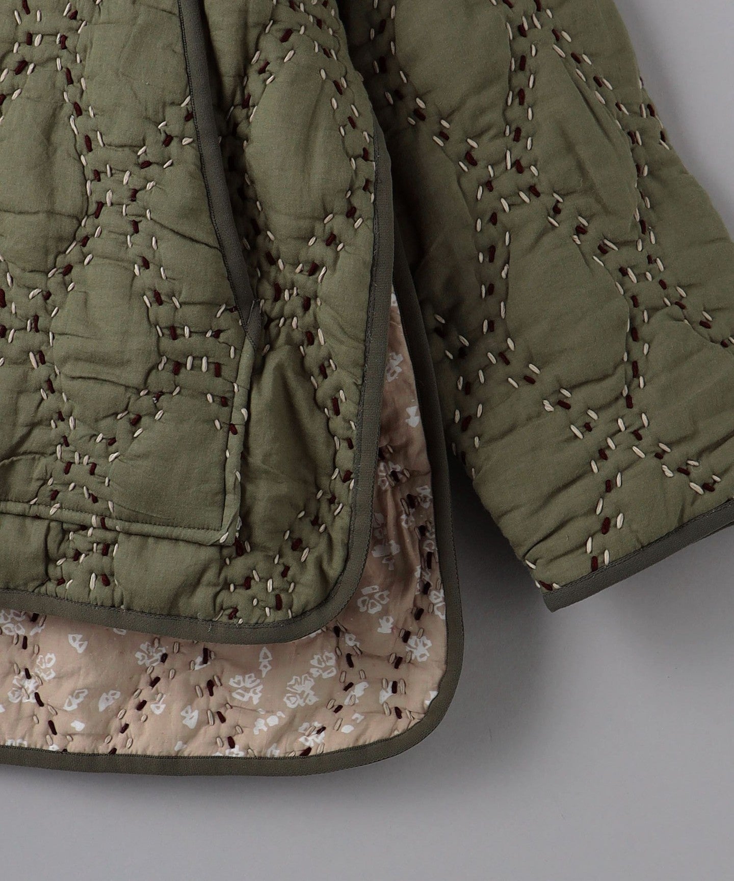 The entire piece is adorned with hand-made embroidery called "kantha," which is done stitch by stitch using only a needle and thread, luxuriously bringing out the delicate texture.
