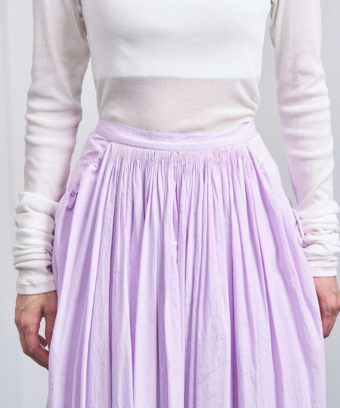 SideSTRING By pulling together and stretching SKIRT The silhouette changes.