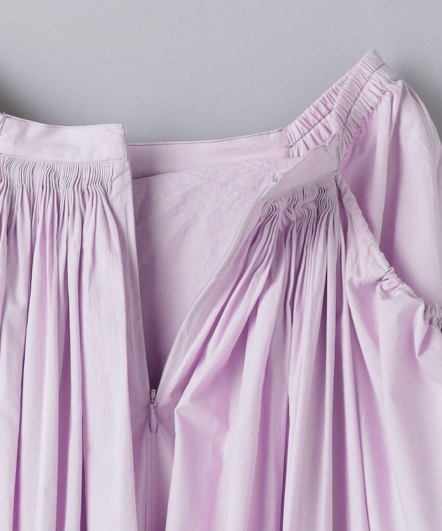 Carefully gathered fabric creates a luxurious lookFABRIC The volume created by the gathered pieces embodies a powerful beauty that can be felt at first glance.
