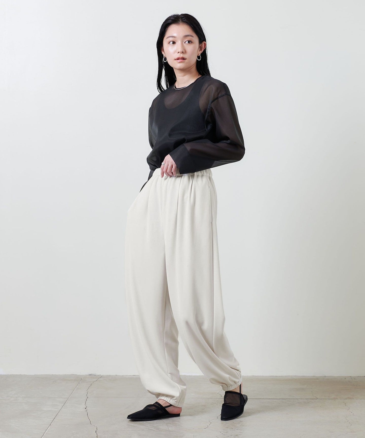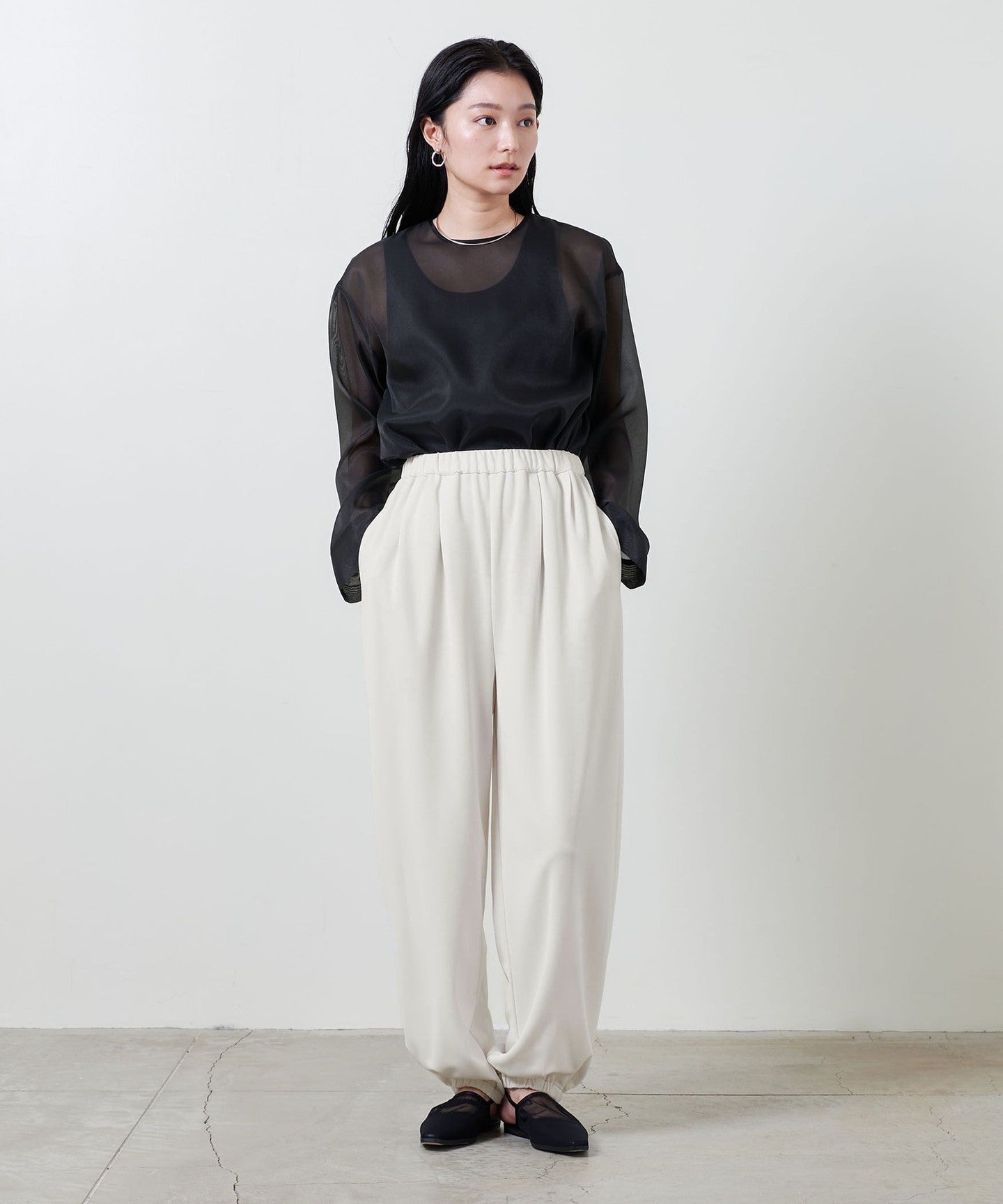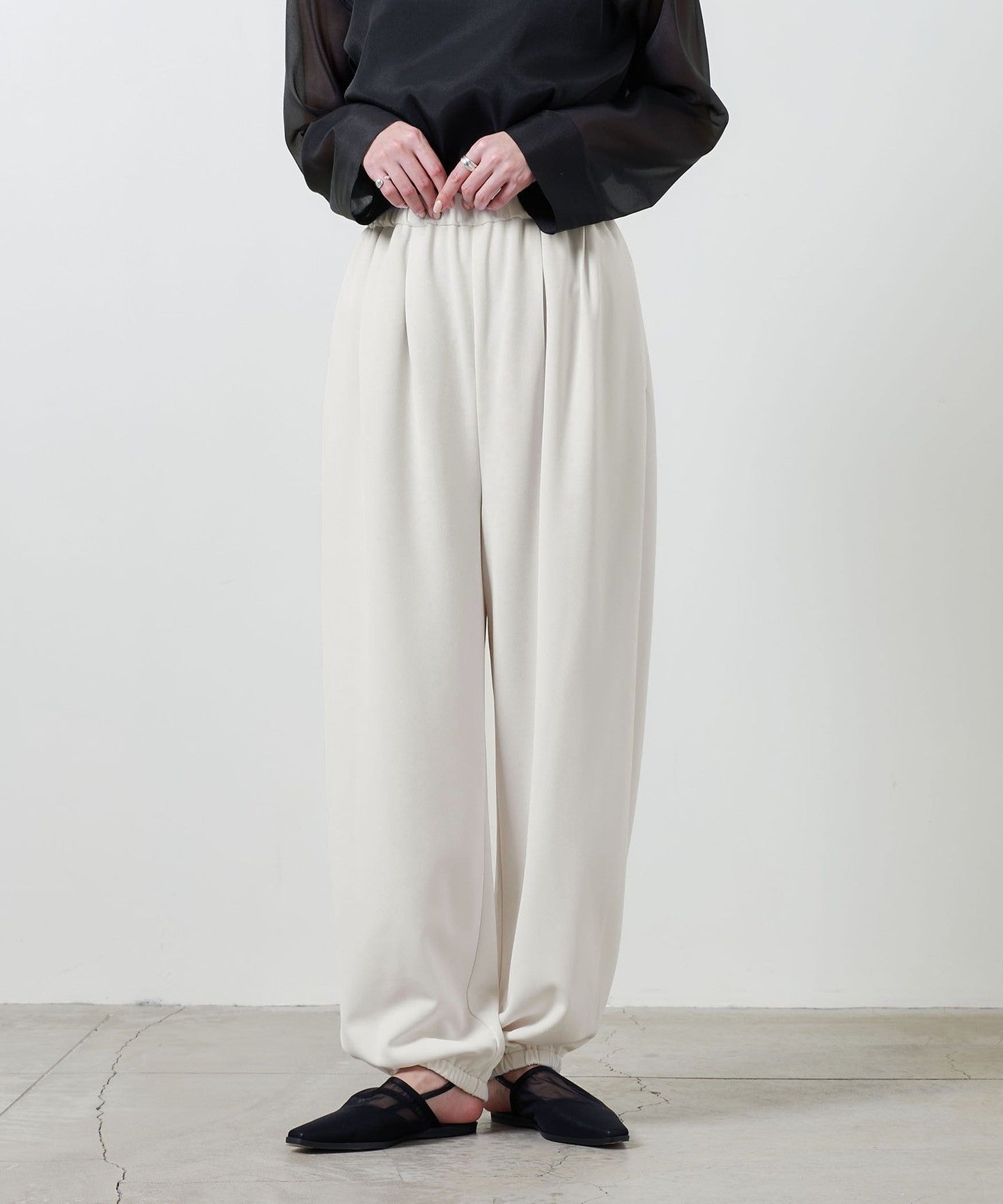 HEMBy adding tucks and elastic to the fabric, it expands into a three-dimensional balloon shape when worn. PANTS .
