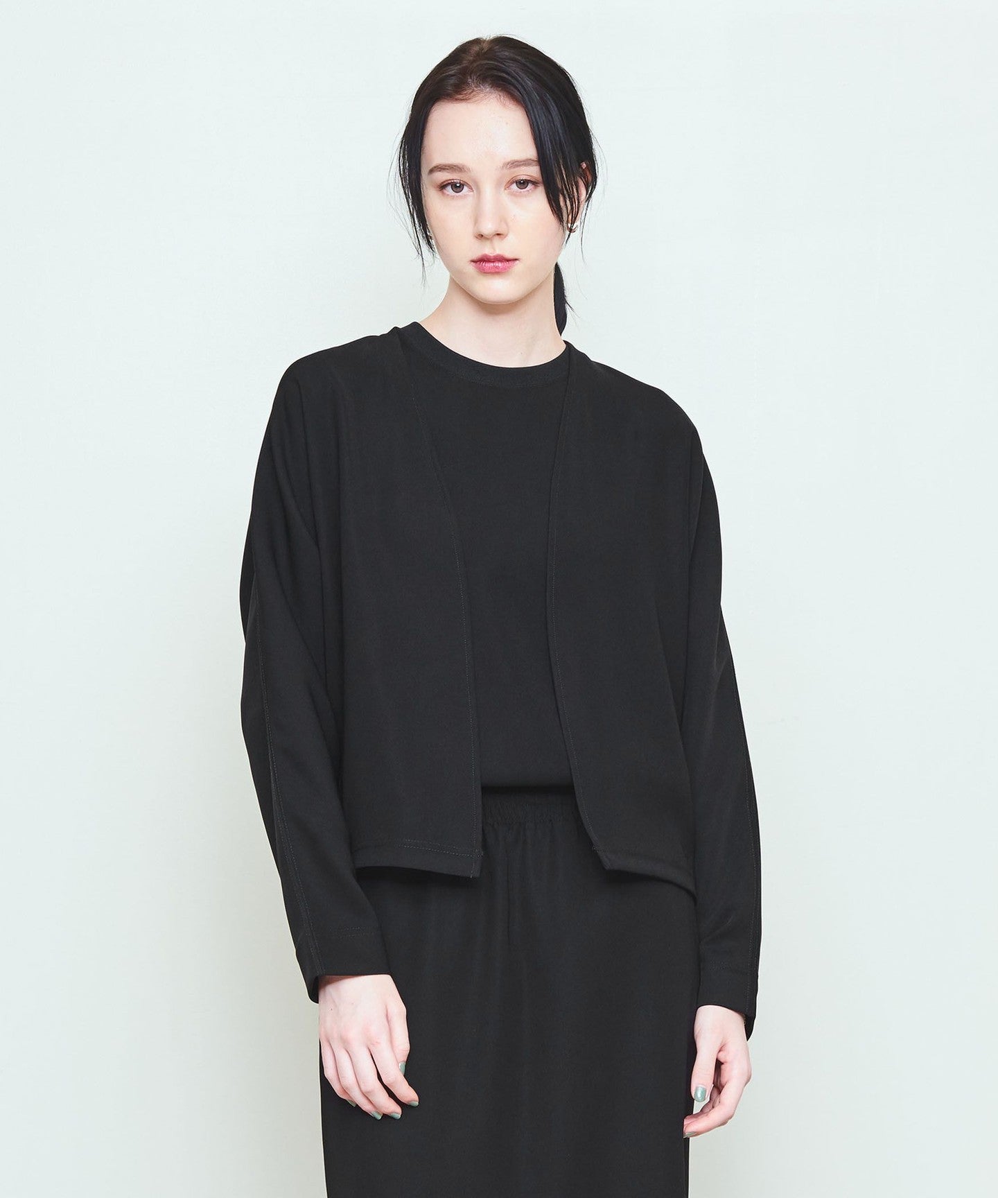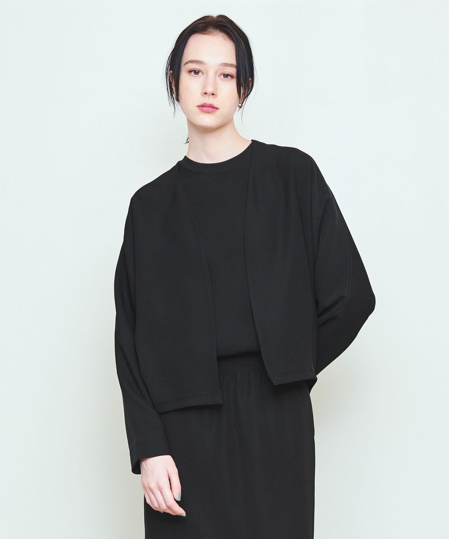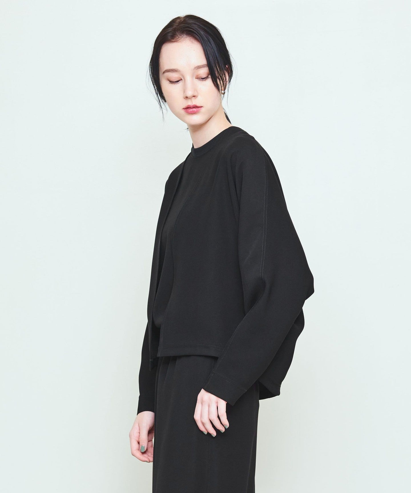 Dolman sleeves, buttonless front and minimalist design.