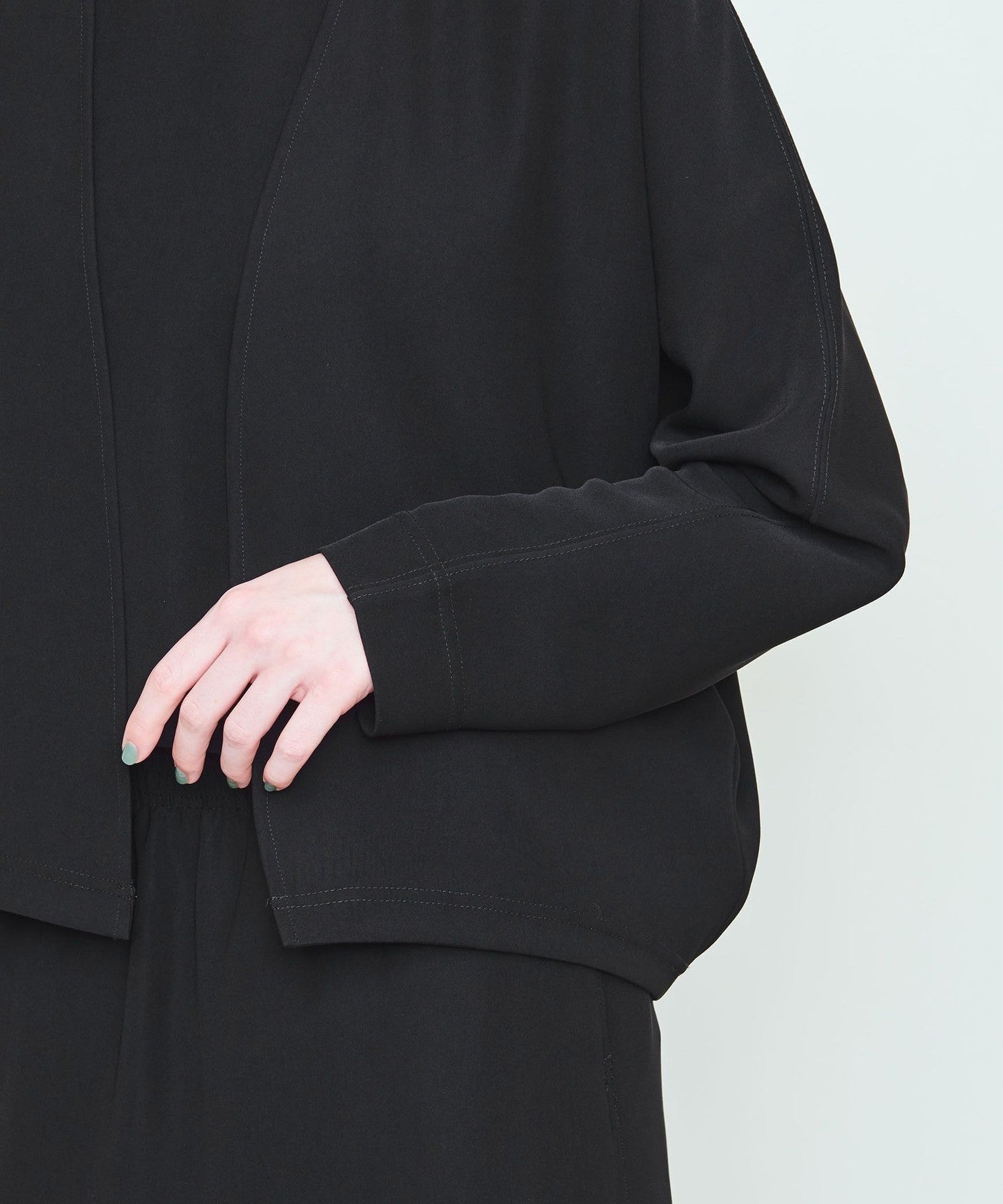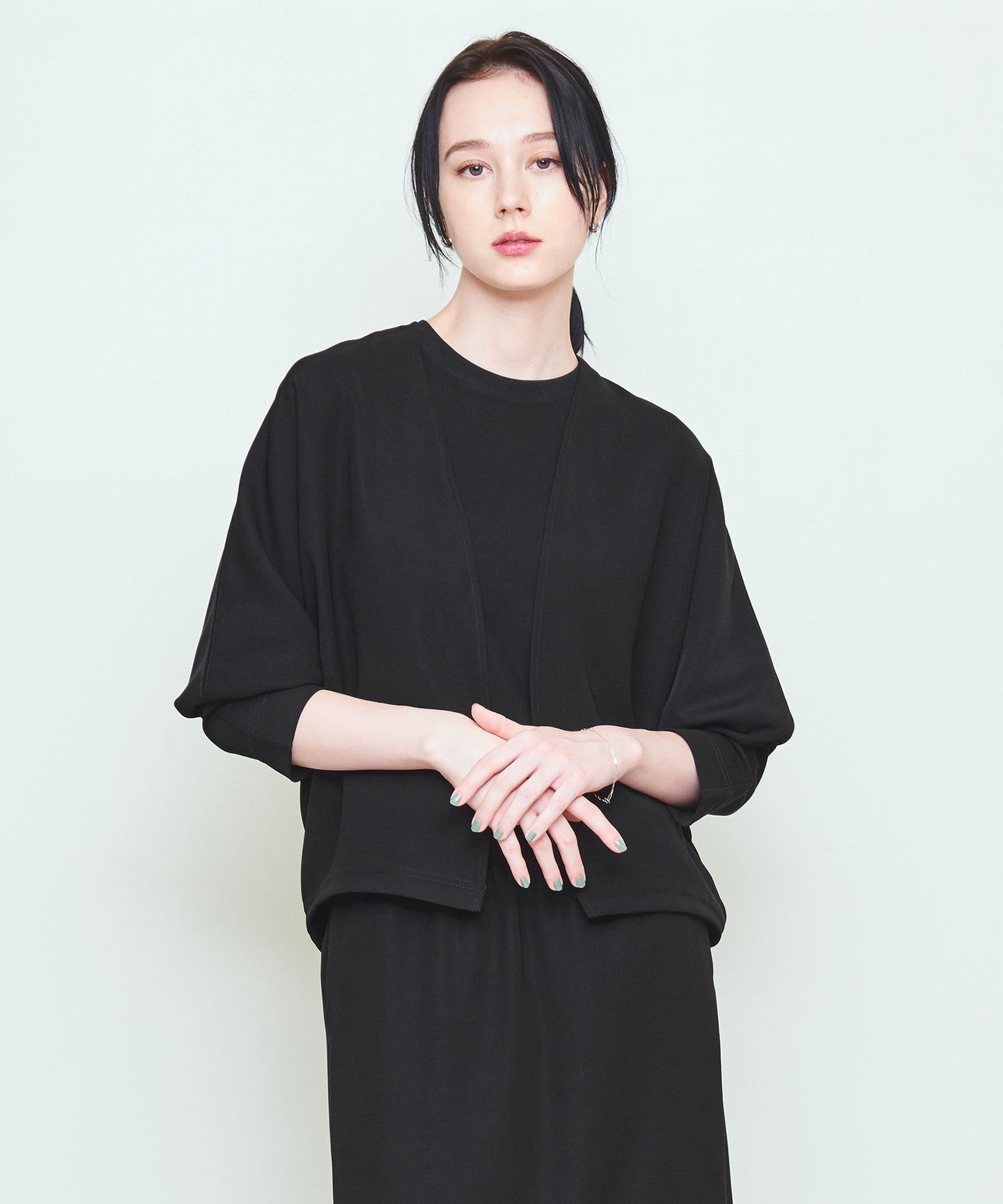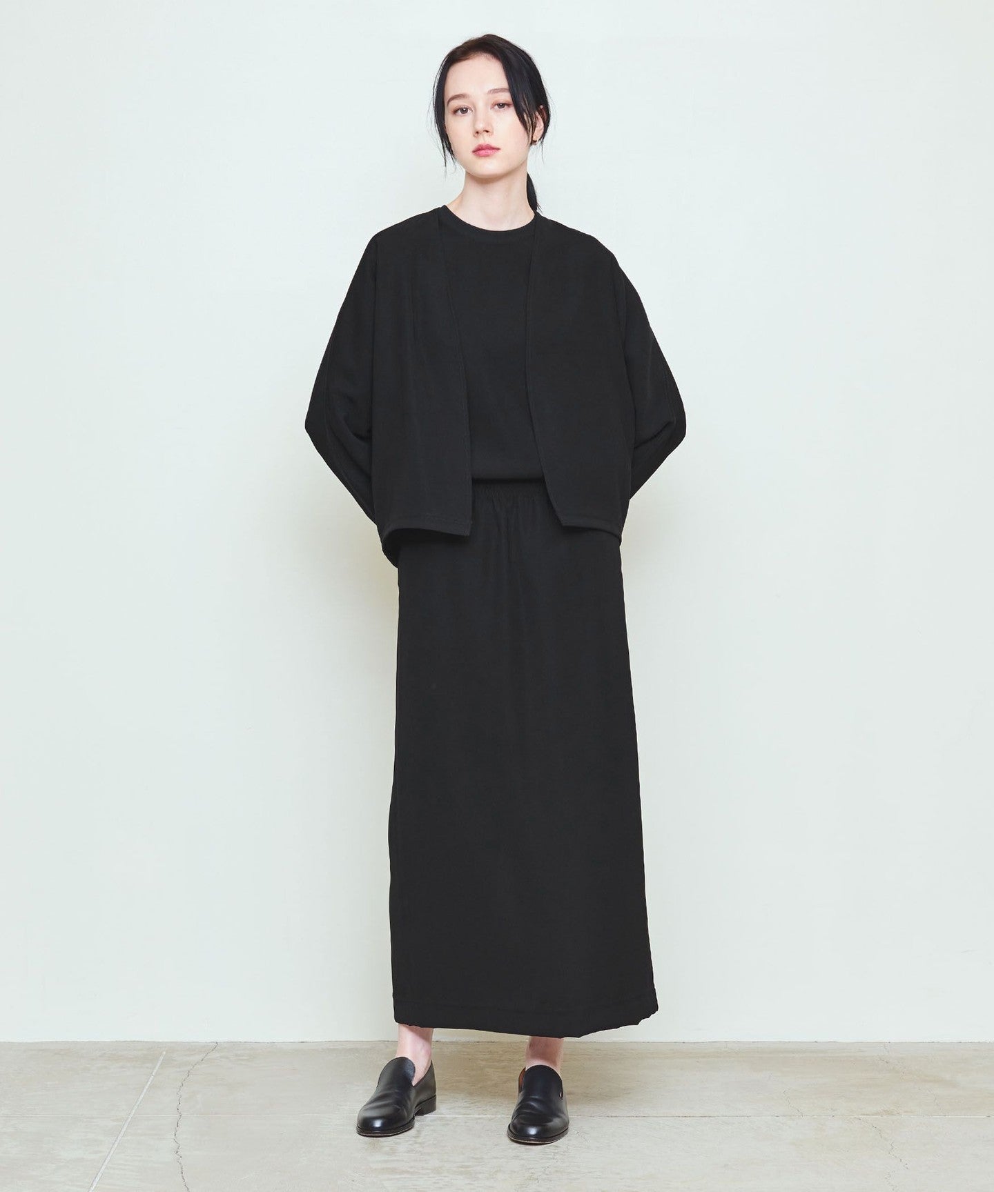 Dolman sleeves, buttonless front and minimalist design.