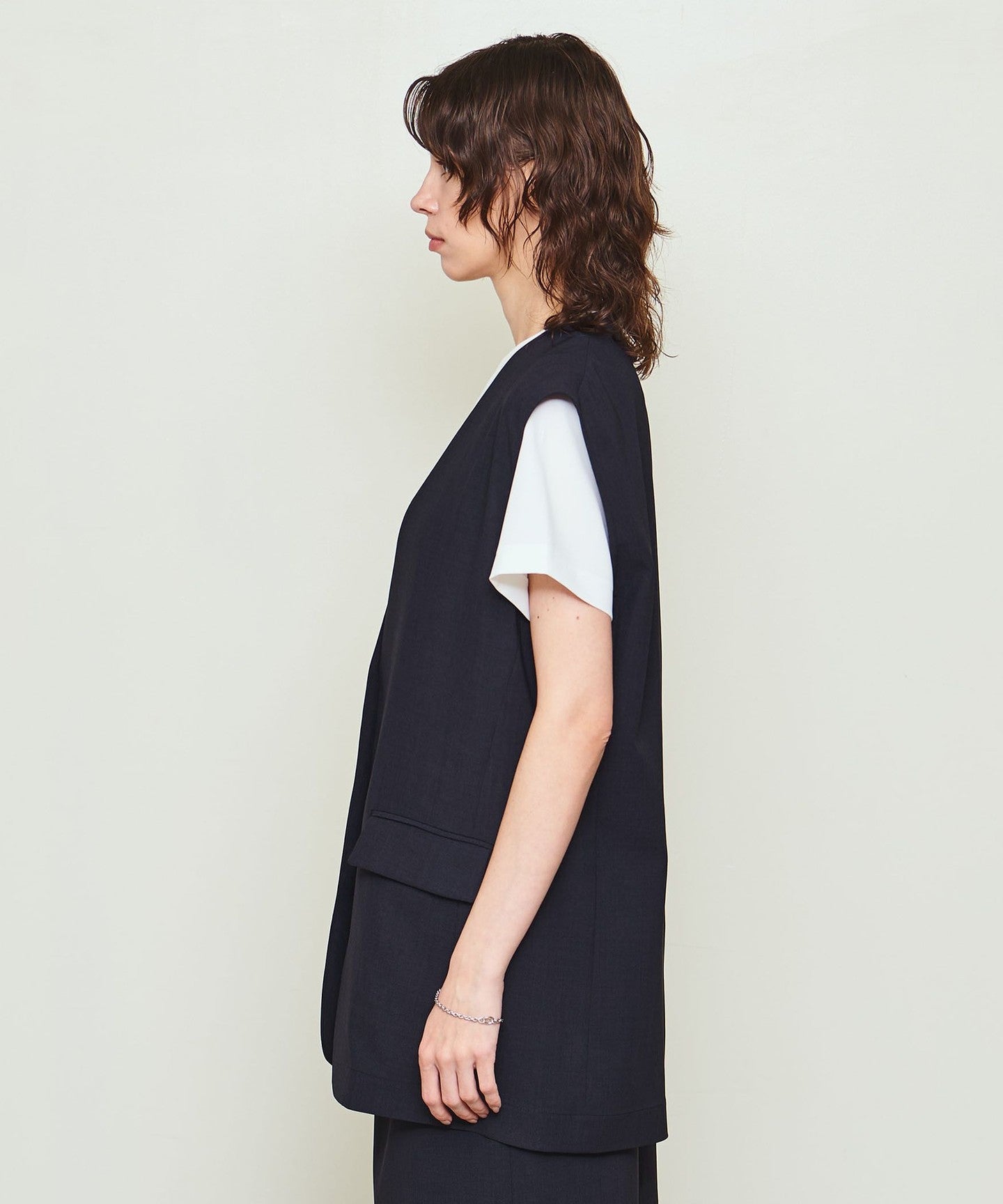 This vest can be worn in a variety of ways, changing the impression by pairing it with innerwear such as a cut-and-sew or shirt, allowing you to enjoy a wide range of styles.
