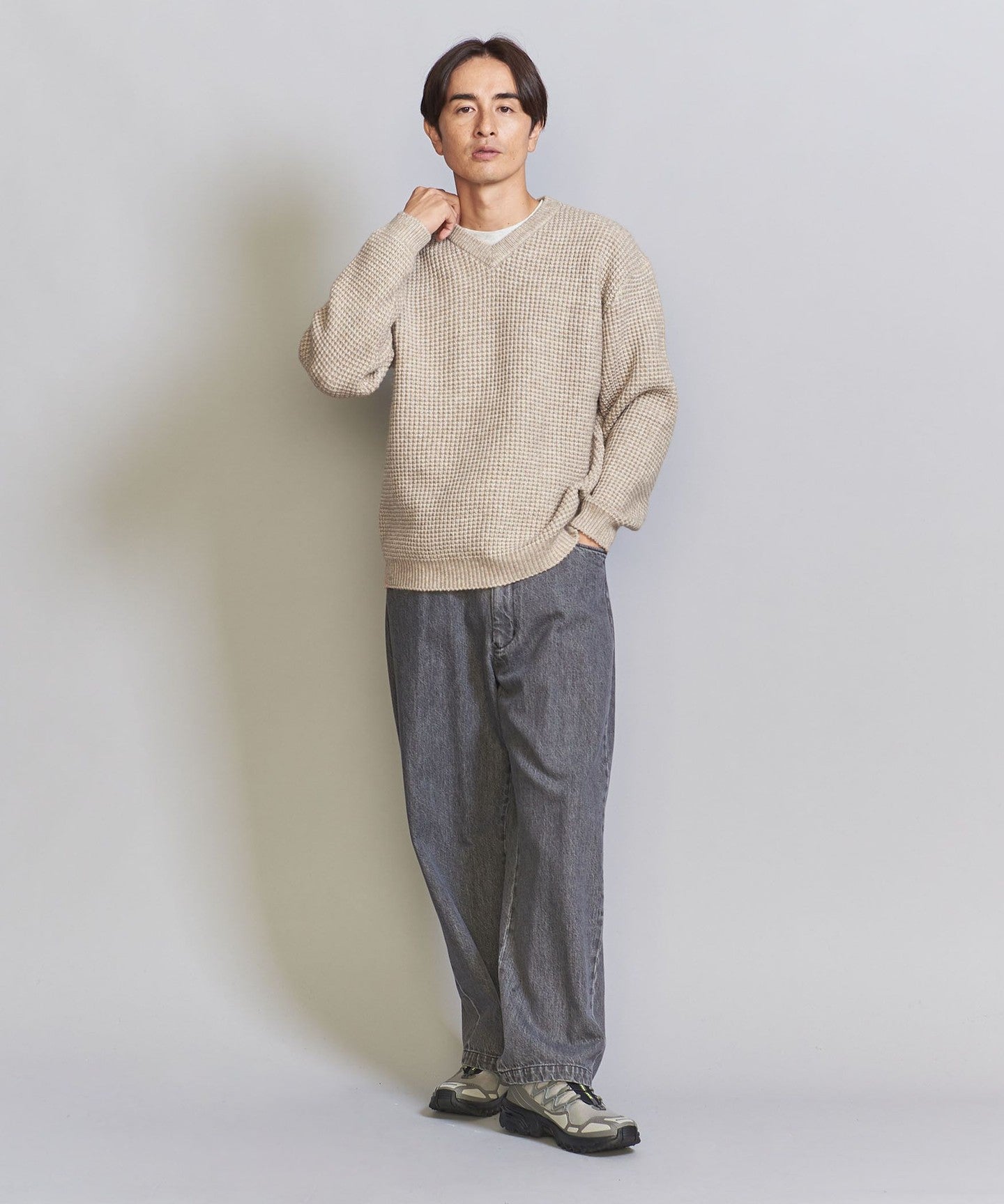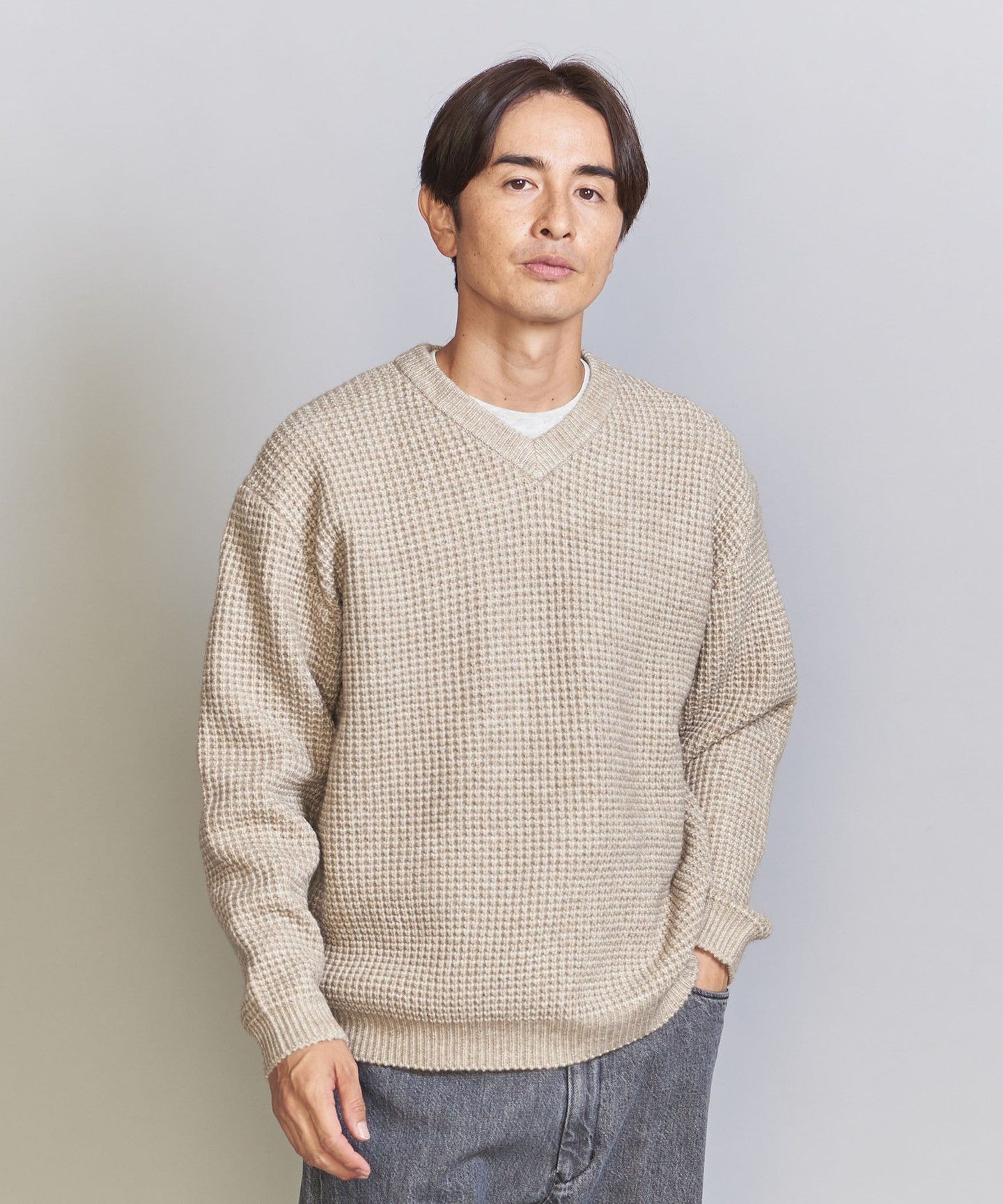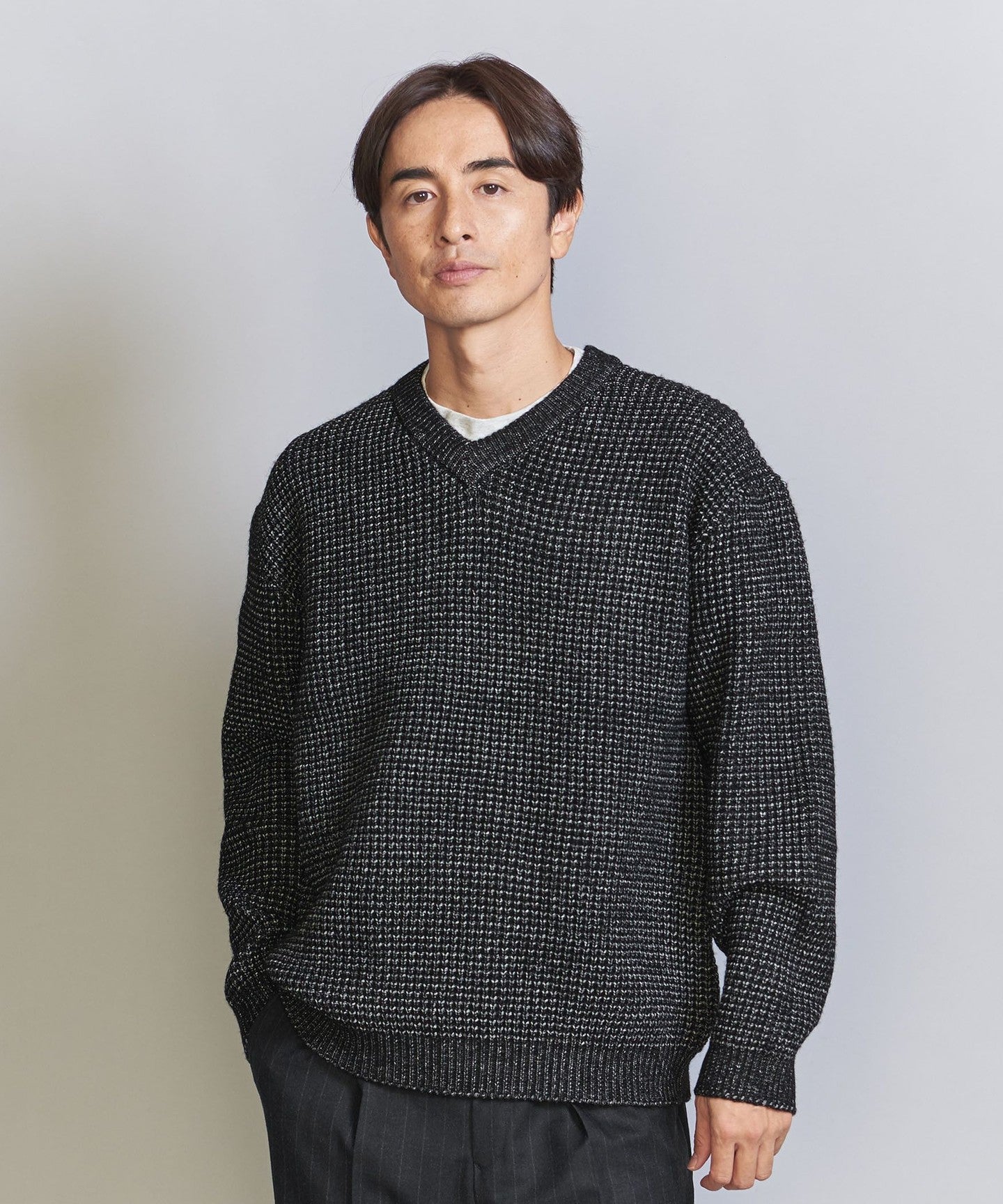 A V-neck that sharpens the impression around the face and makes layered outfits stand out.KNIT .