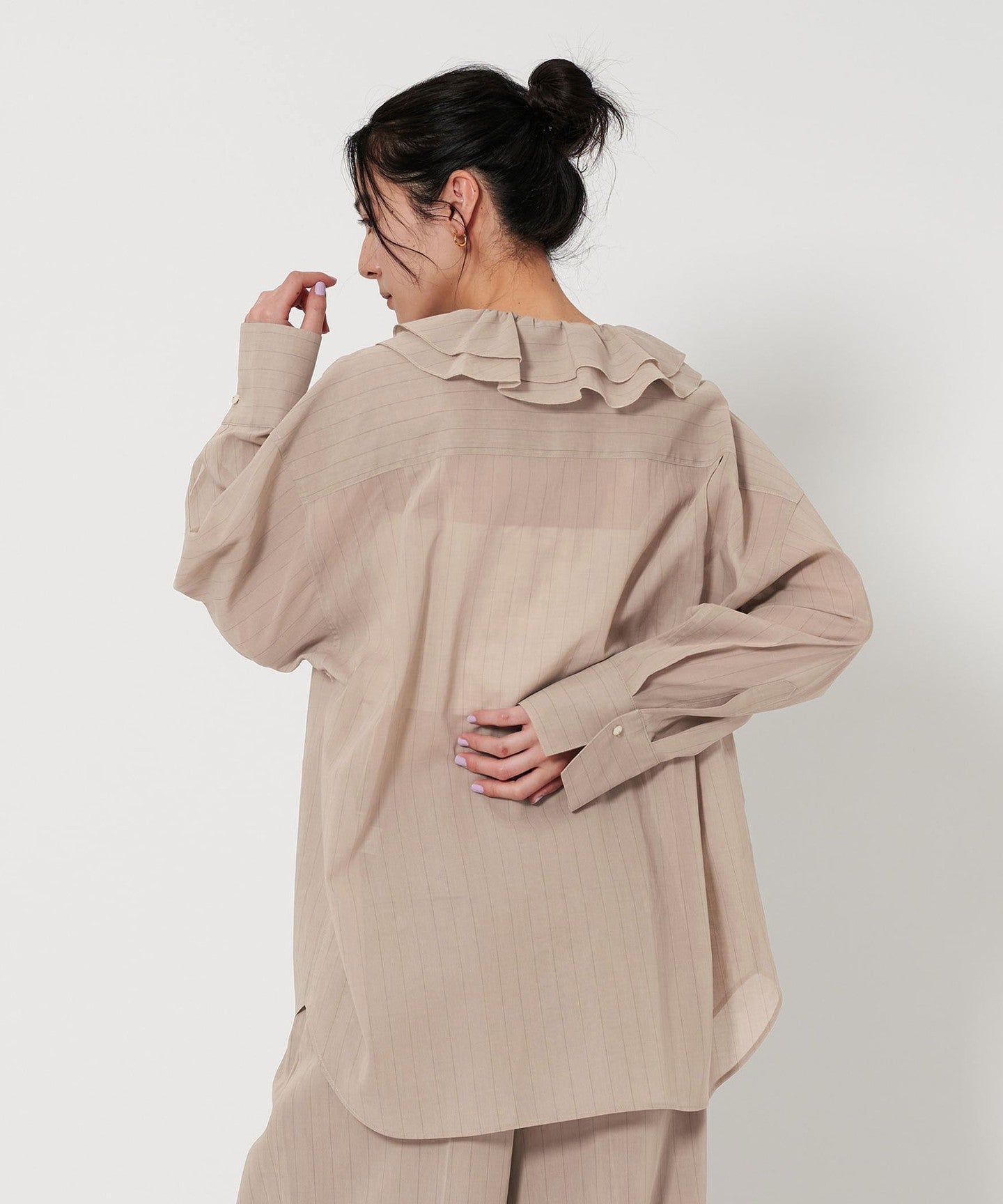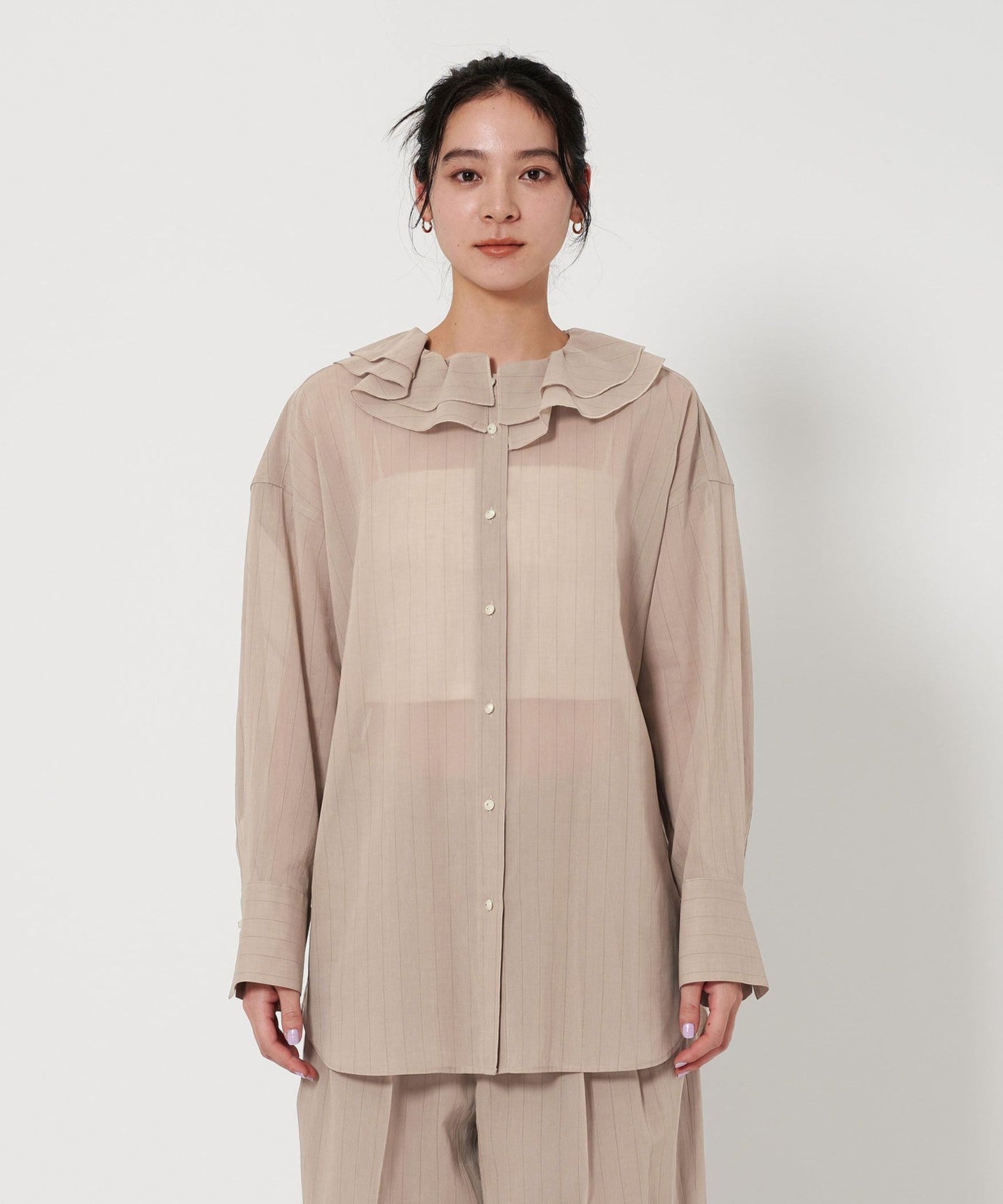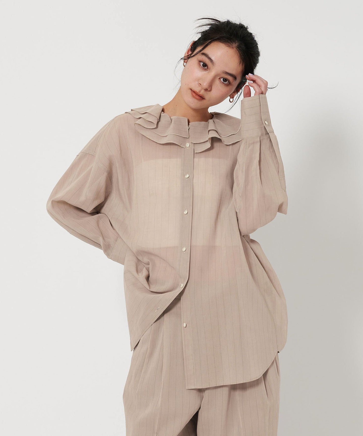 A ruffle shirt with a gentle transparency that creates a sensitive mood