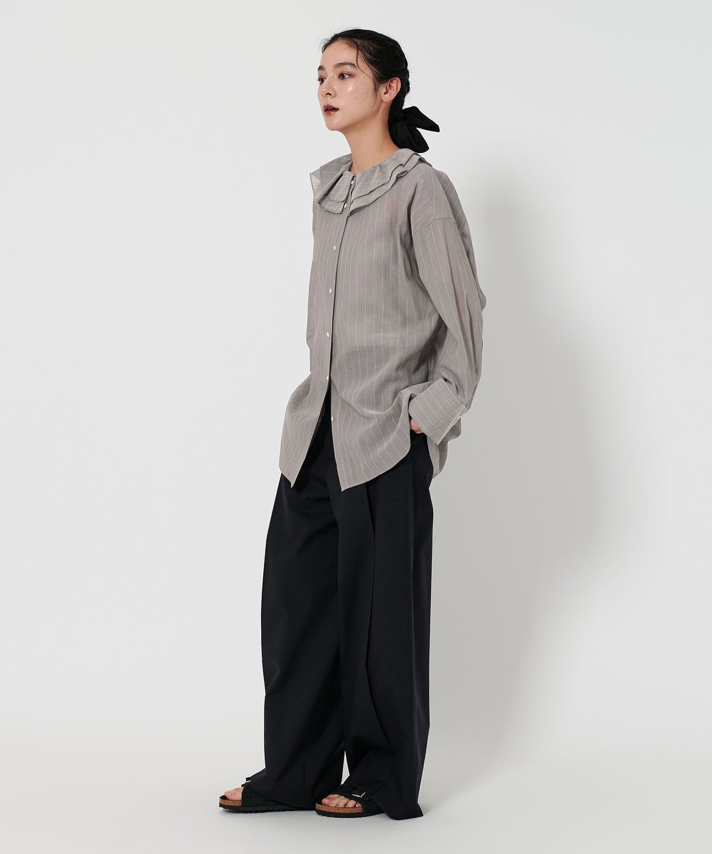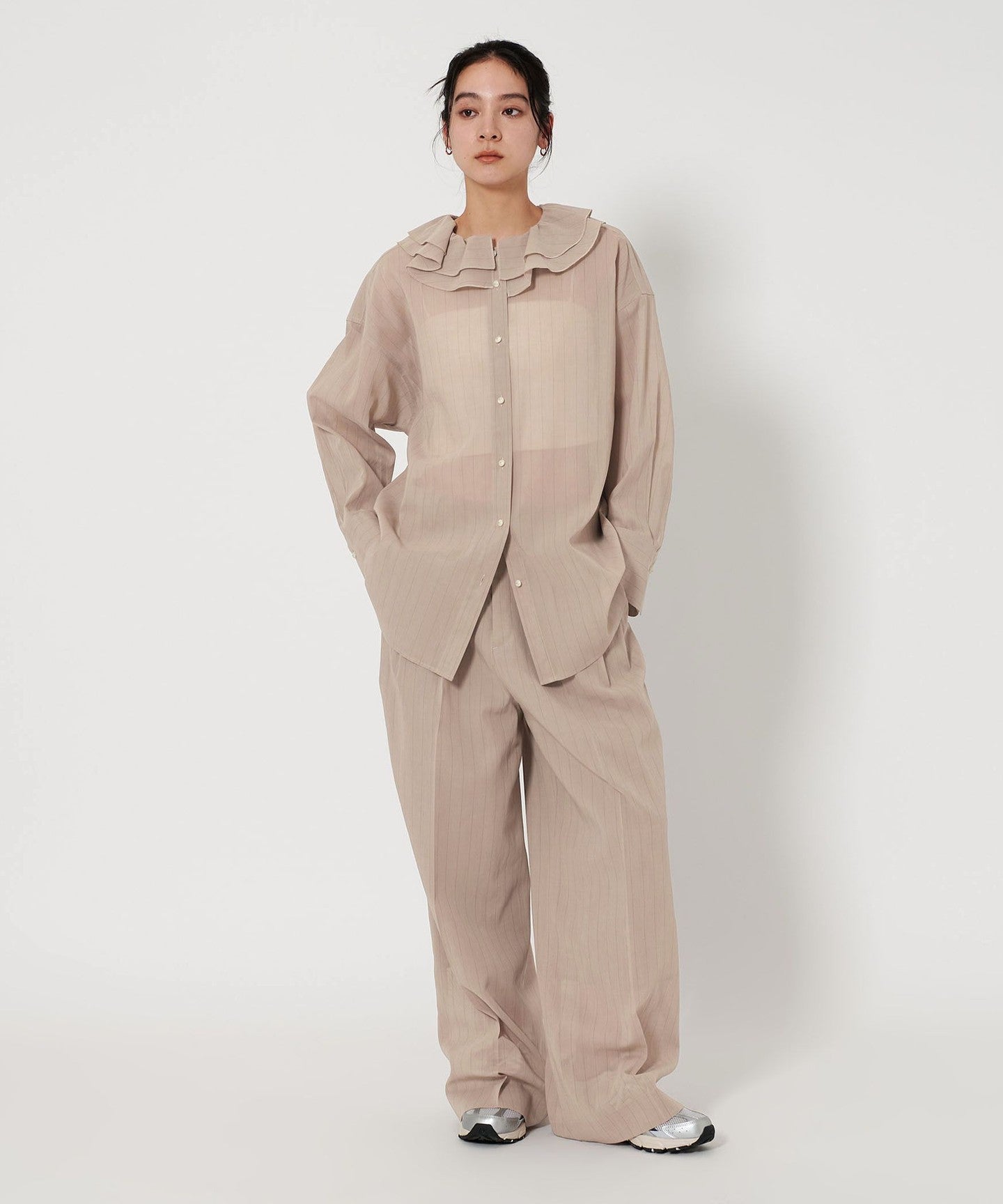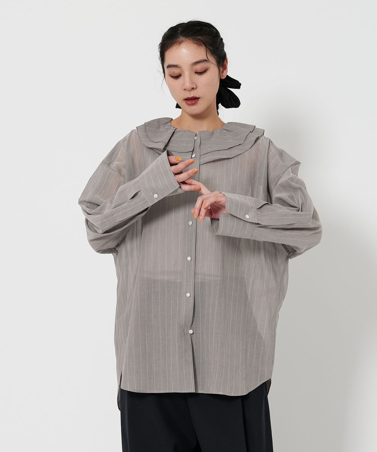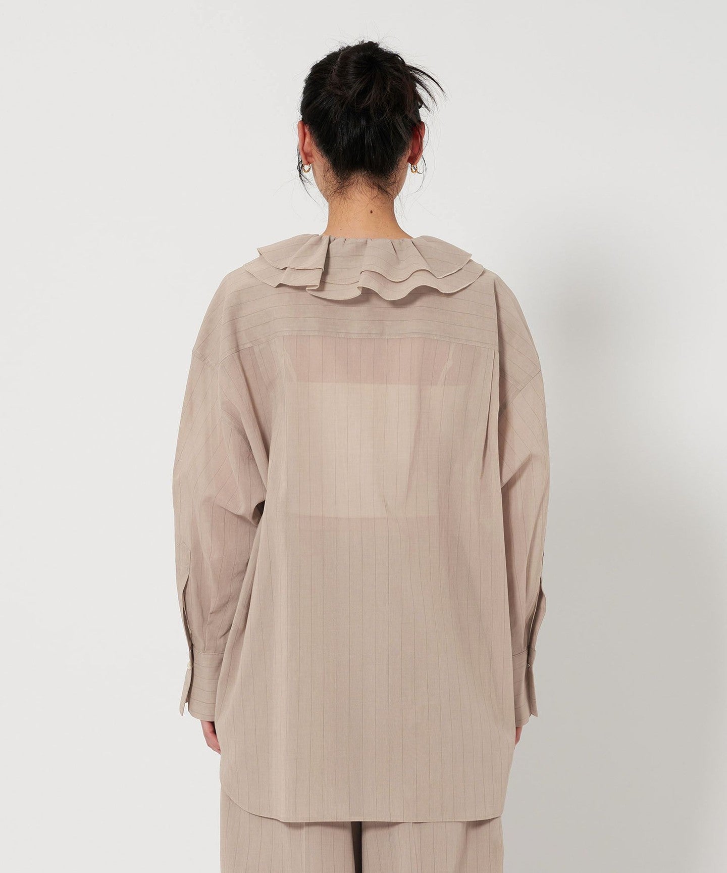 A ruffle shirt with a gentle transparency that creates a sensitive mood