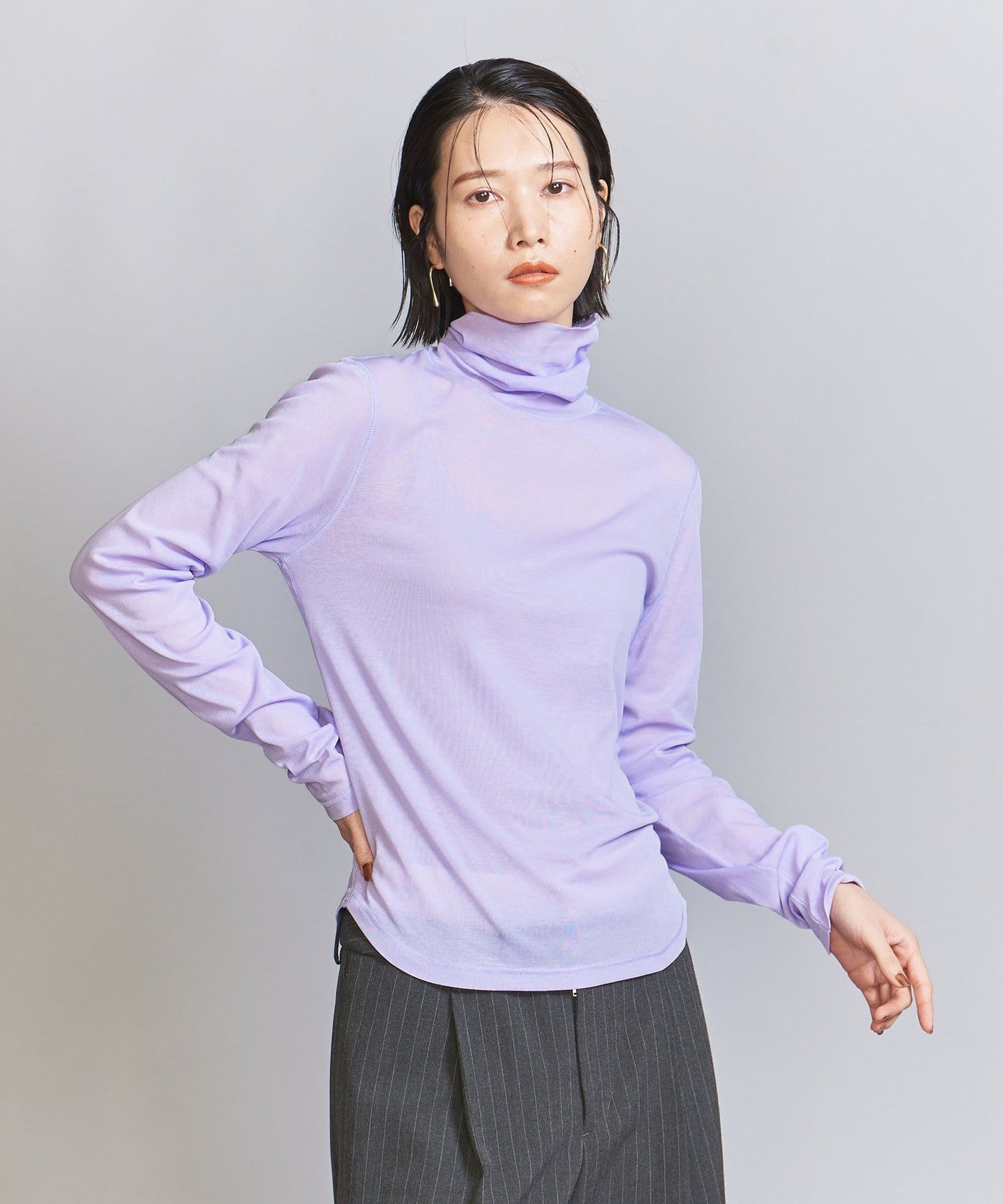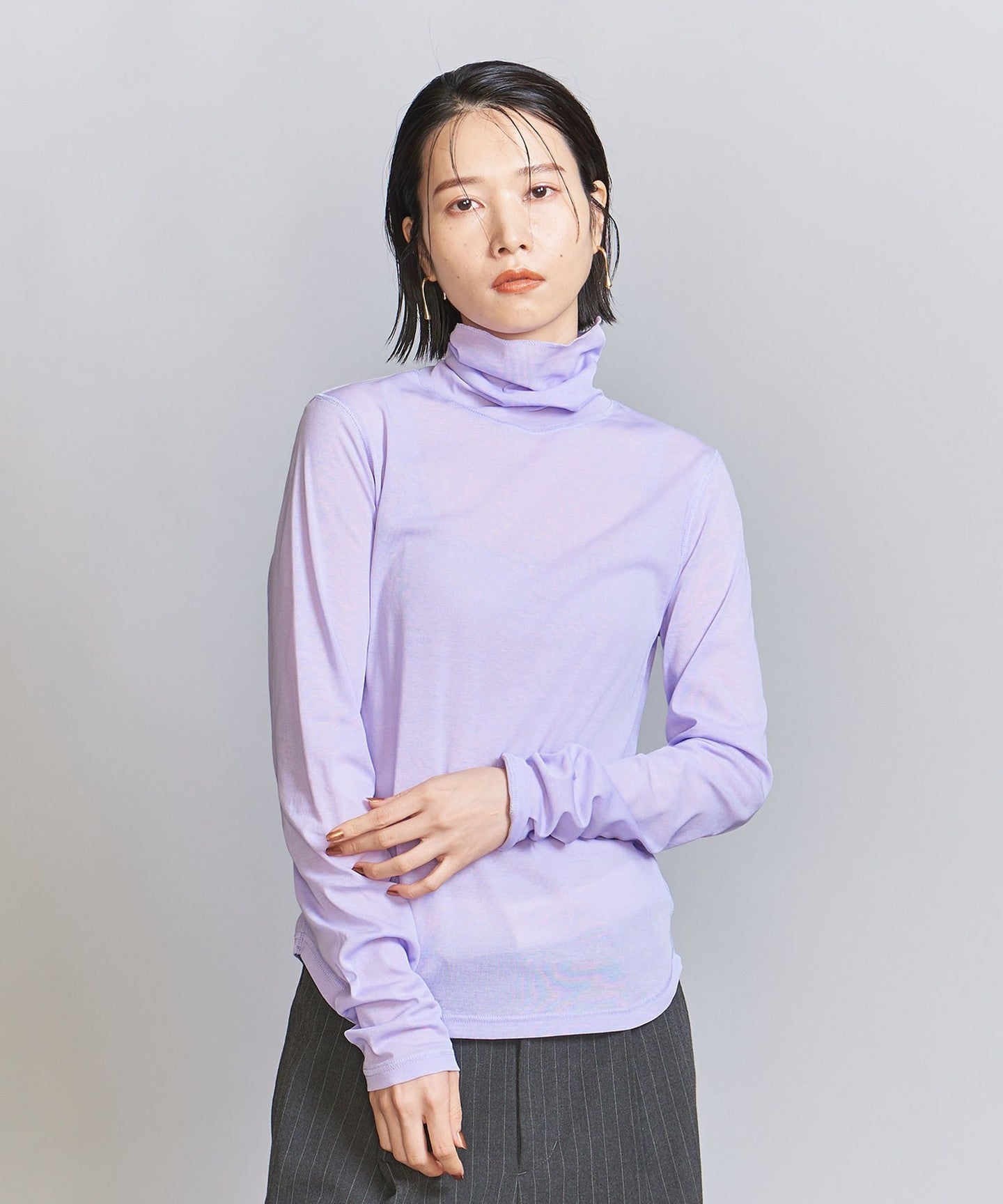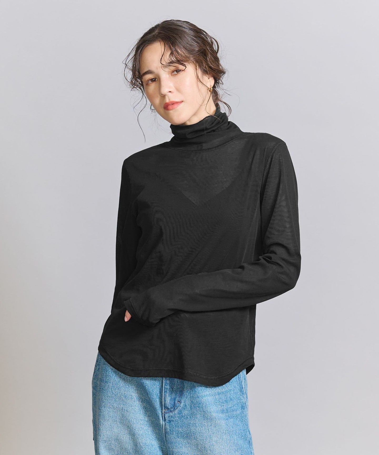 A sheer turtleneck cut-and-sew that exudes a seasonal vibe and is perfect for the transitional seasons.