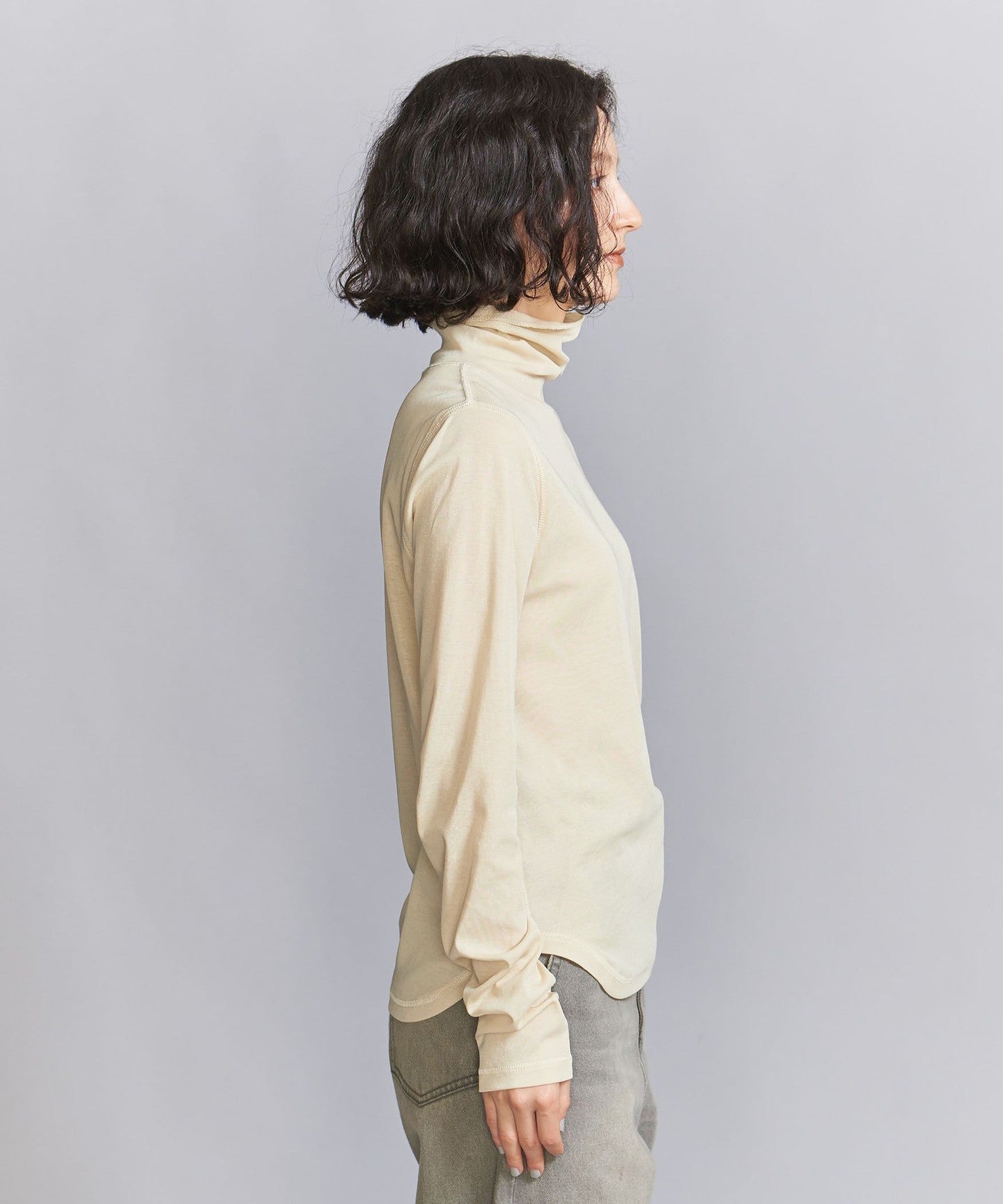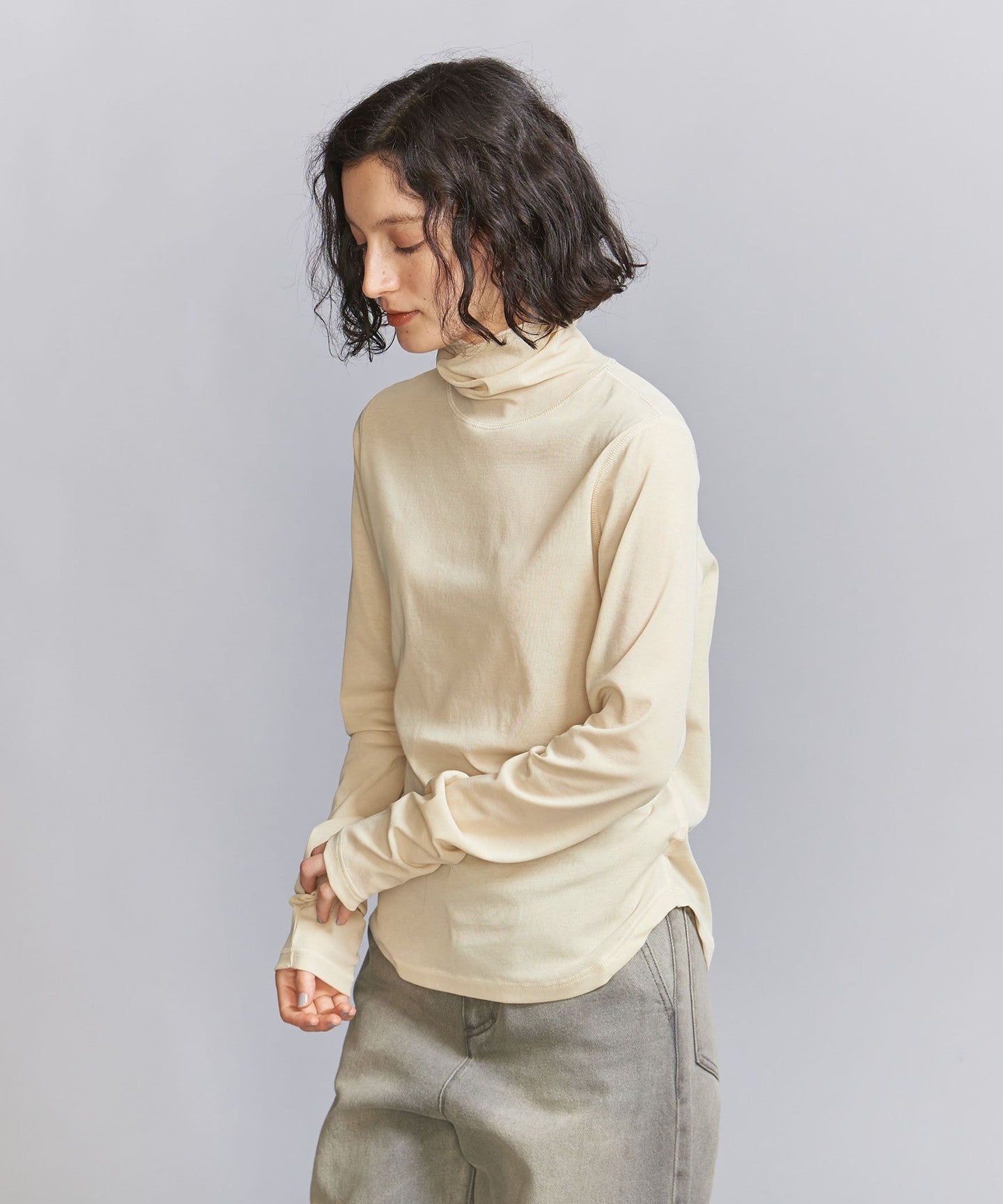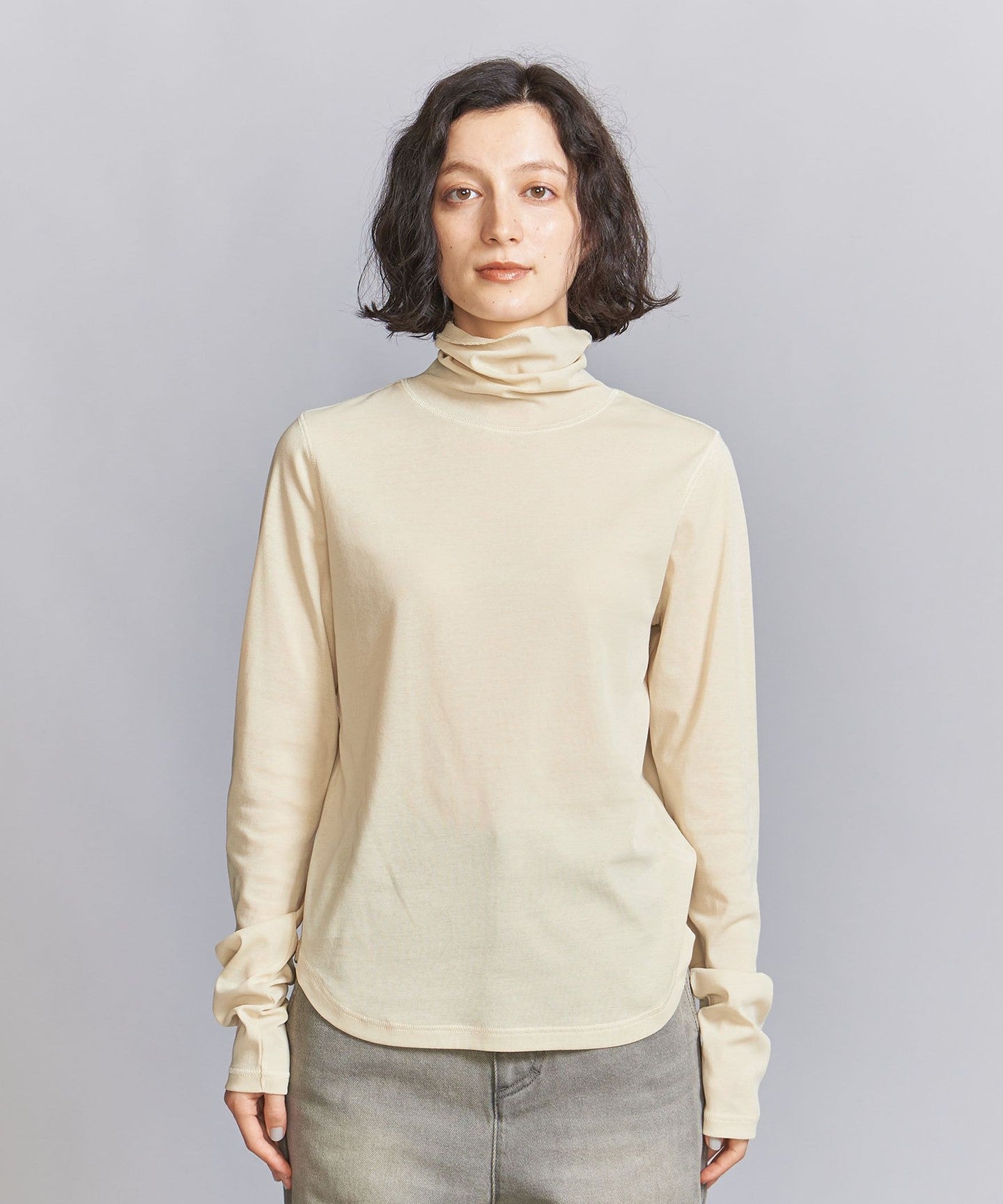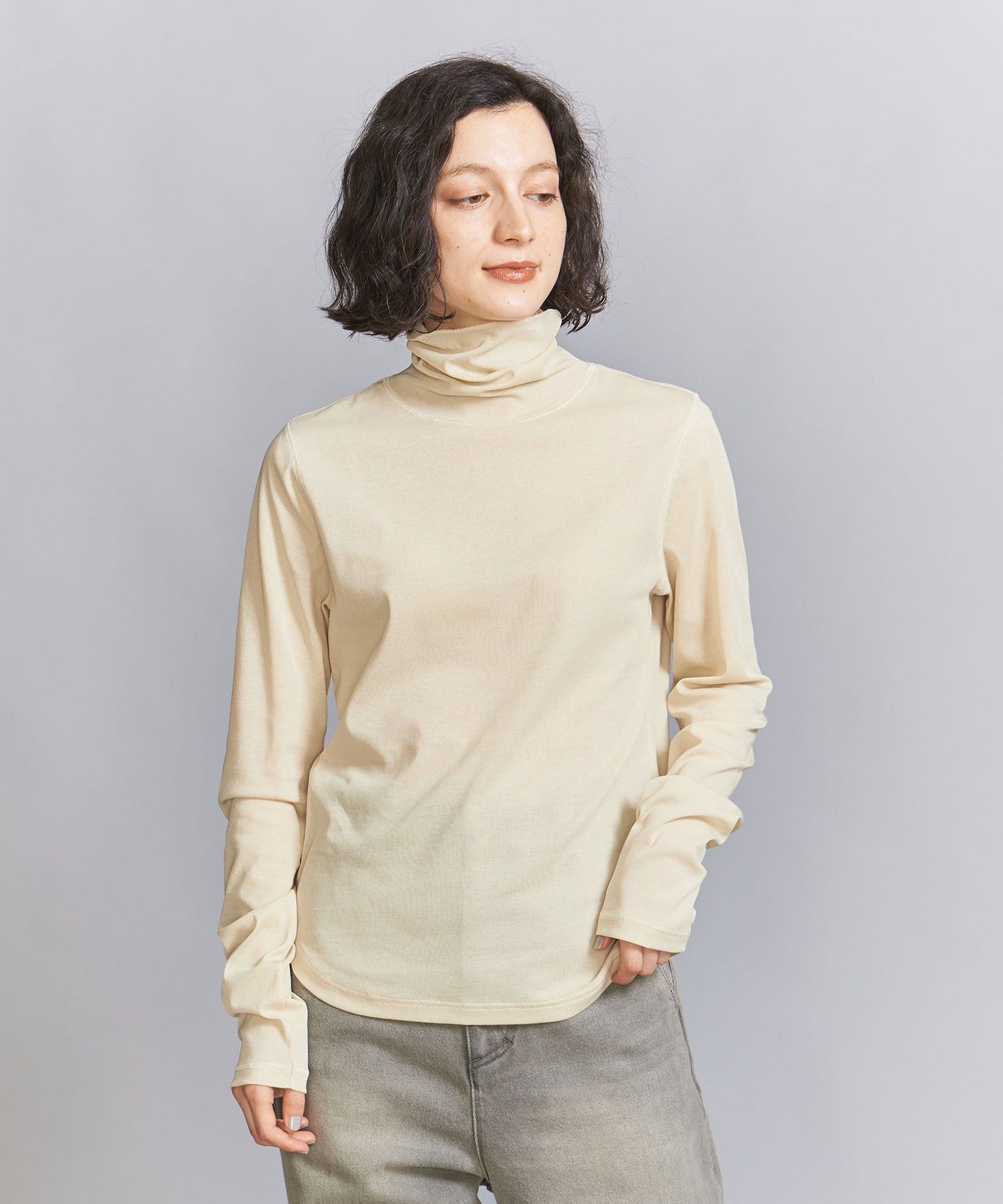 A sheer turtleneck cut-and-sew that exudes a seasonal vibe and is perfect for the transitional seasons.