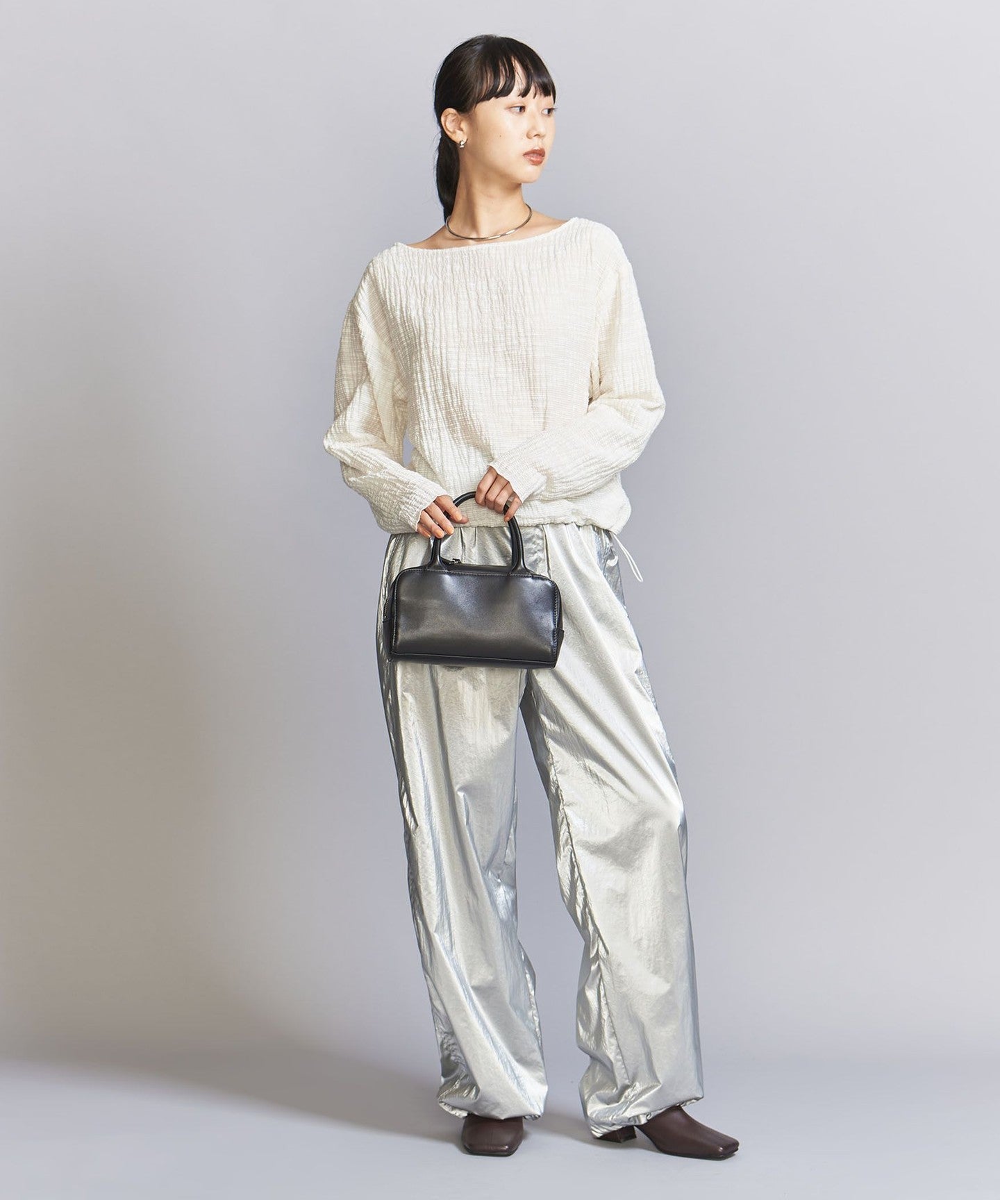 The current trend is to pair it with voluminous casual bottoms such as work pants or high-waisted bottoms.
