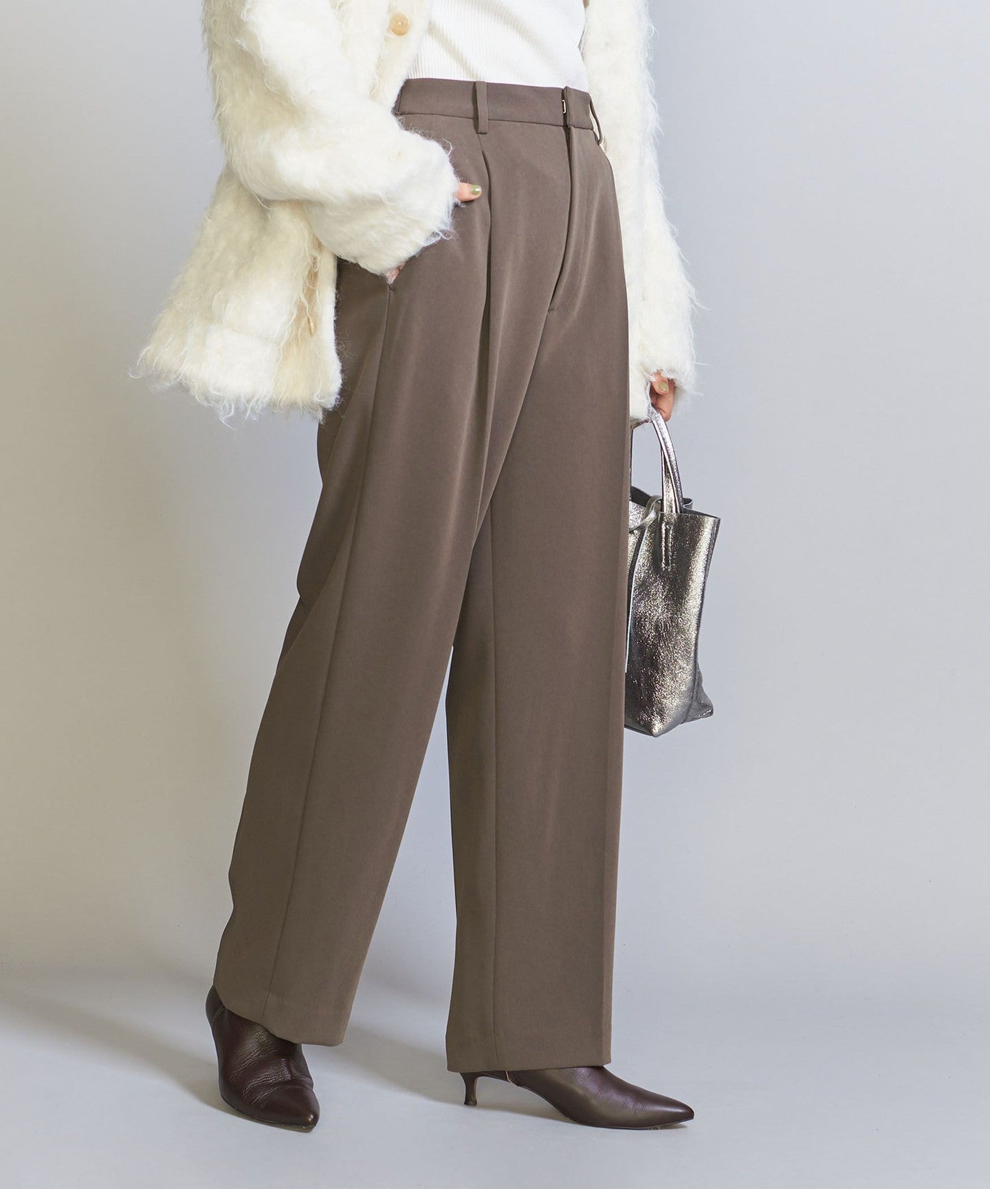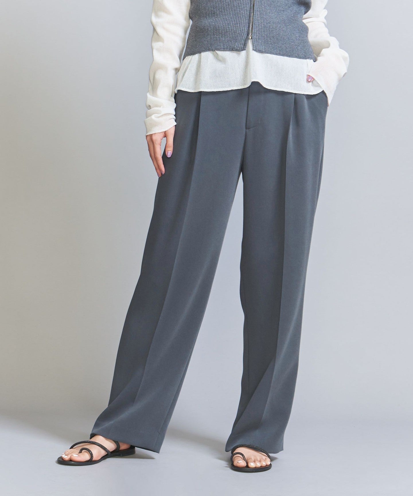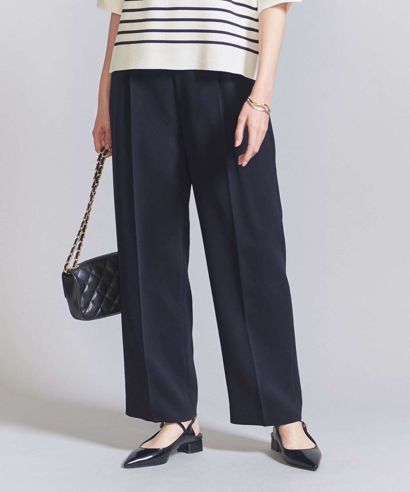 The high waist wraps around the waist, and the center crease with repeated tucks makes it both comfortable to wear and looks stylish.