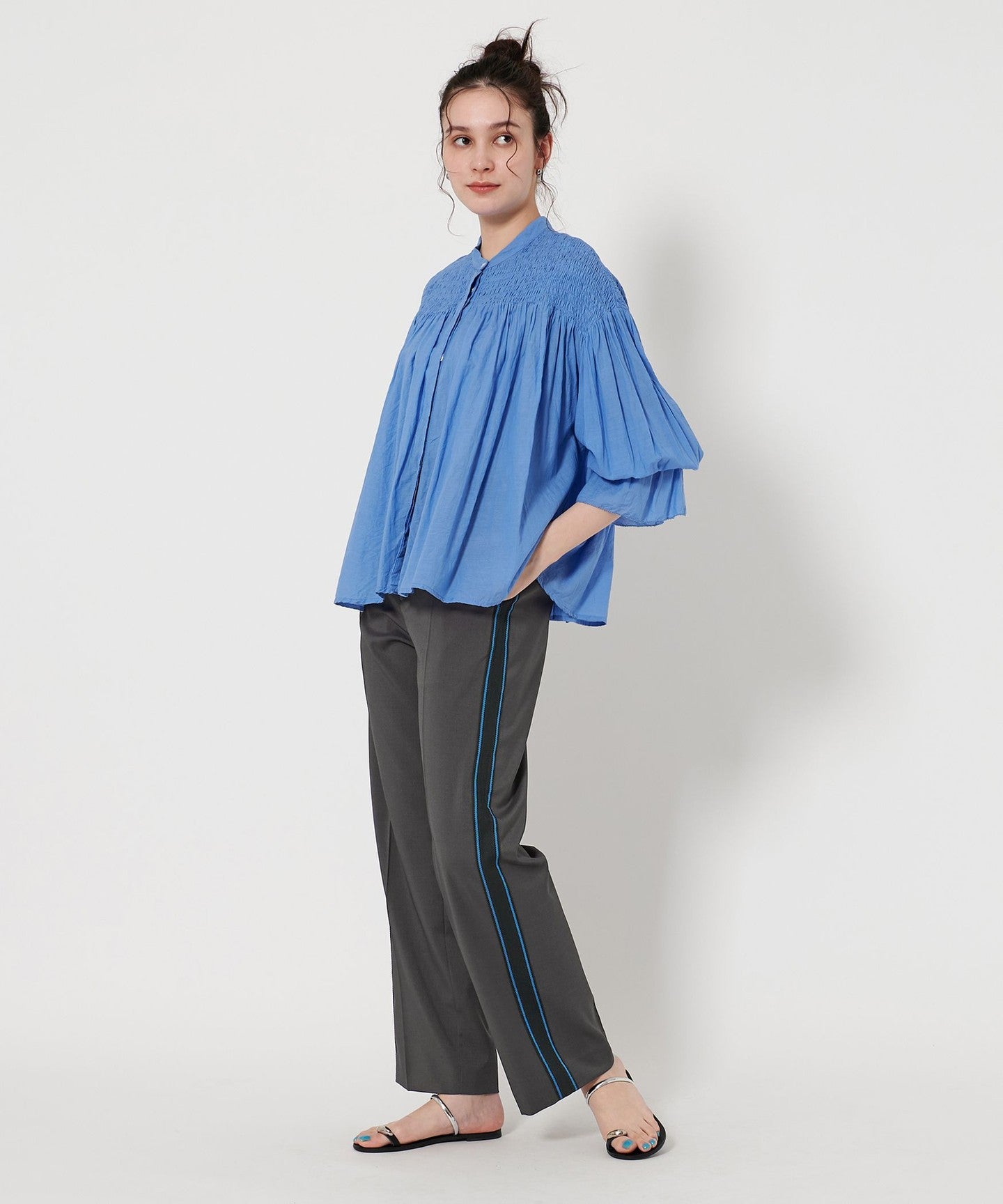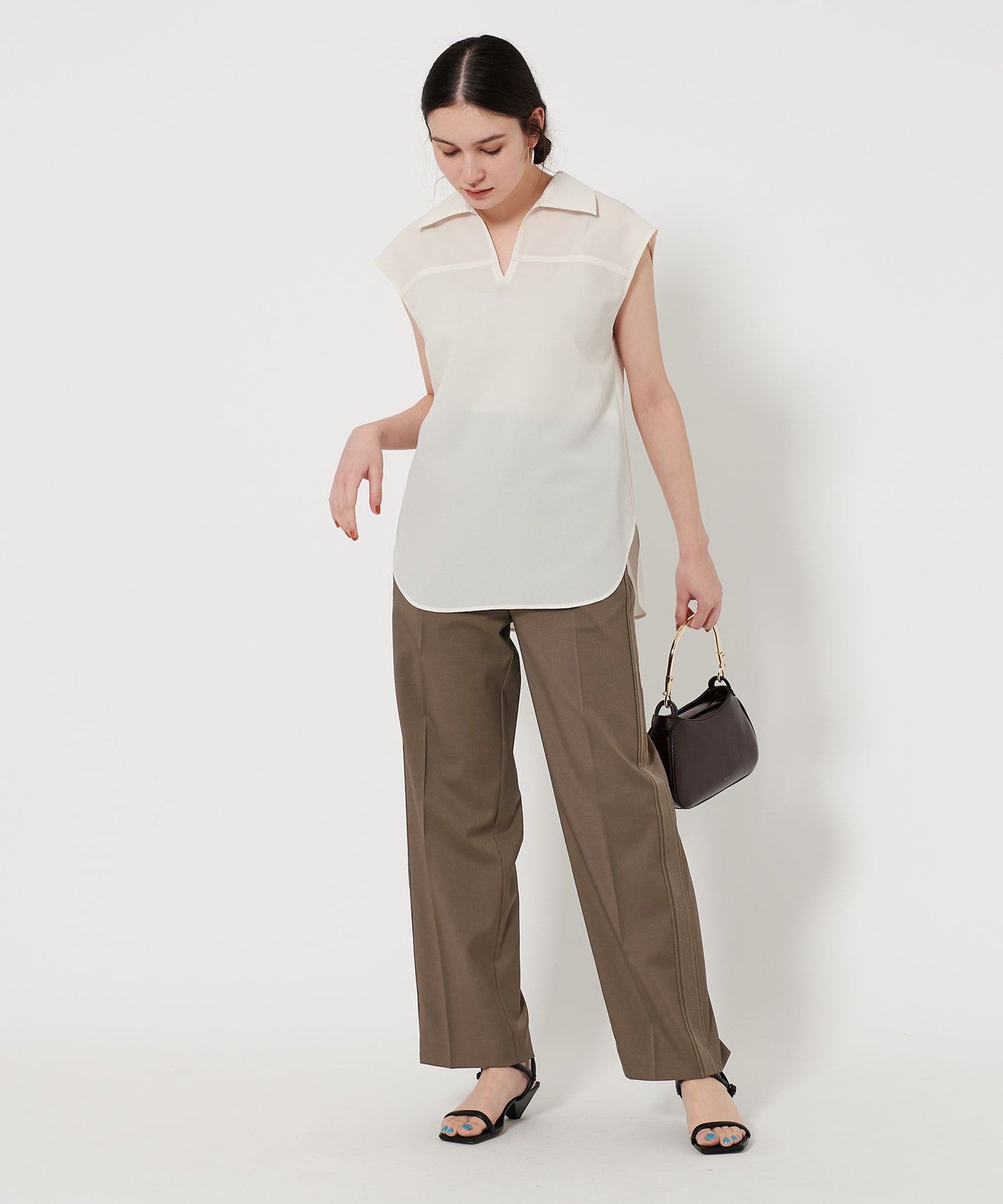 The slightly high-waisted straight silhouette has a clean finish without pleats, making it a design that is not too casual and easy for adults to wear.