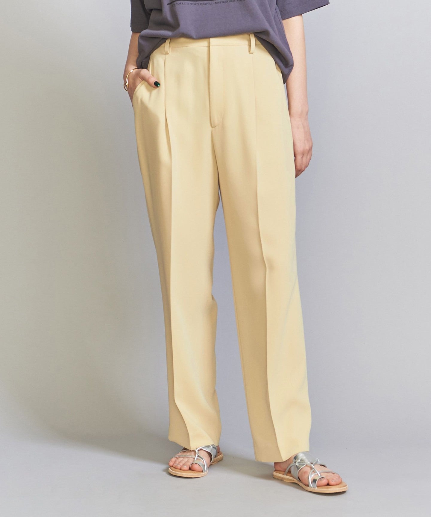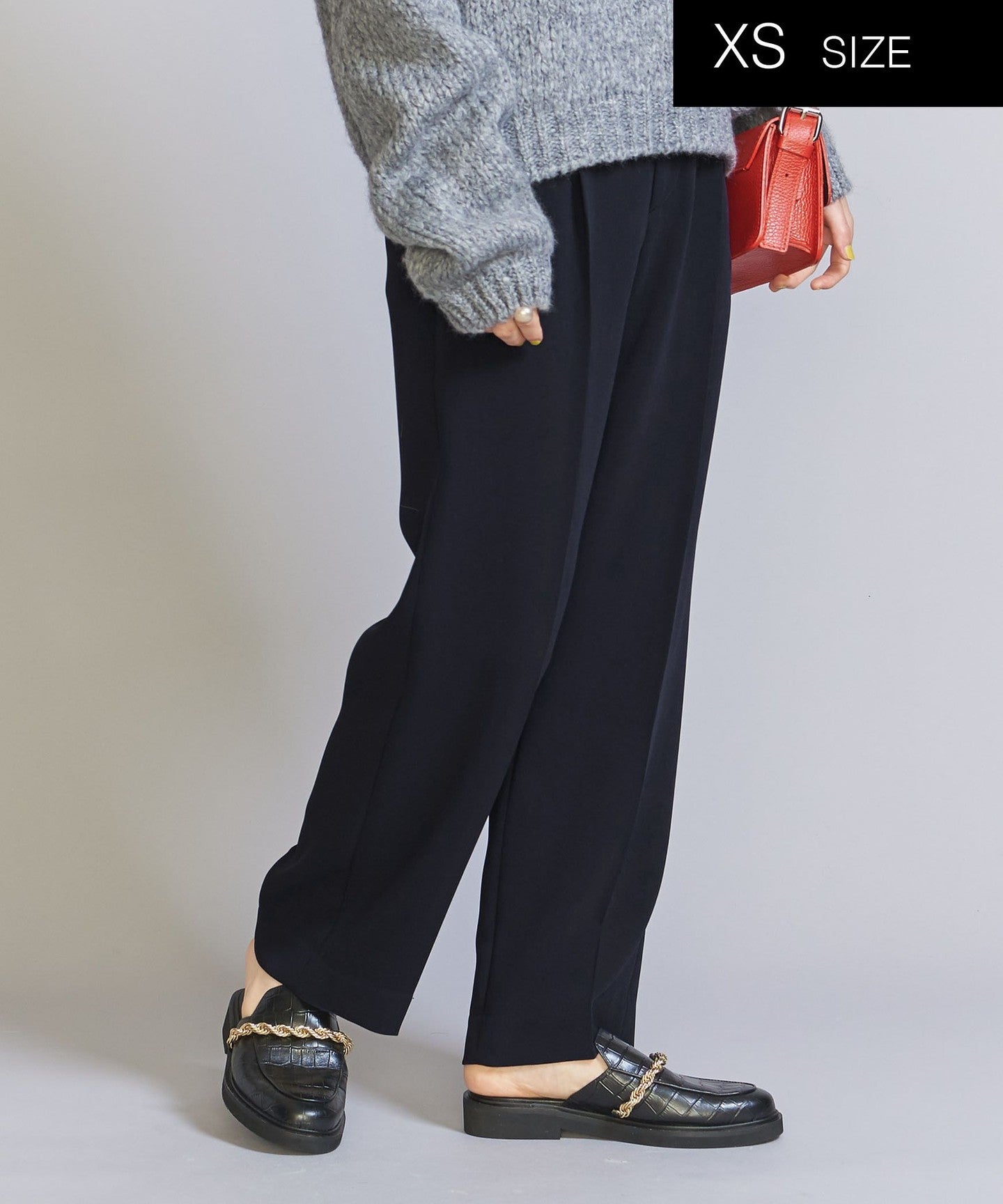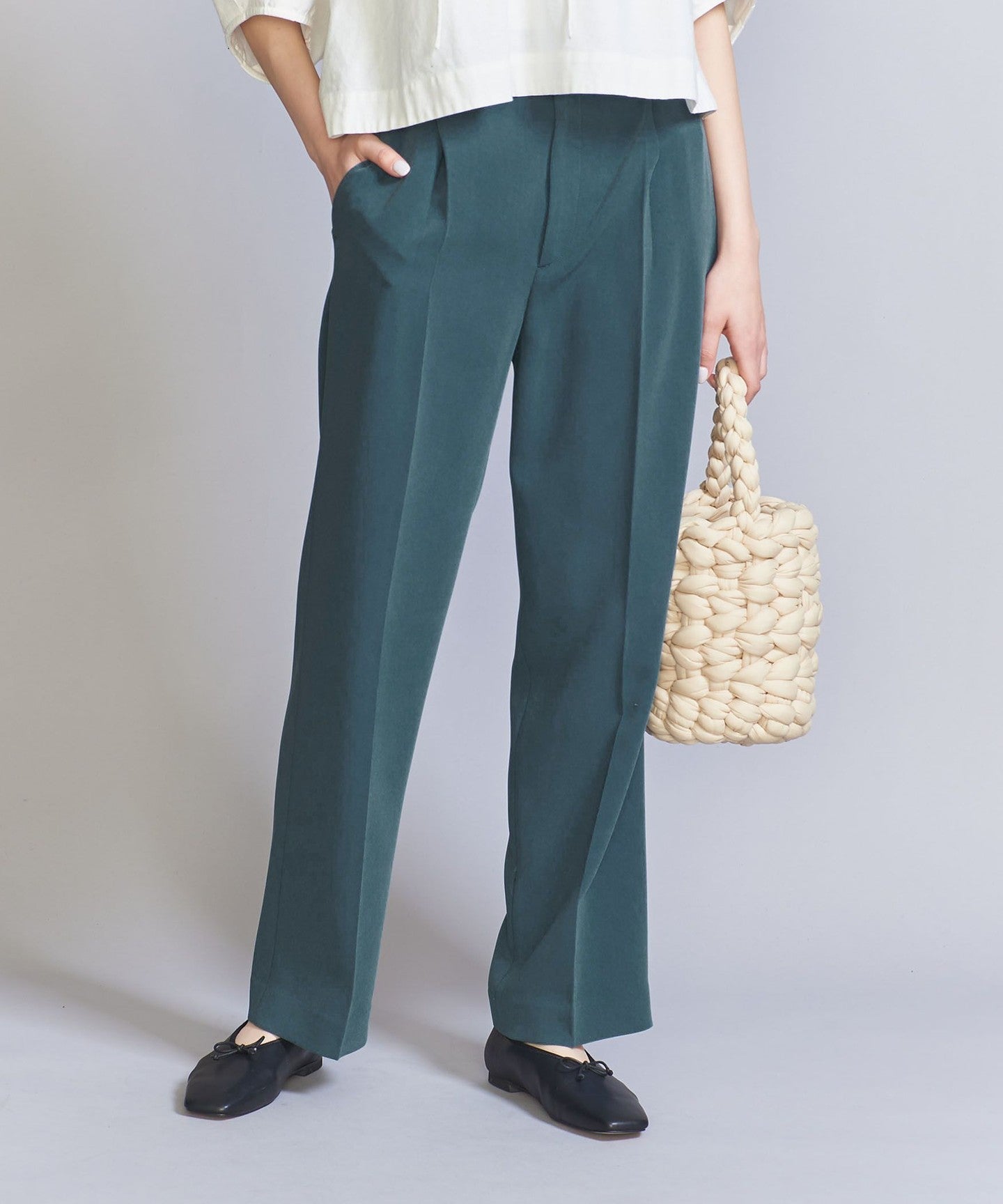 The high waist wraps around the waist, and the center crease with repeated tucks makes it both comfortable to wear and looks stylish.