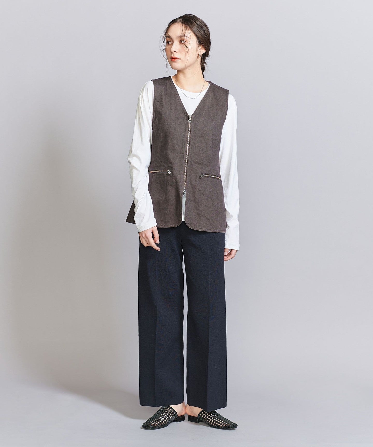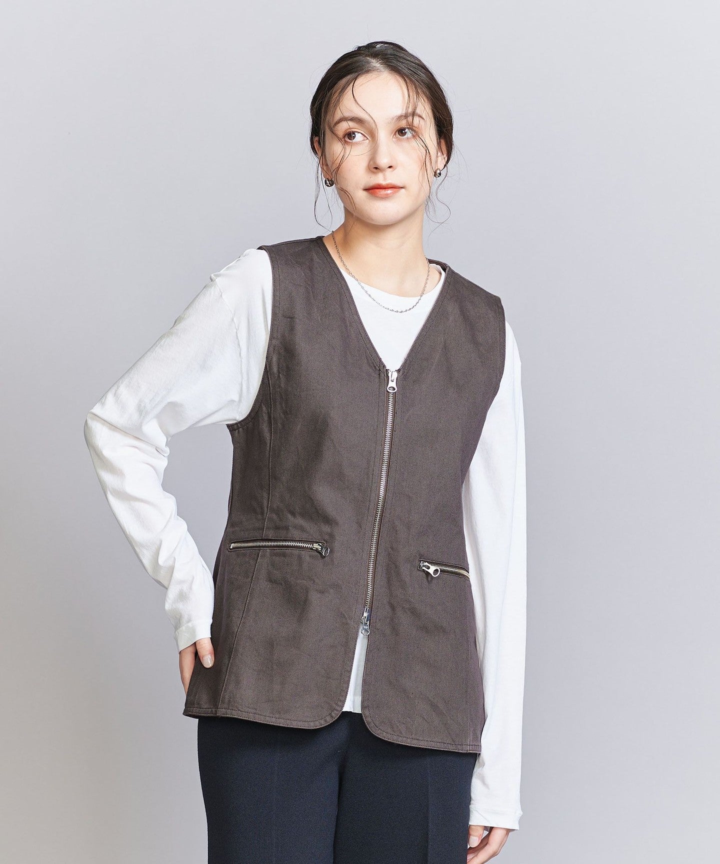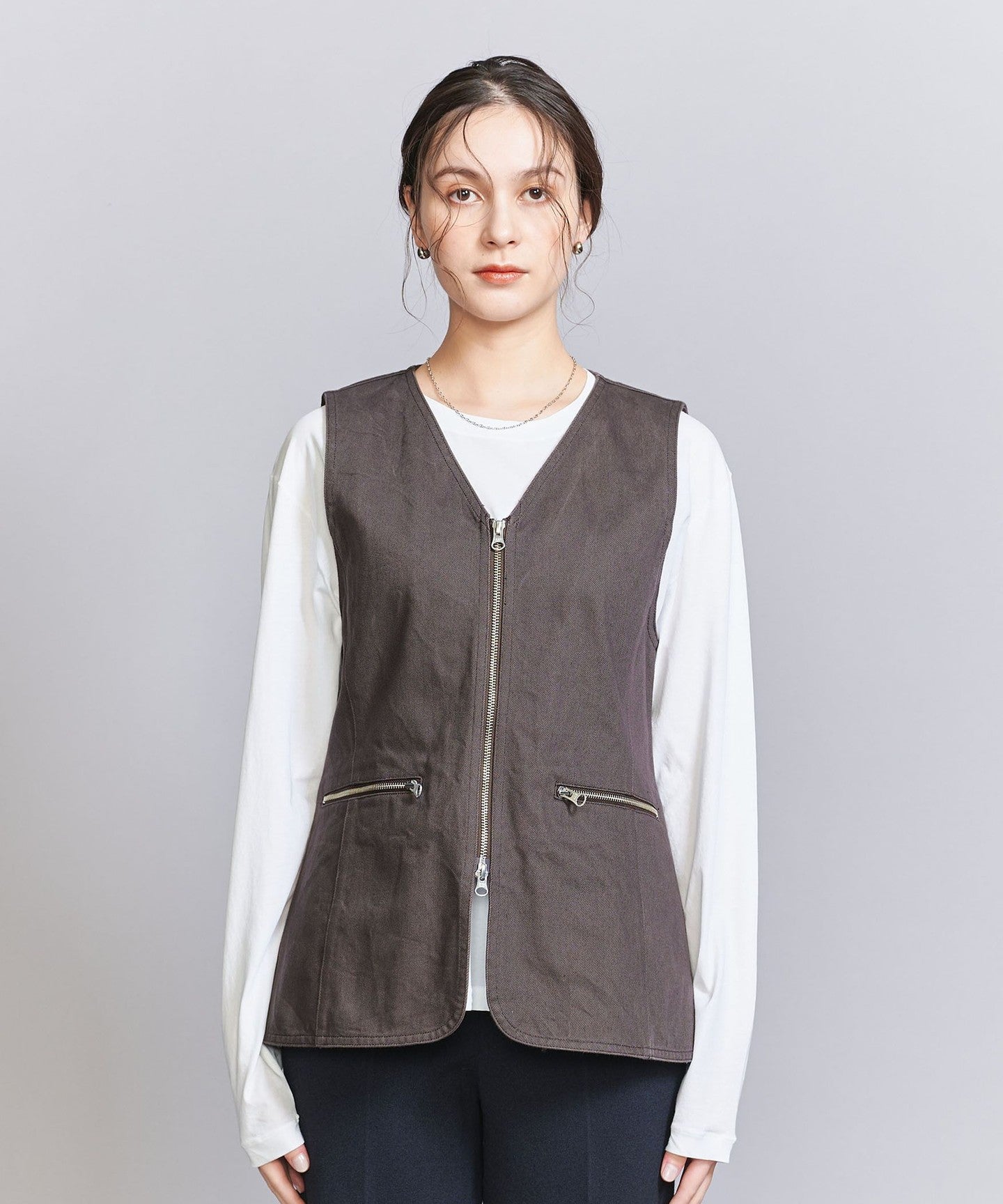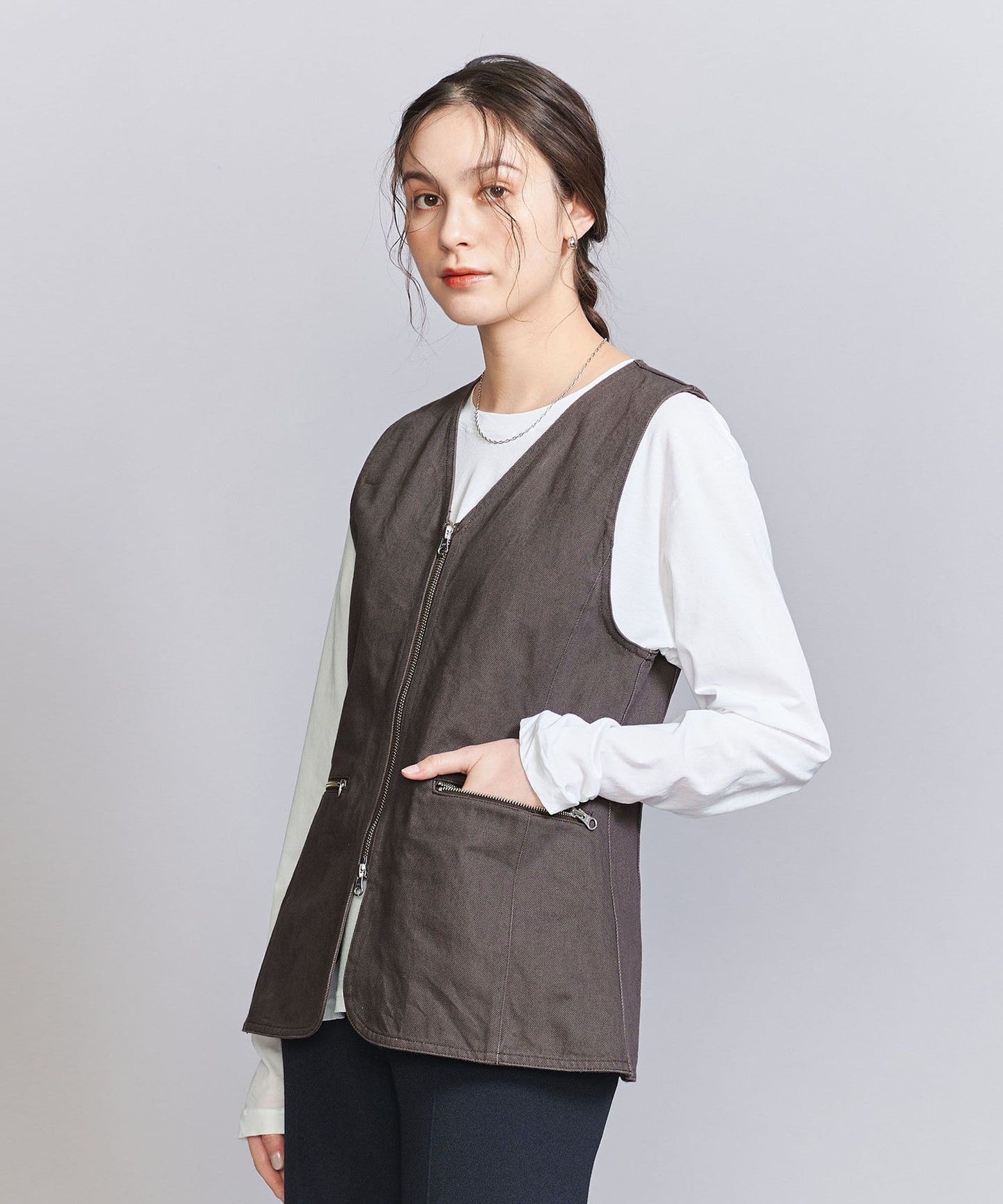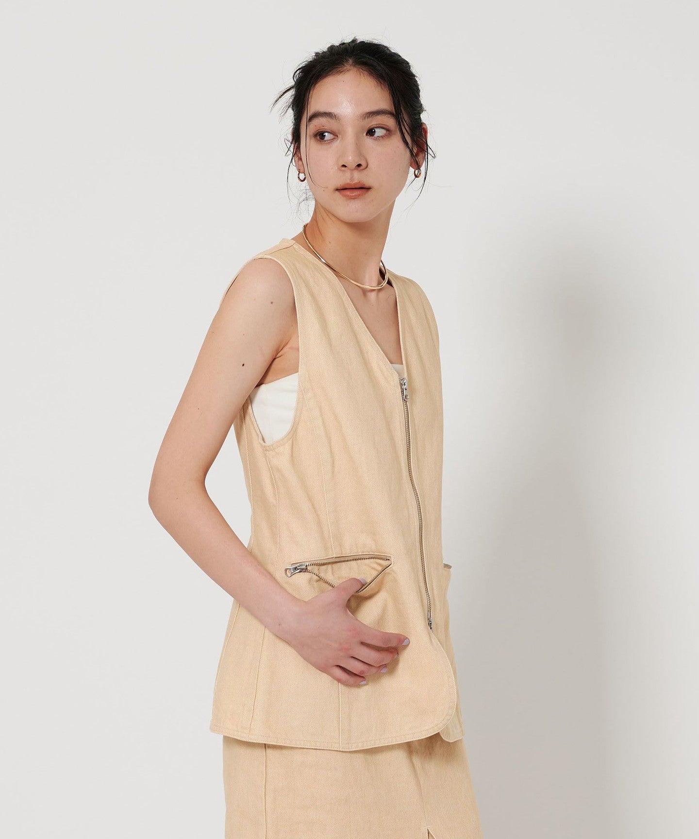 A V-neck vest with a sharp zip detail