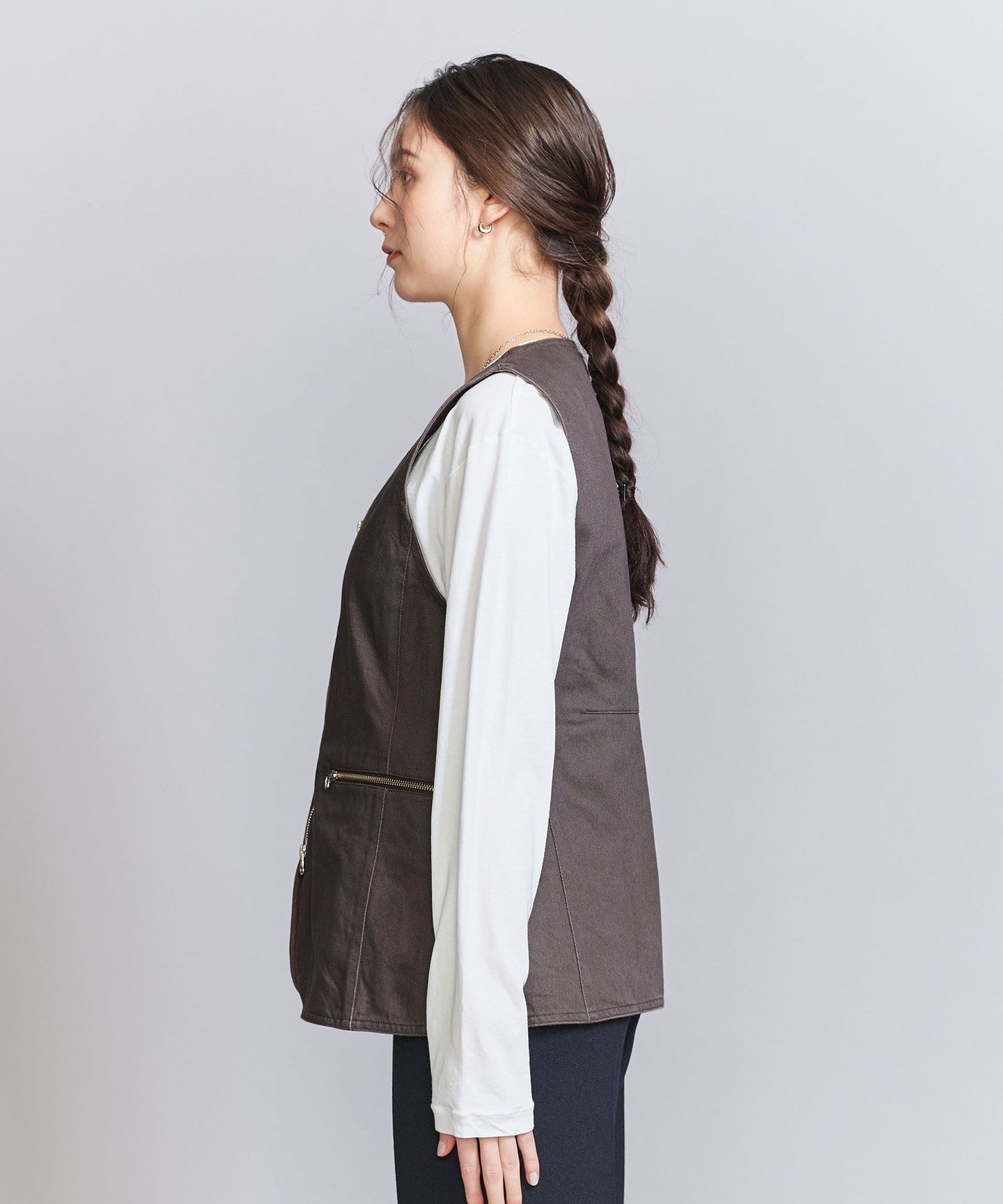 An outerwear-like vest made from thick, sturdy fabric.