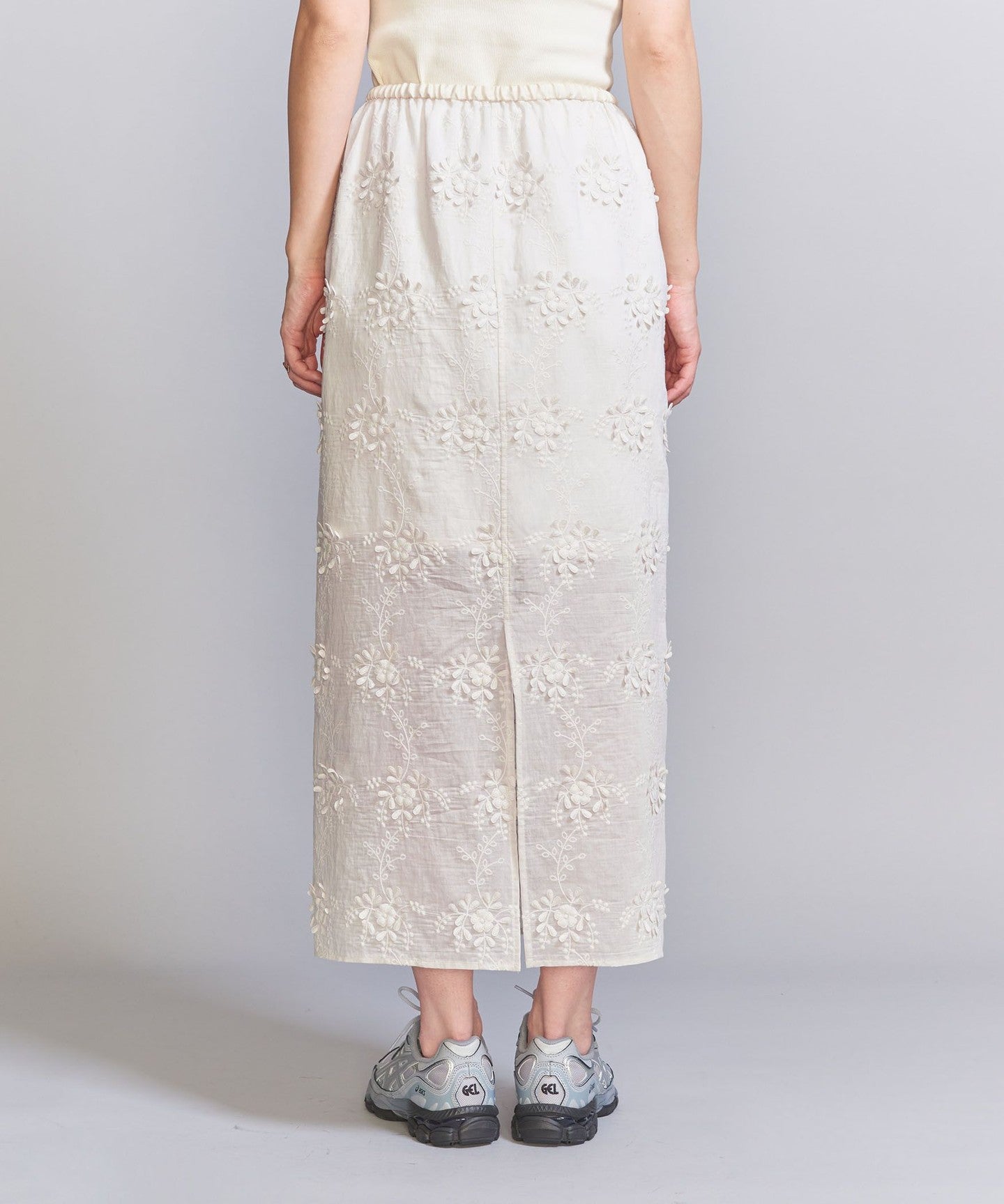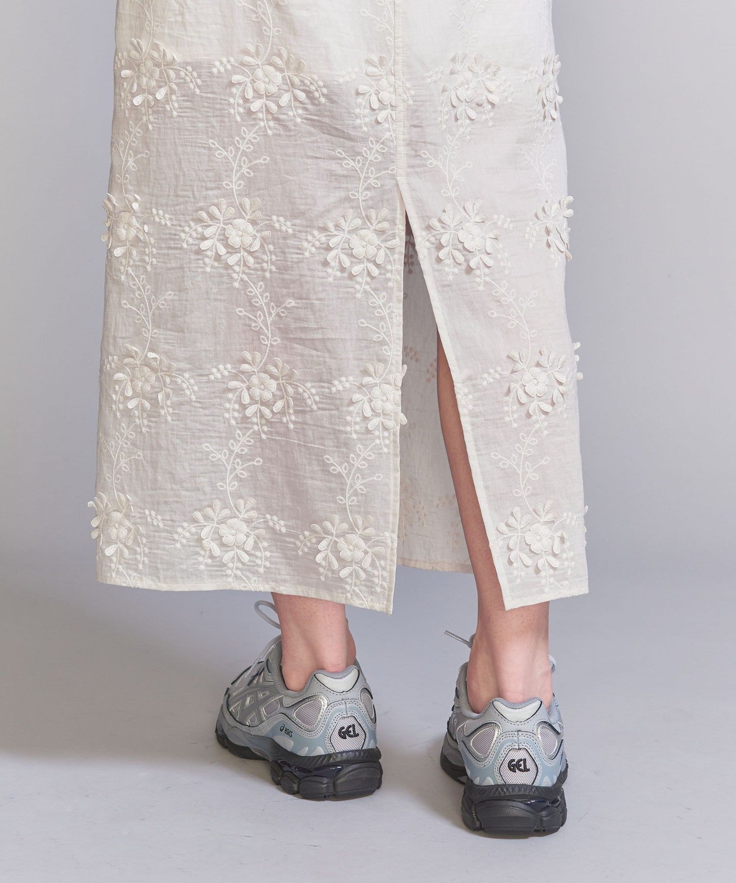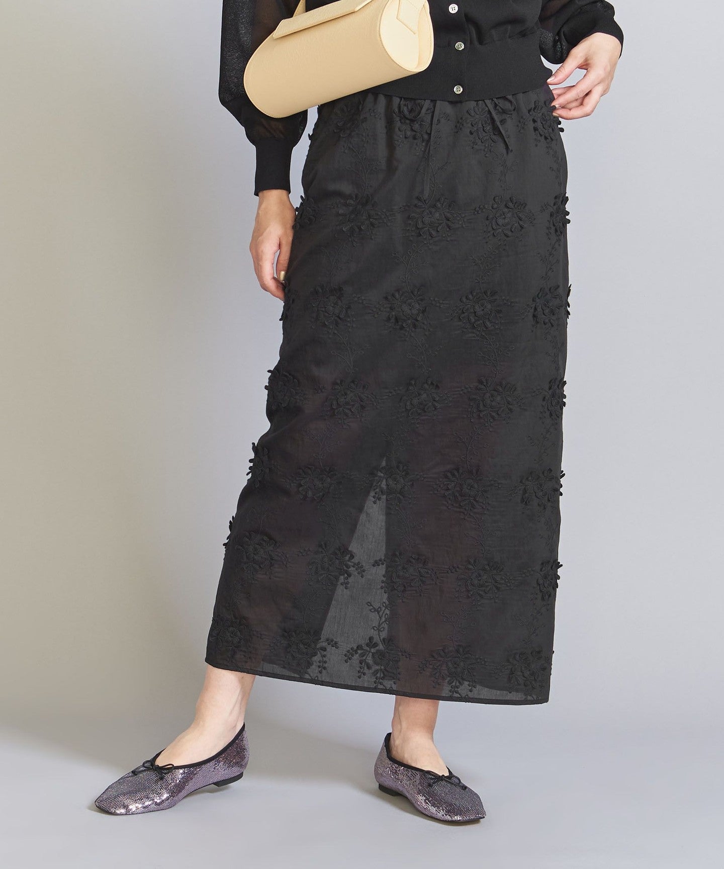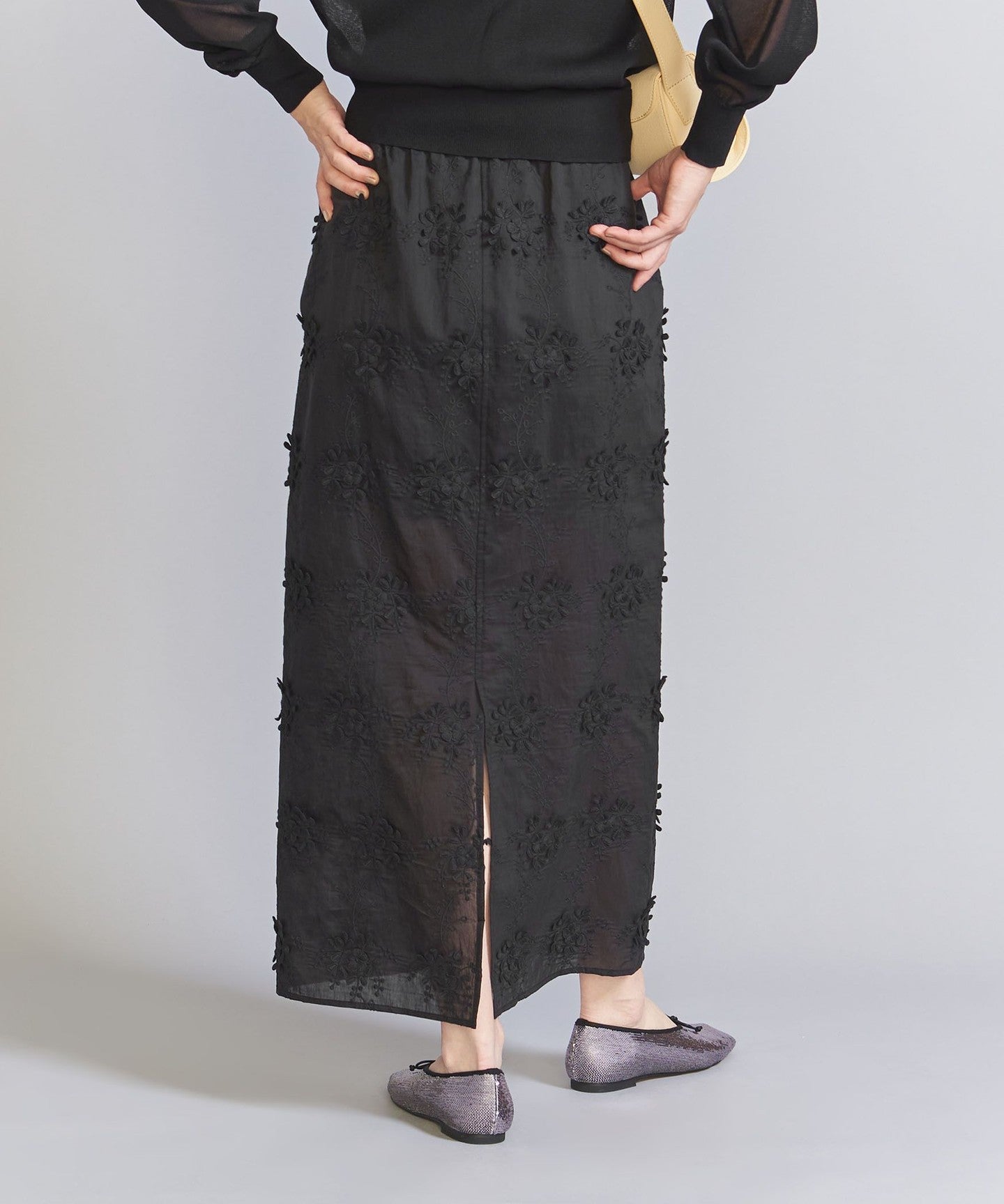 Sheer fabric with three-dimensional embroidery all over SKIRT .