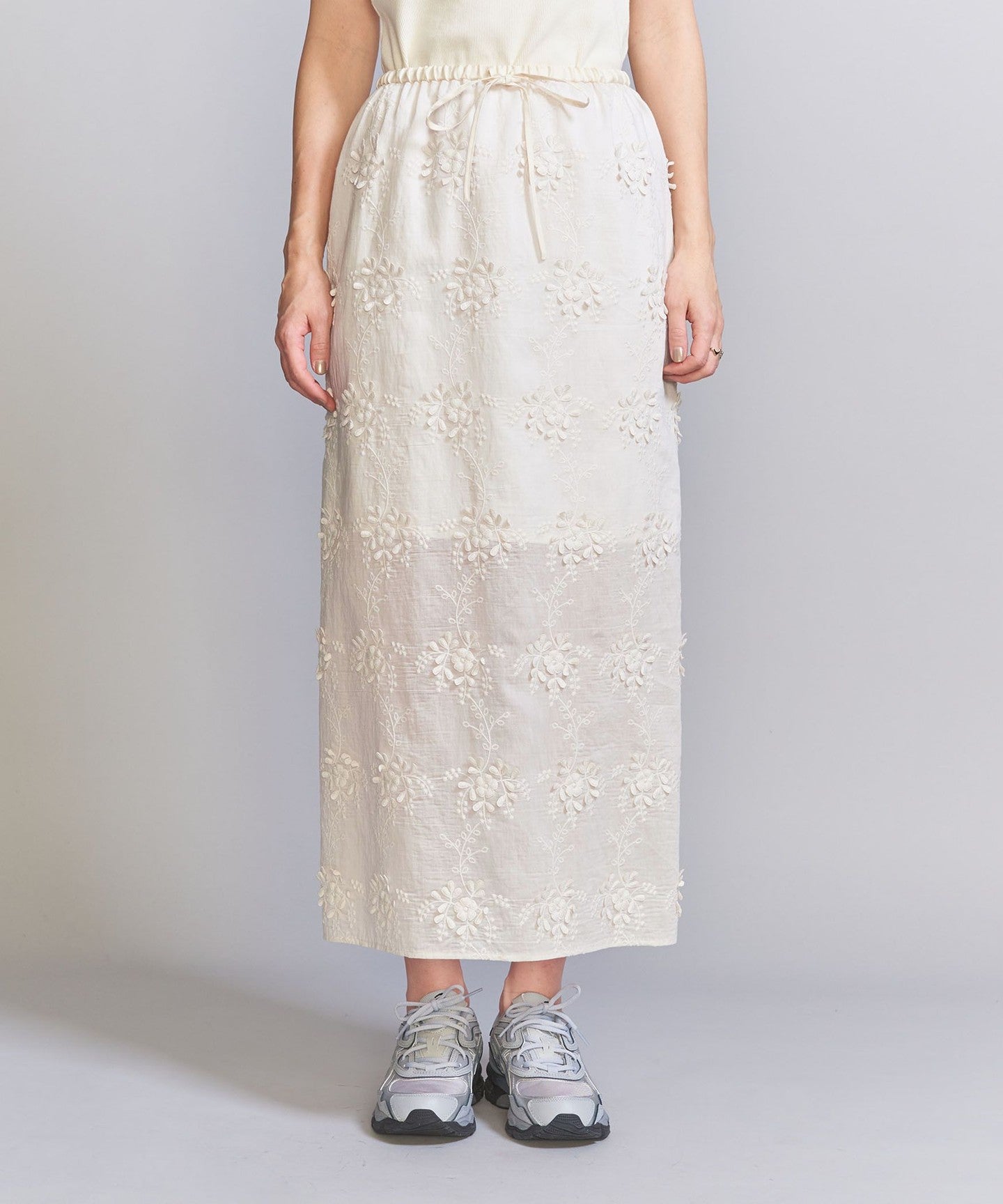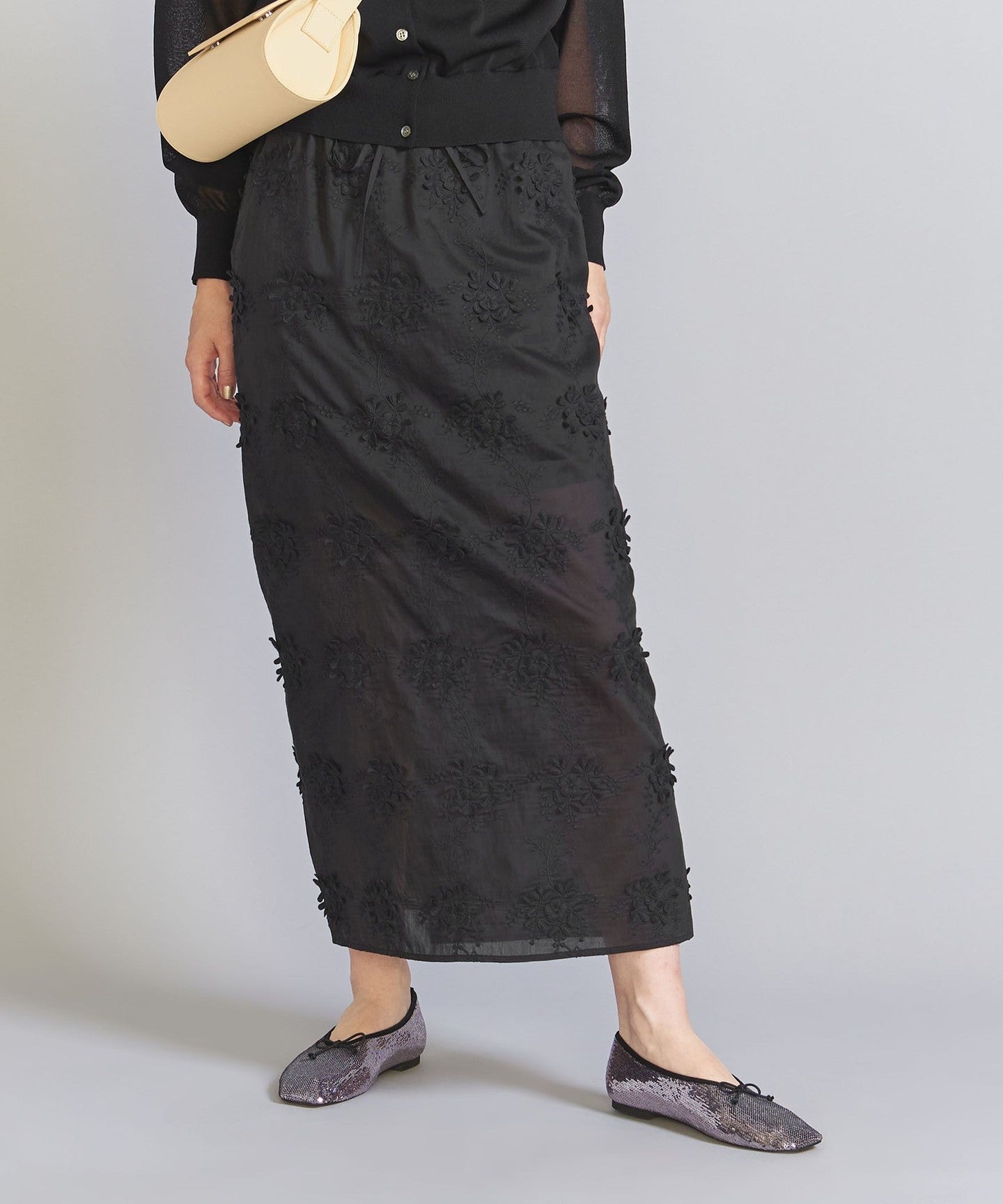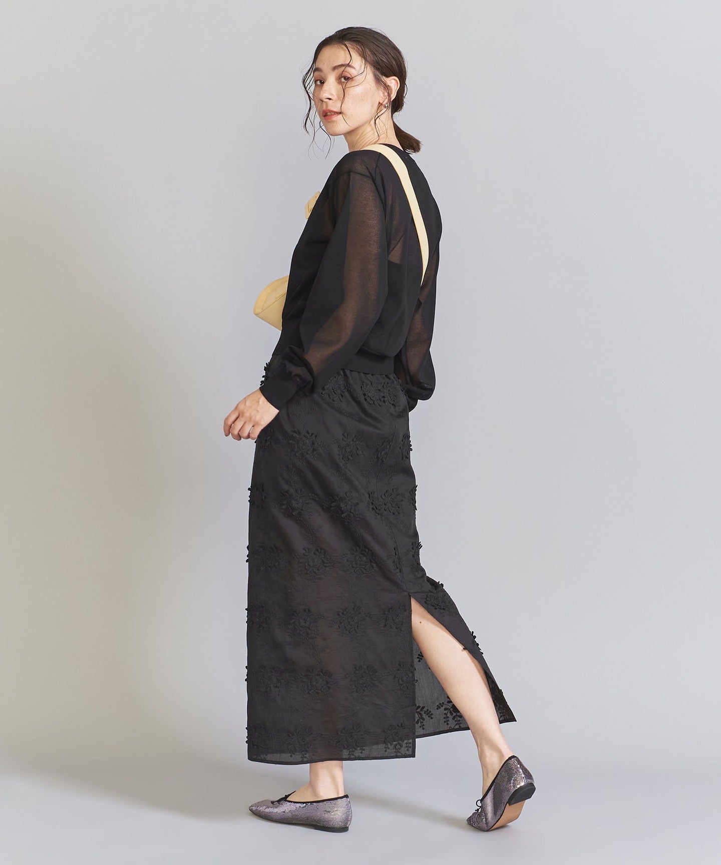 Sheer fabric with three-dimensional embroidery all over SKIRT .