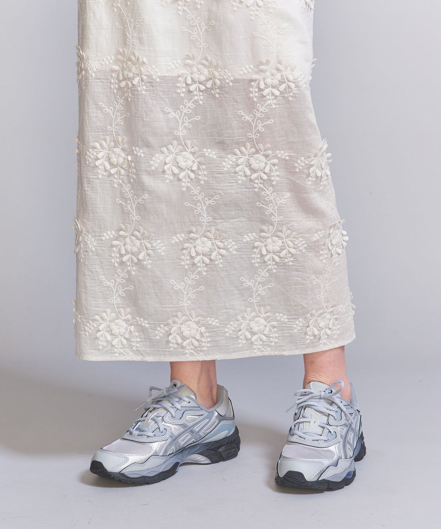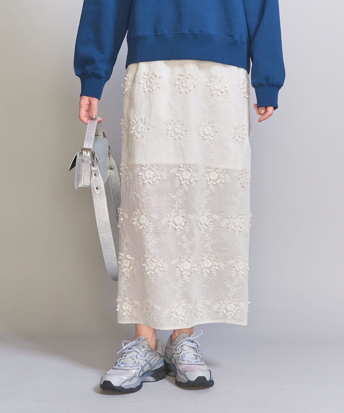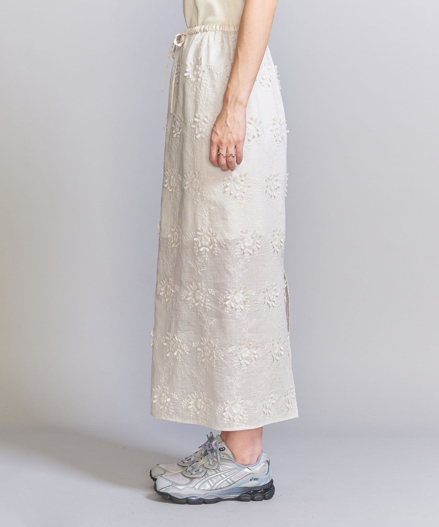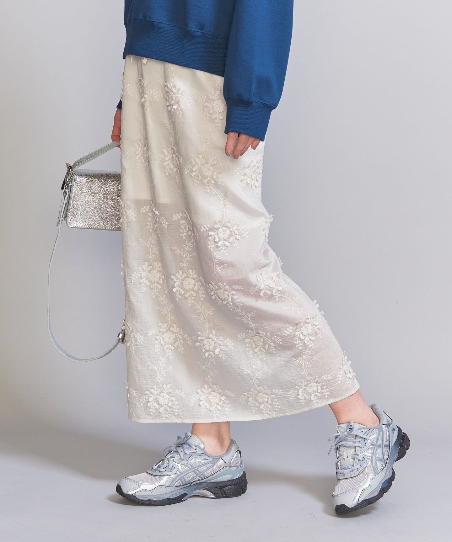 Sheer fabric with three-dimensional embroidery all over SKIRT .