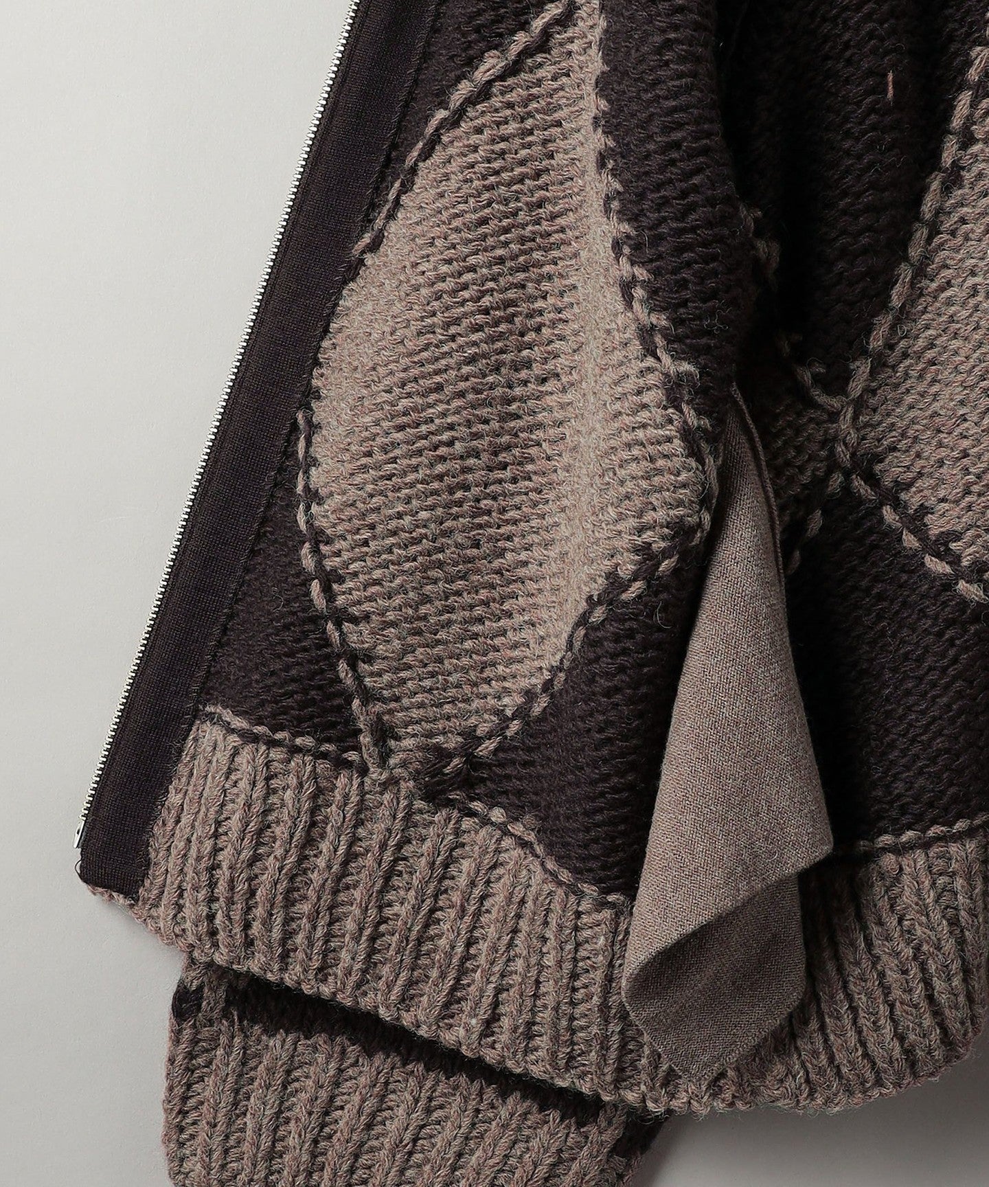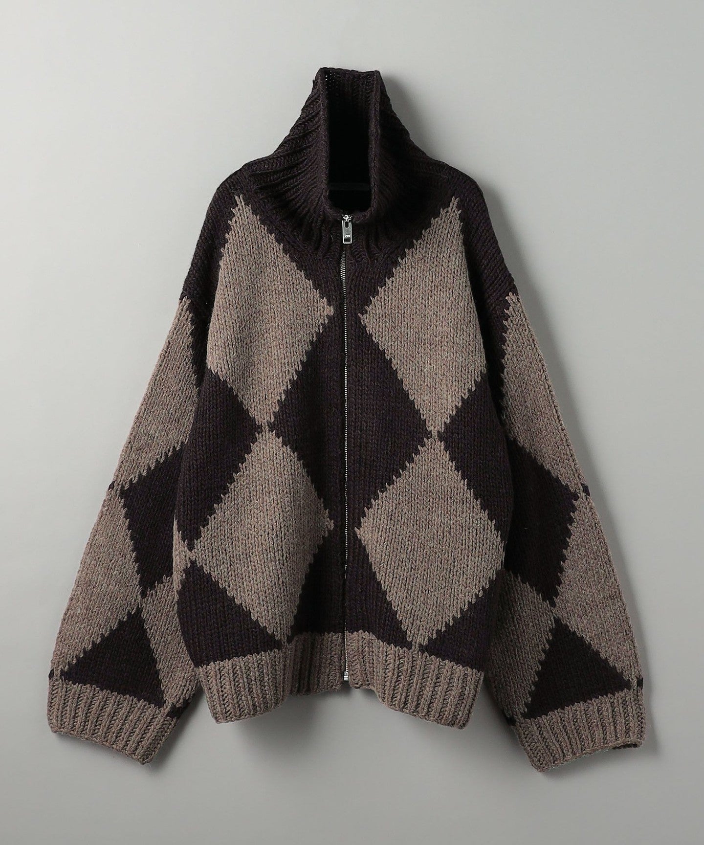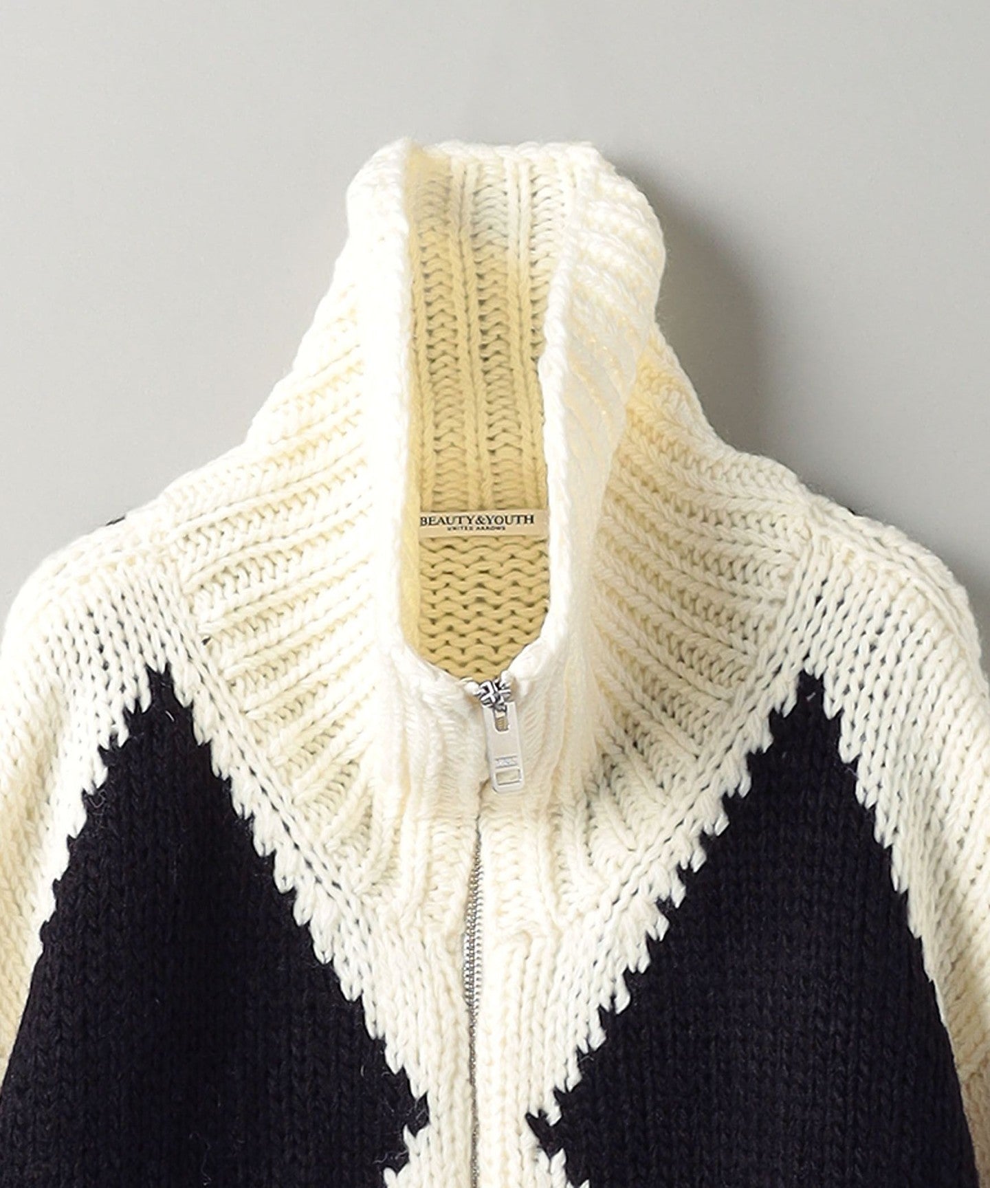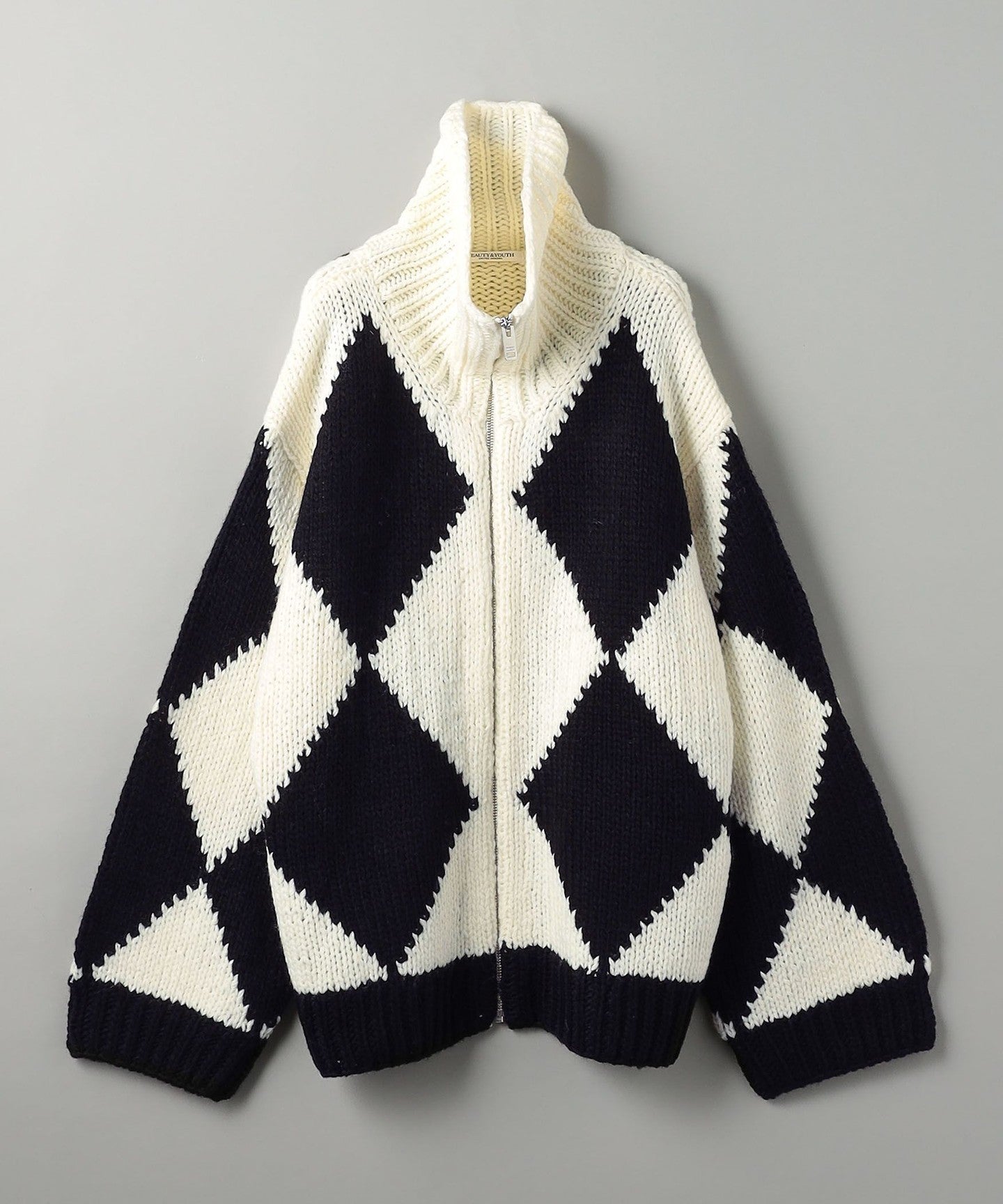 OUTER GARMENTA striking diamond pattern zipper CARDIGAN .
