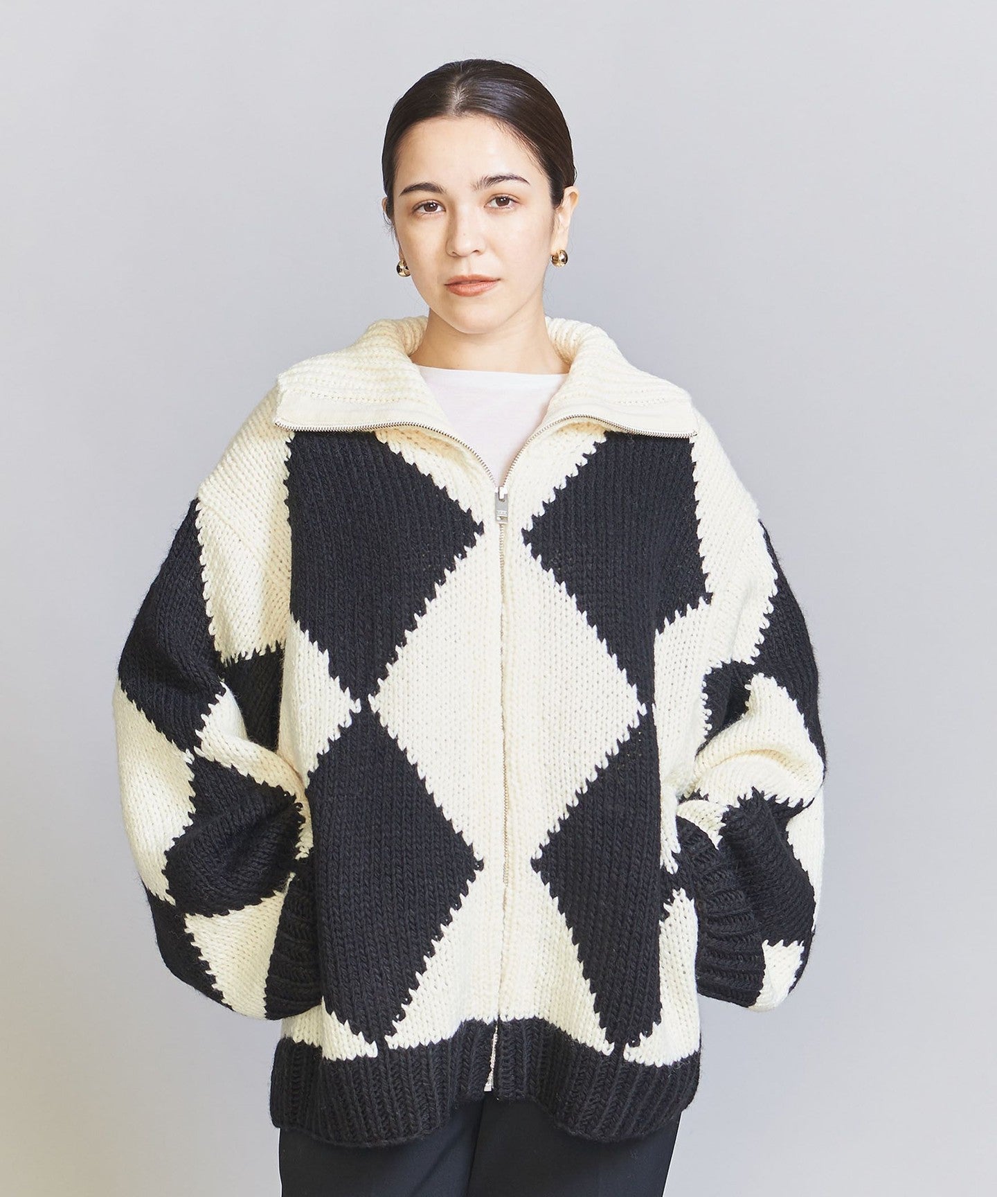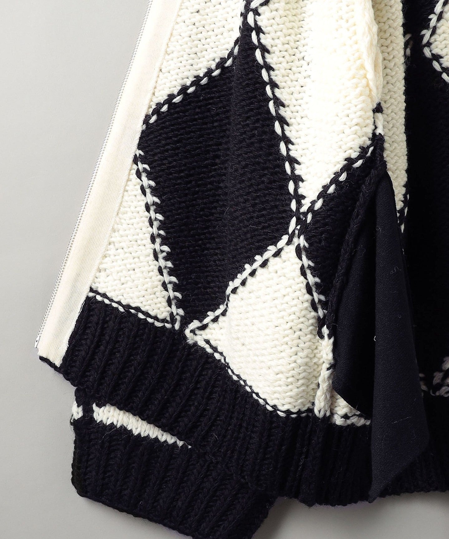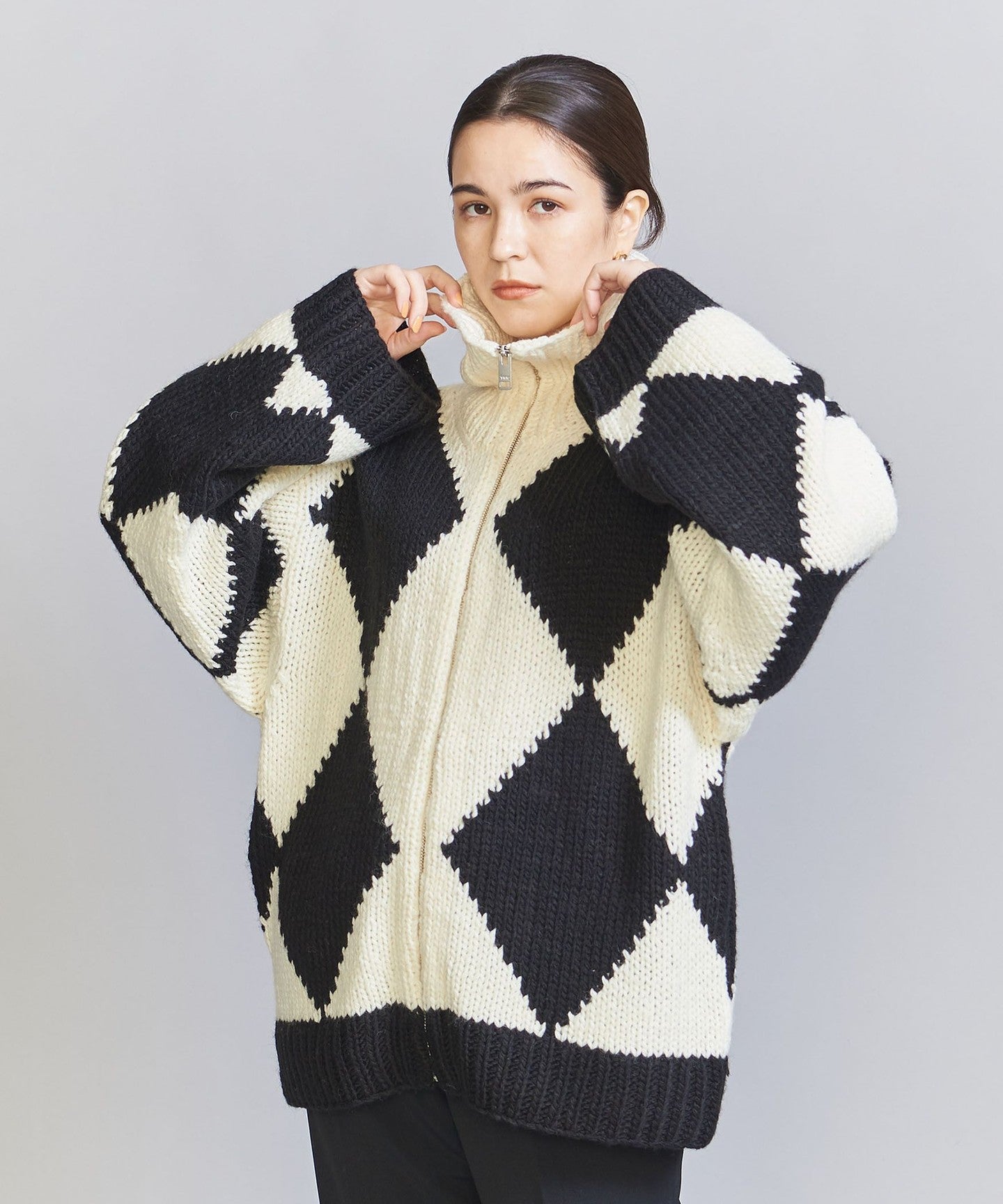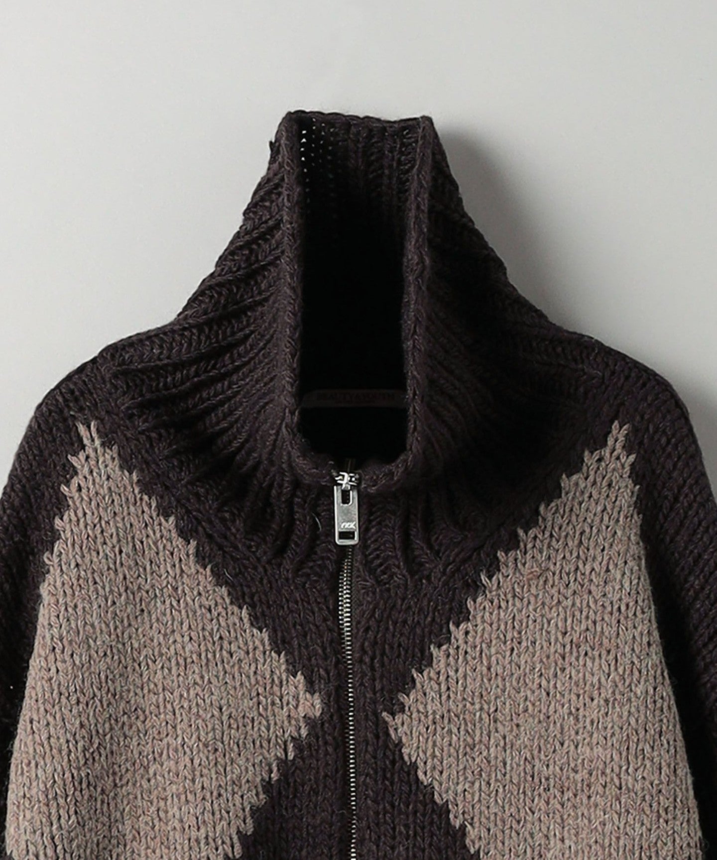 OUTER GARMENTA striking diamond pattern zipper CARDIGAN .