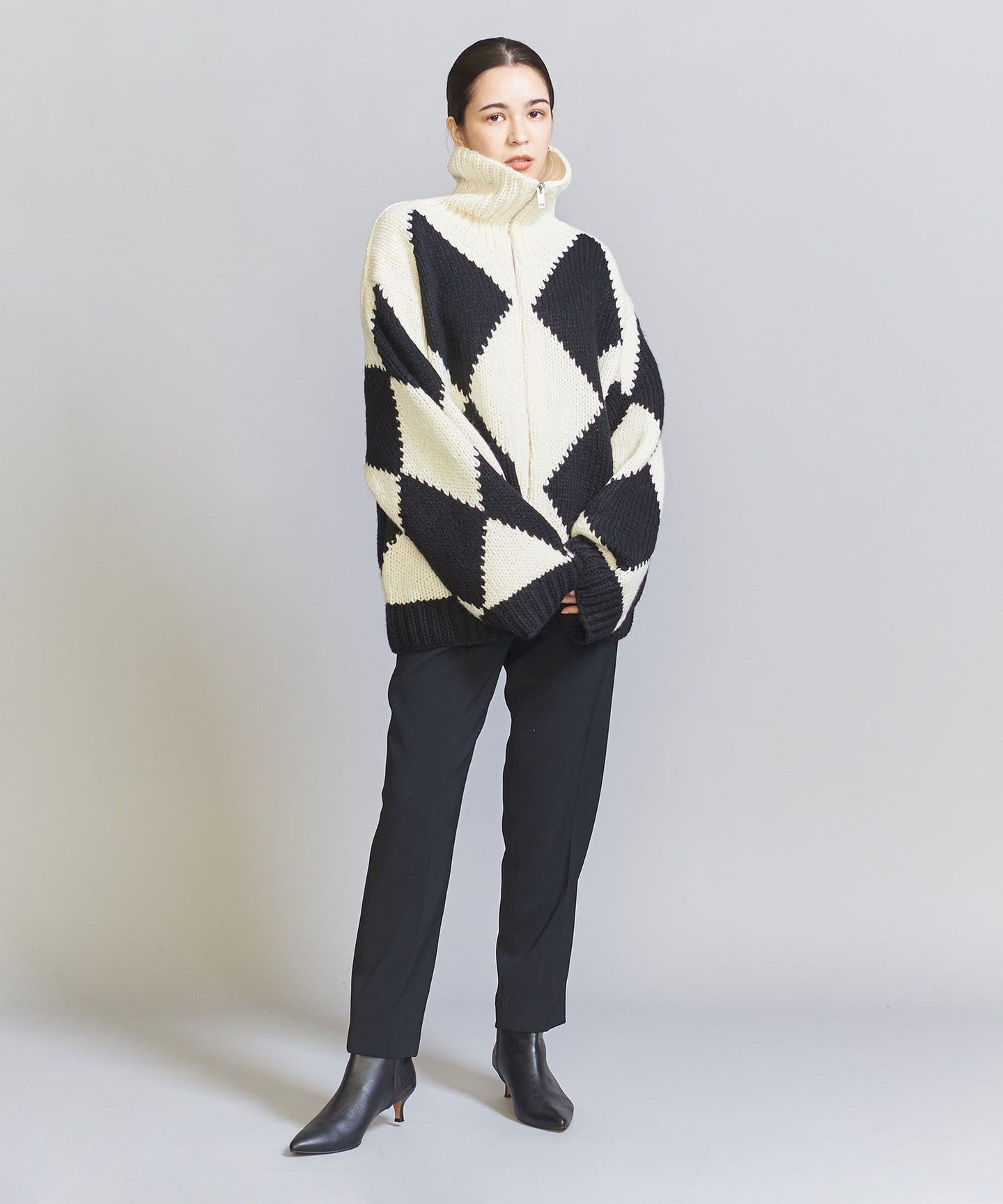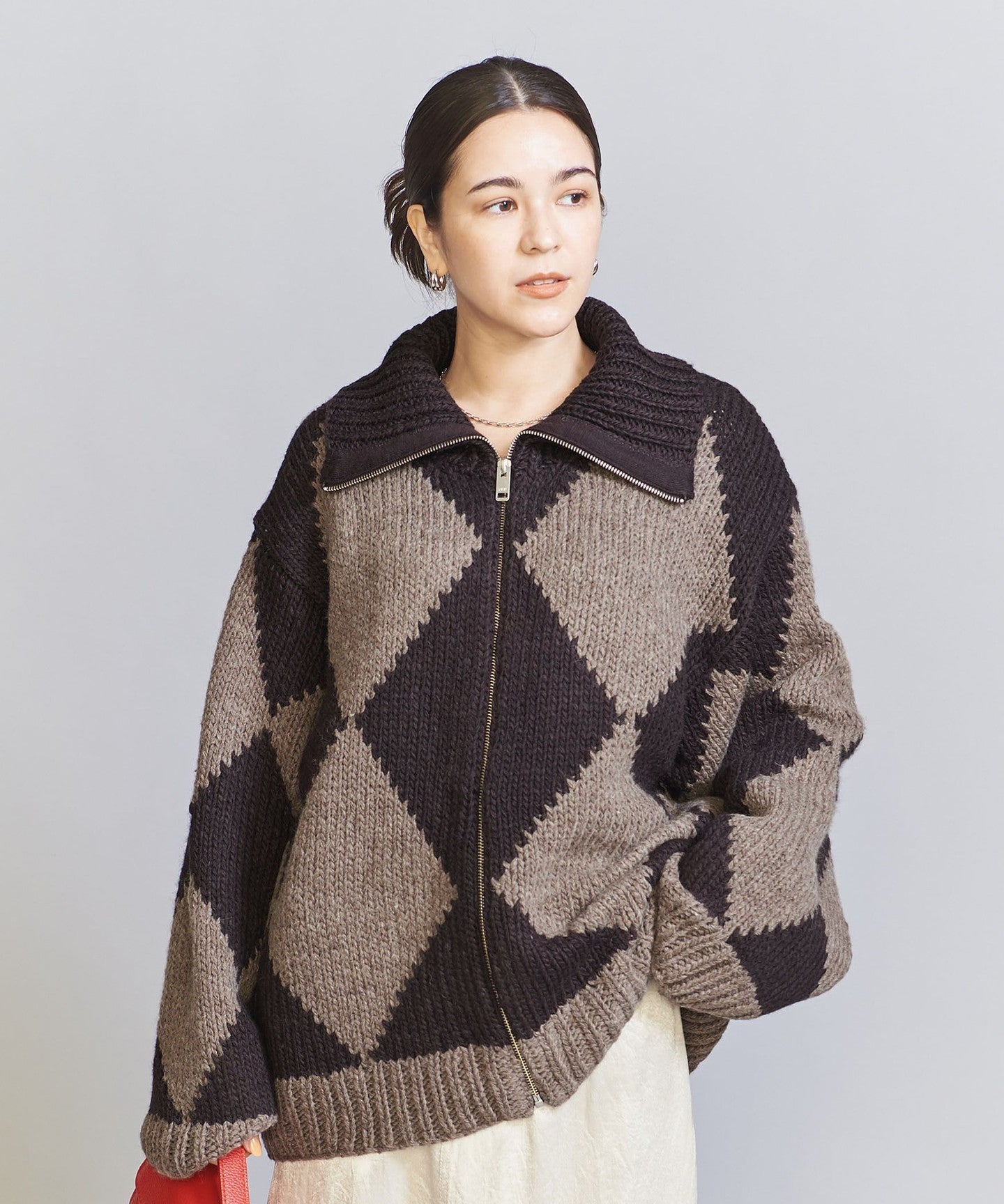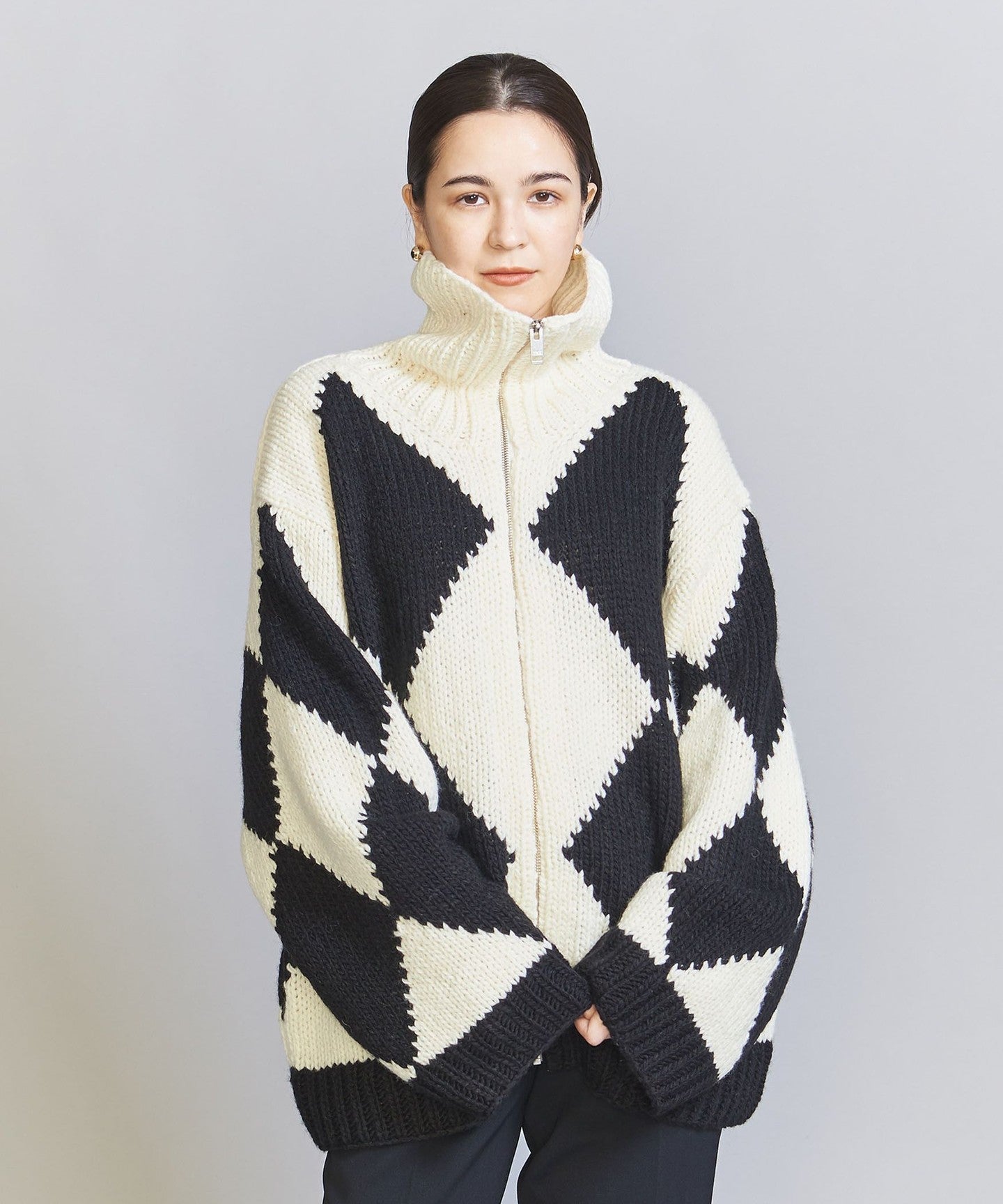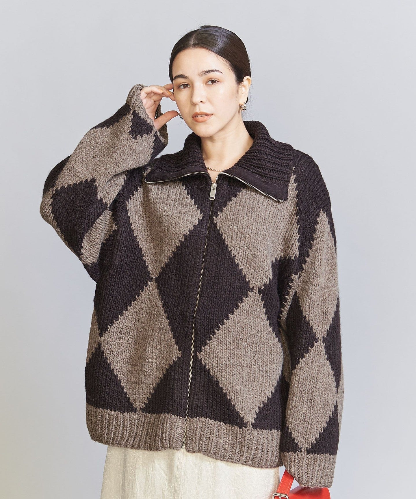 OUTER GARMENTA striking diamond pattern zipper CARDIGAN .