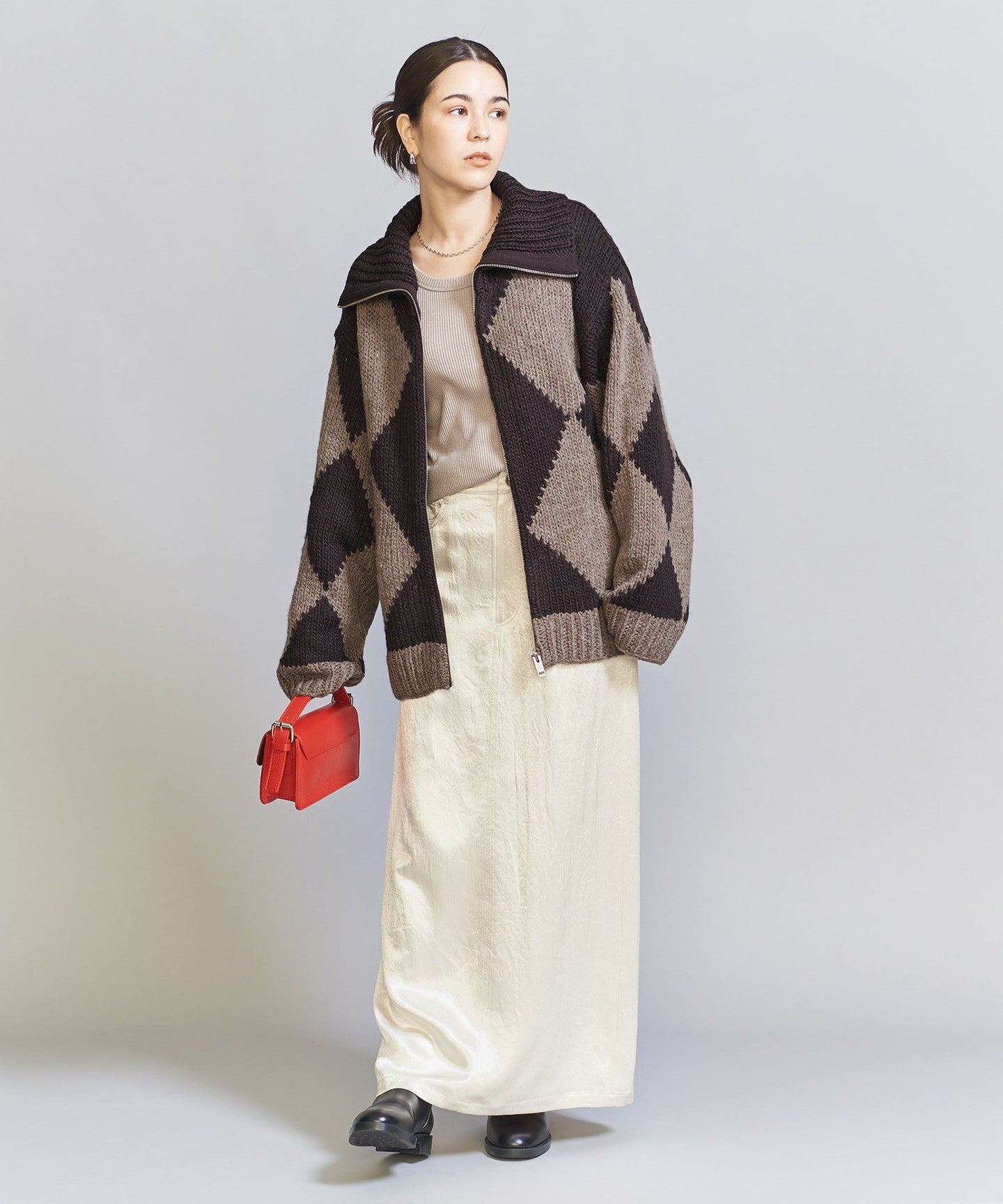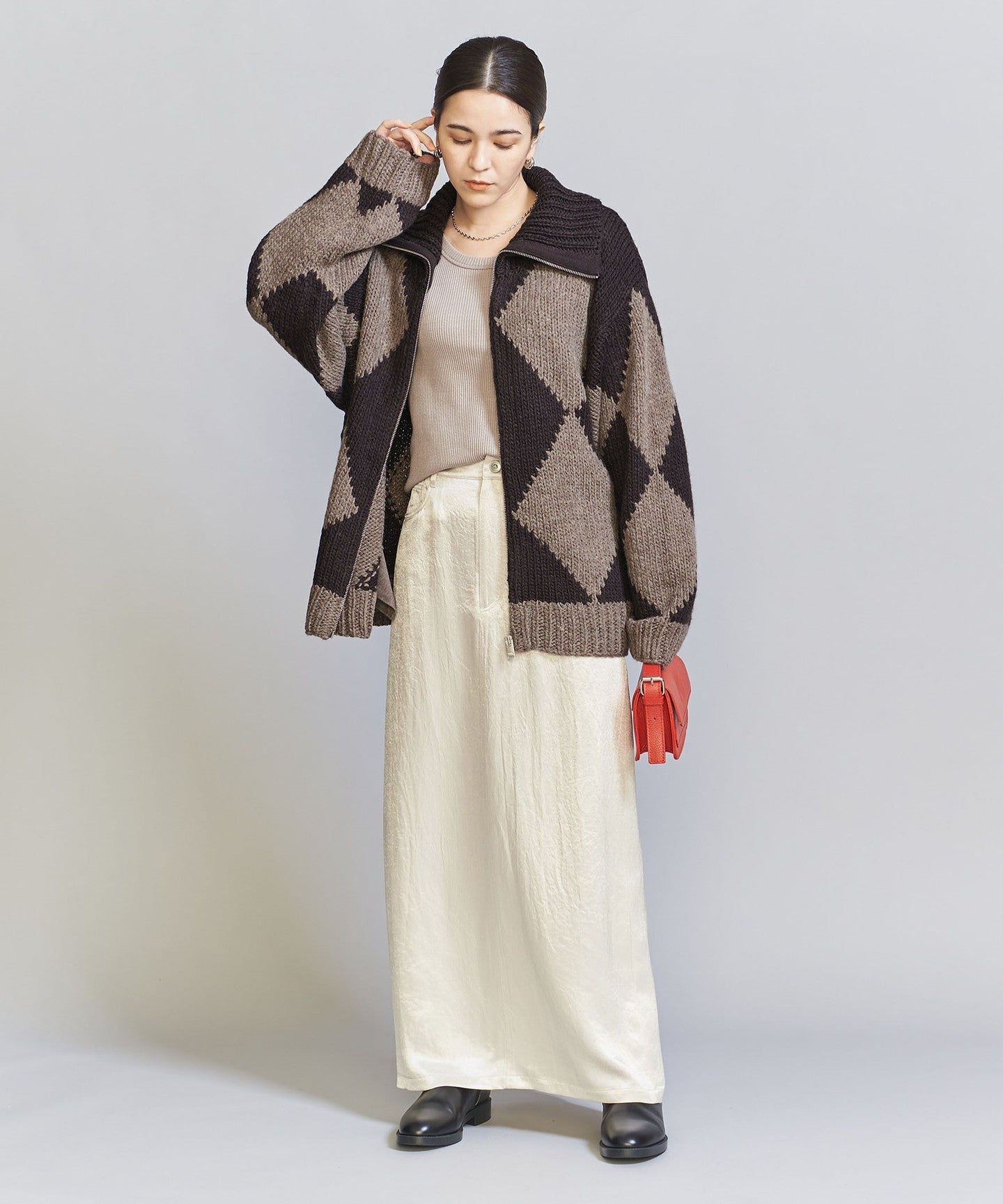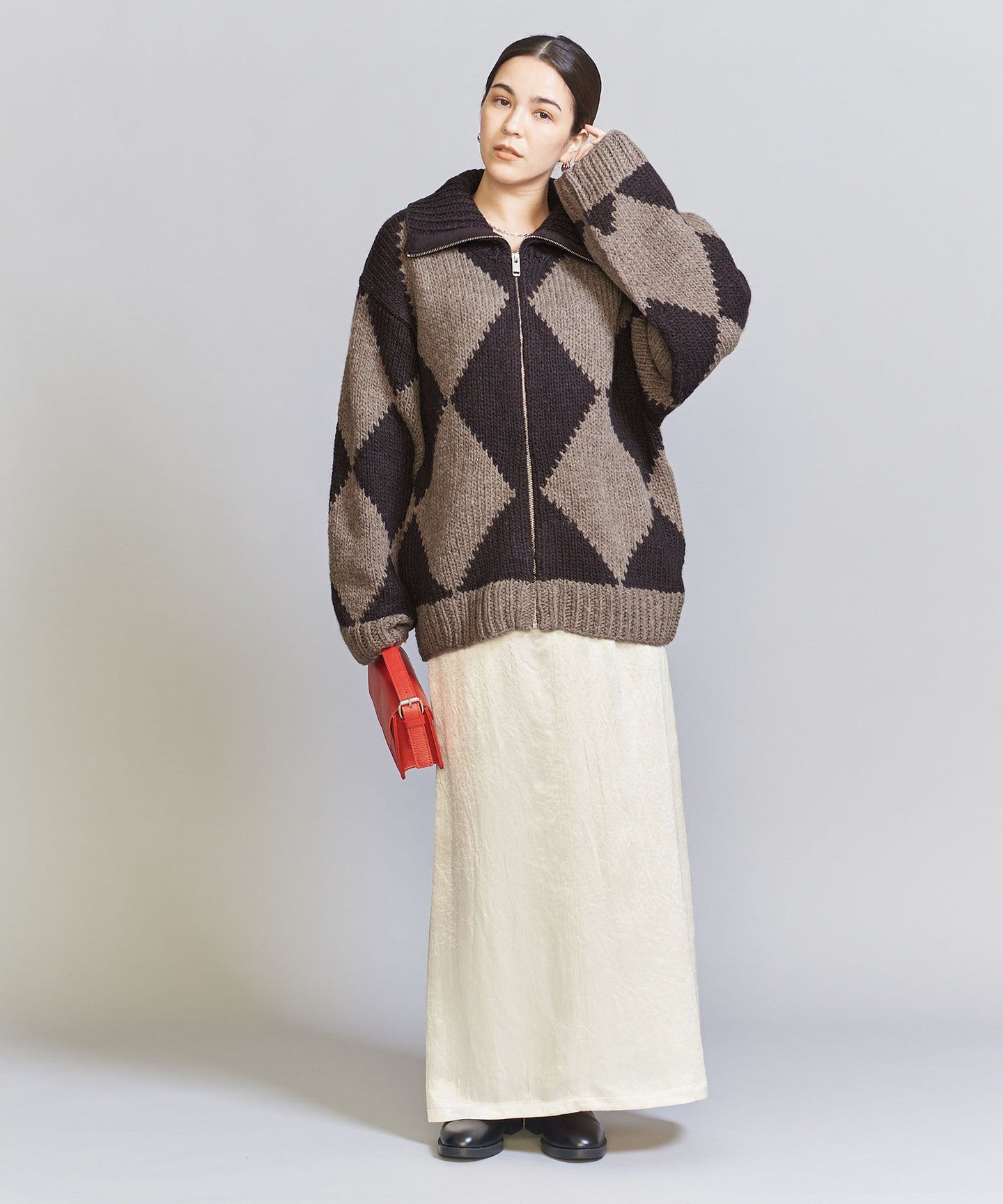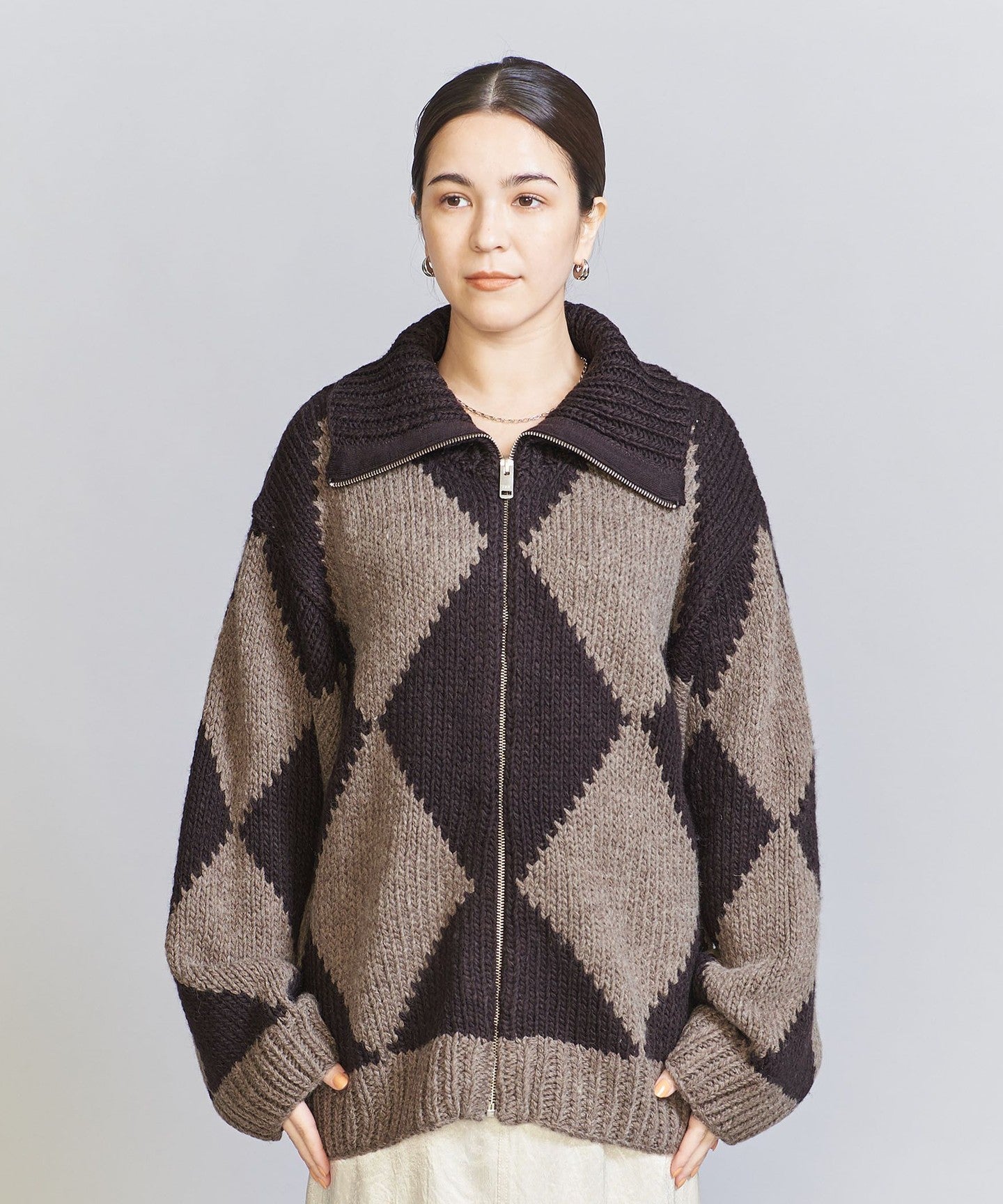 OUTER GARMENTA striking diamond pattern zipper CARDIGAN .