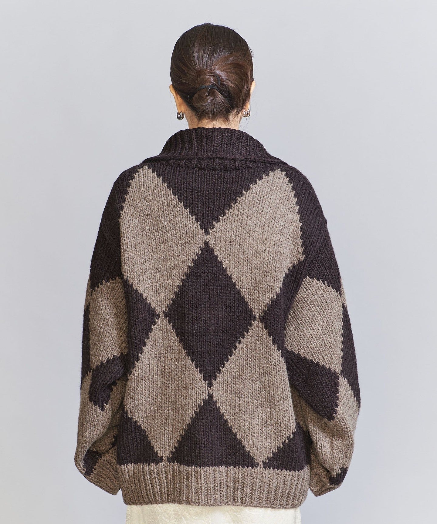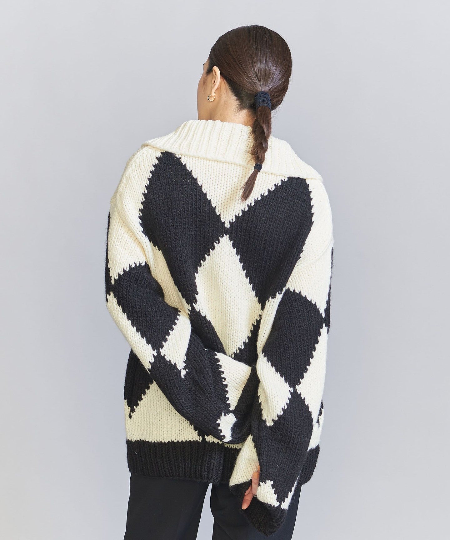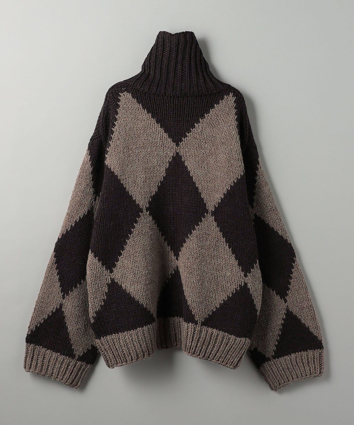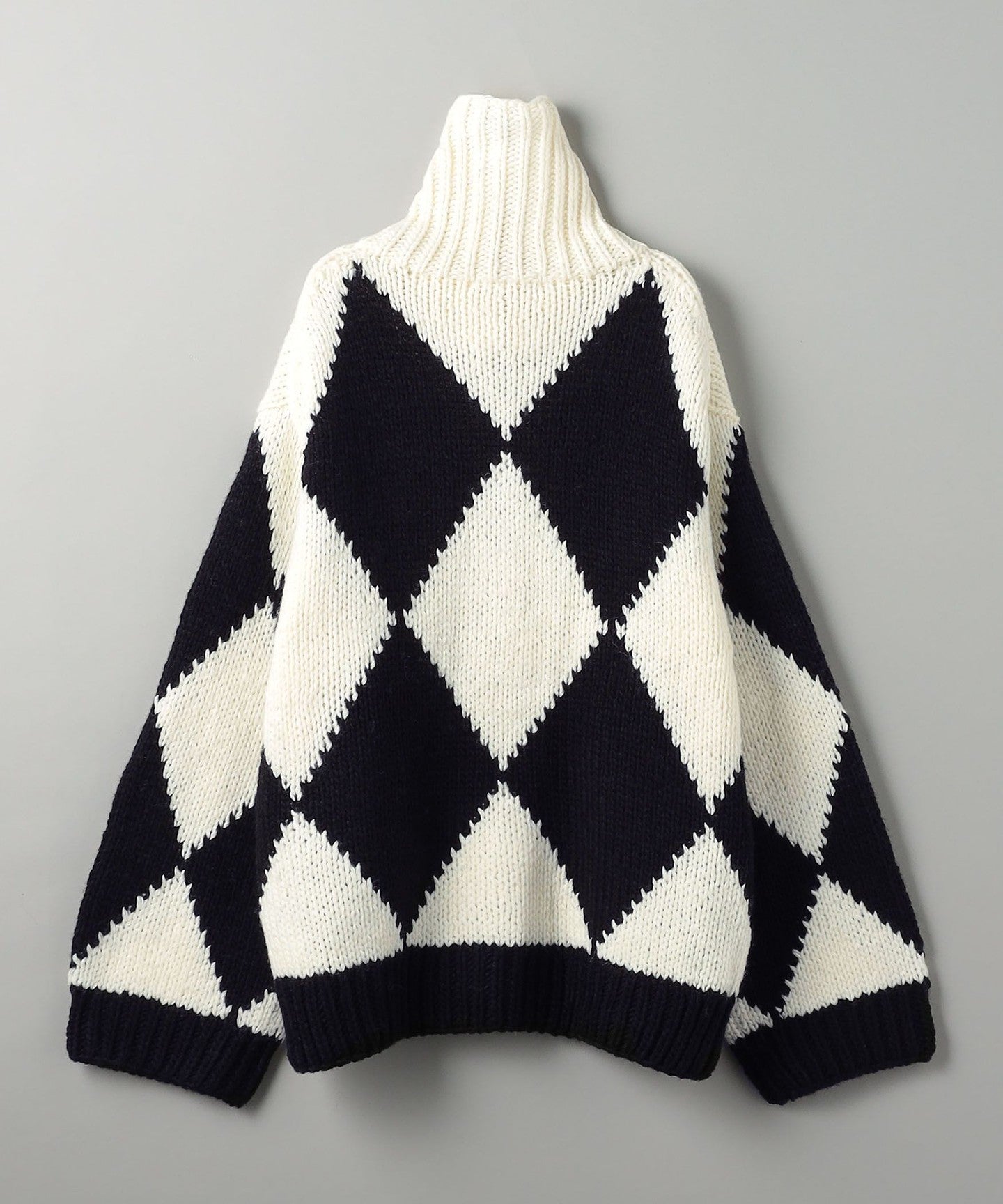 LARGEIt features a striking patterned knit with a large diamond pattern.