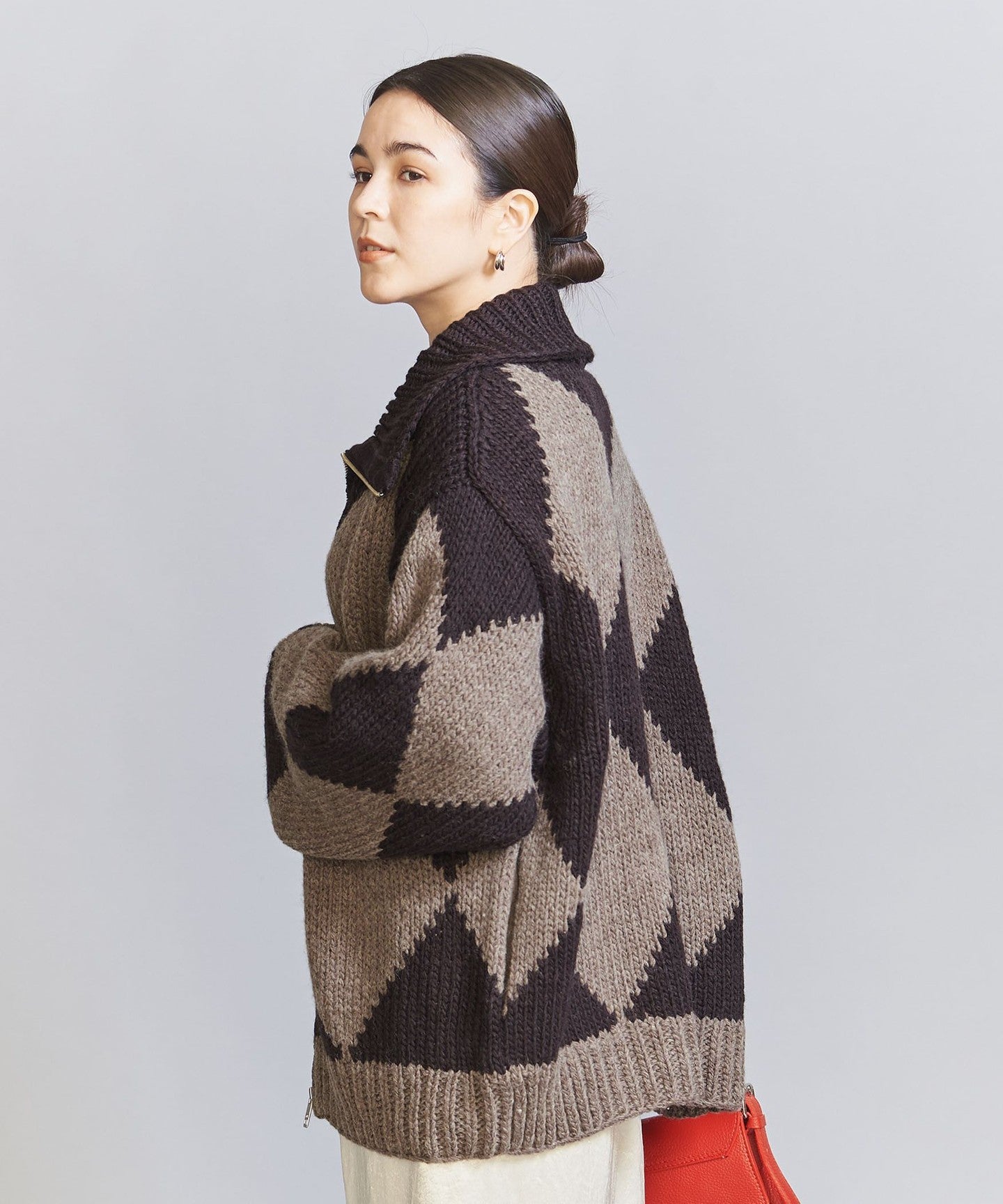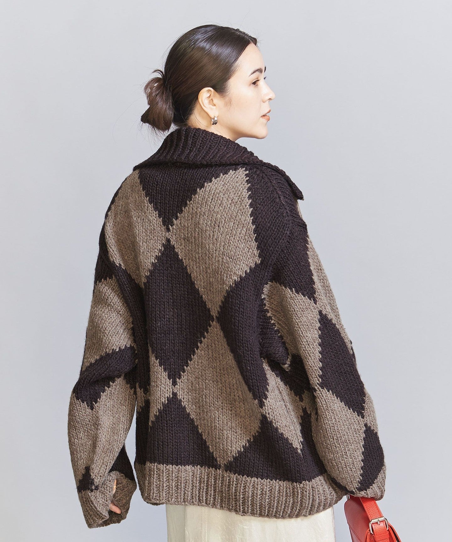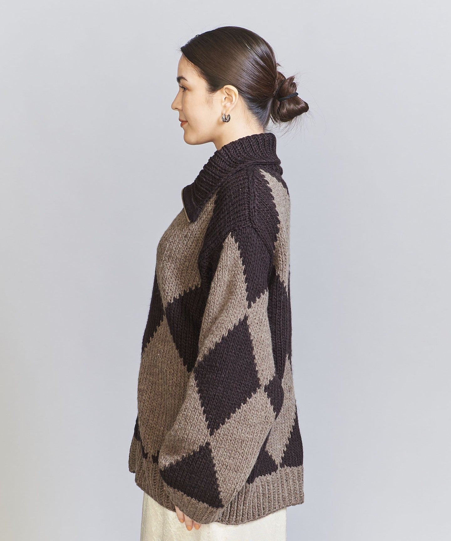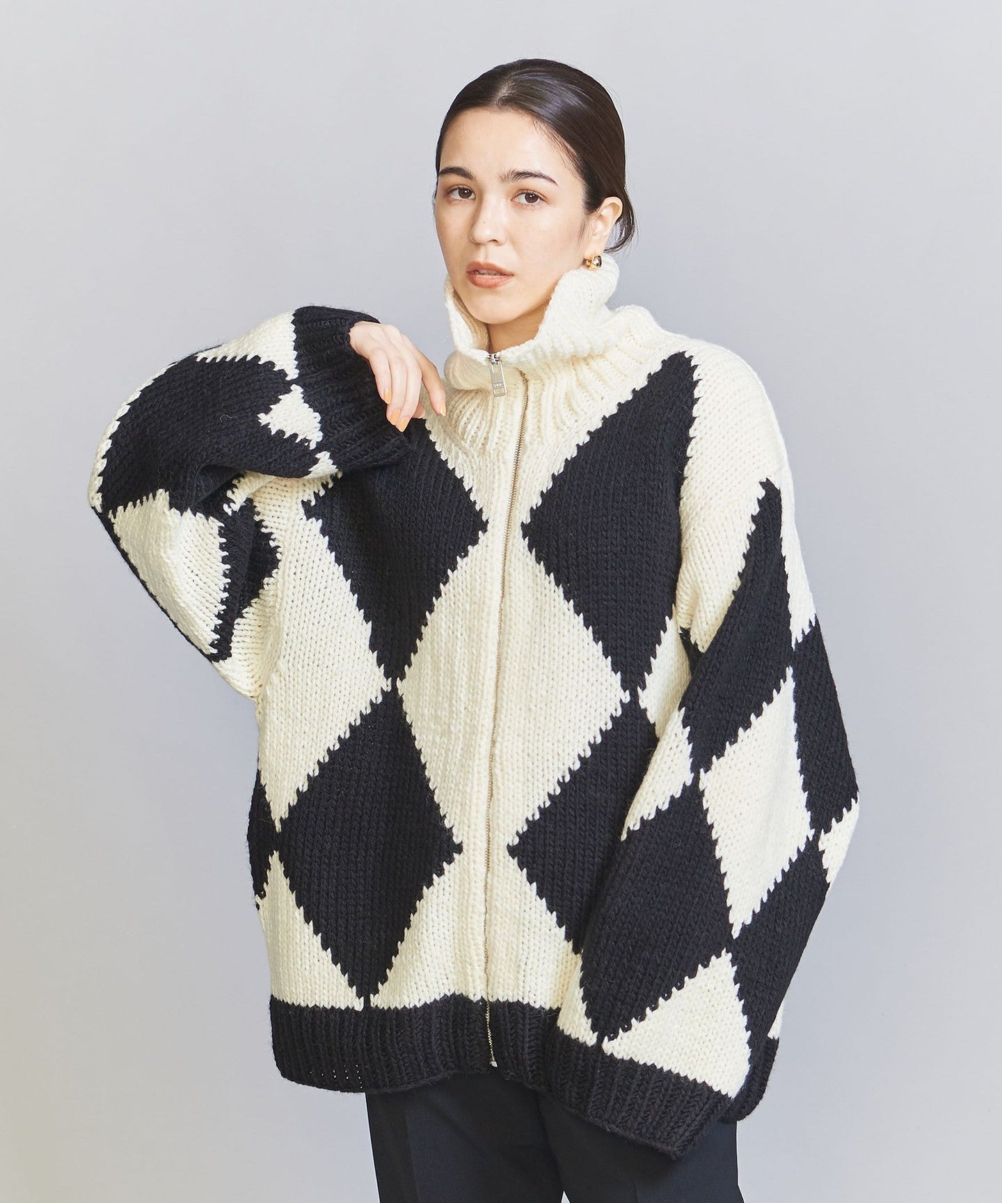 LARGEIt features a striking patterned knit with a large diamond pattern.