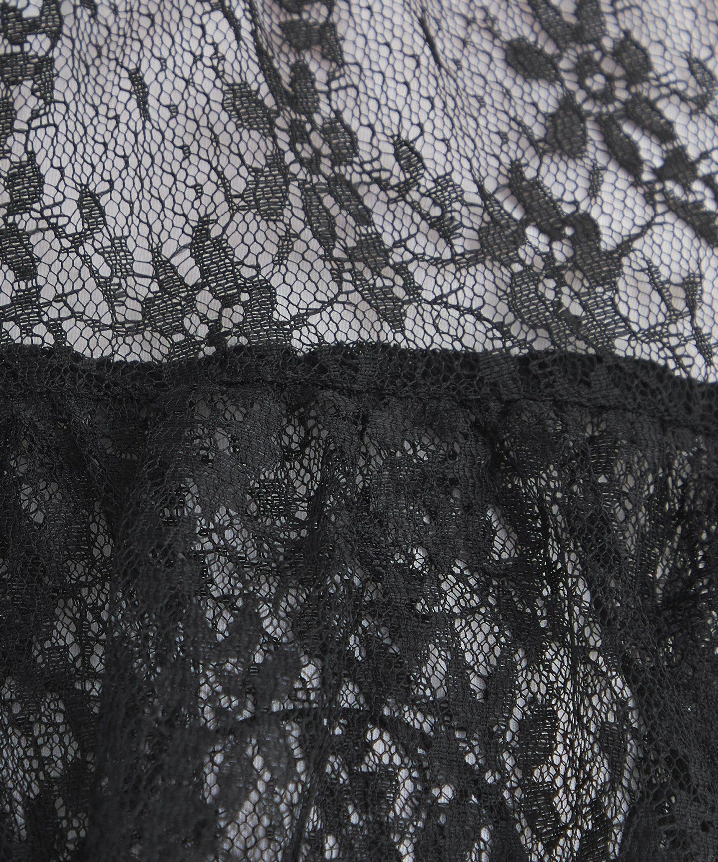Sheer lace fabric with small floral print.