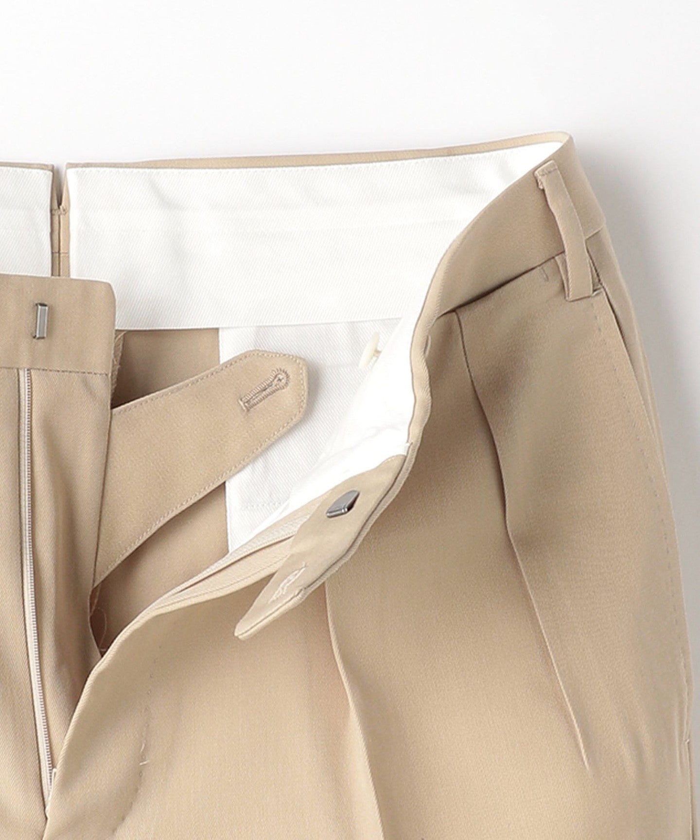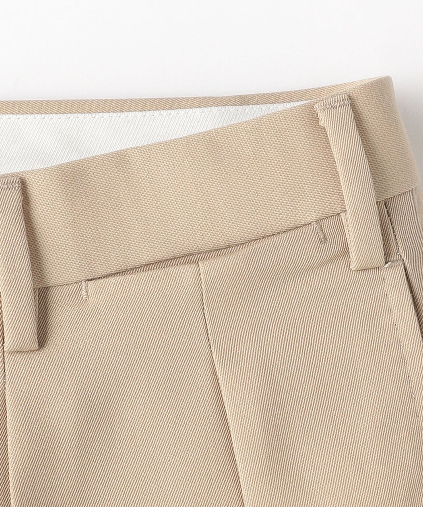 It features a silhouette with a gentle two-pleat design around the waist and a gentle line below the knee.