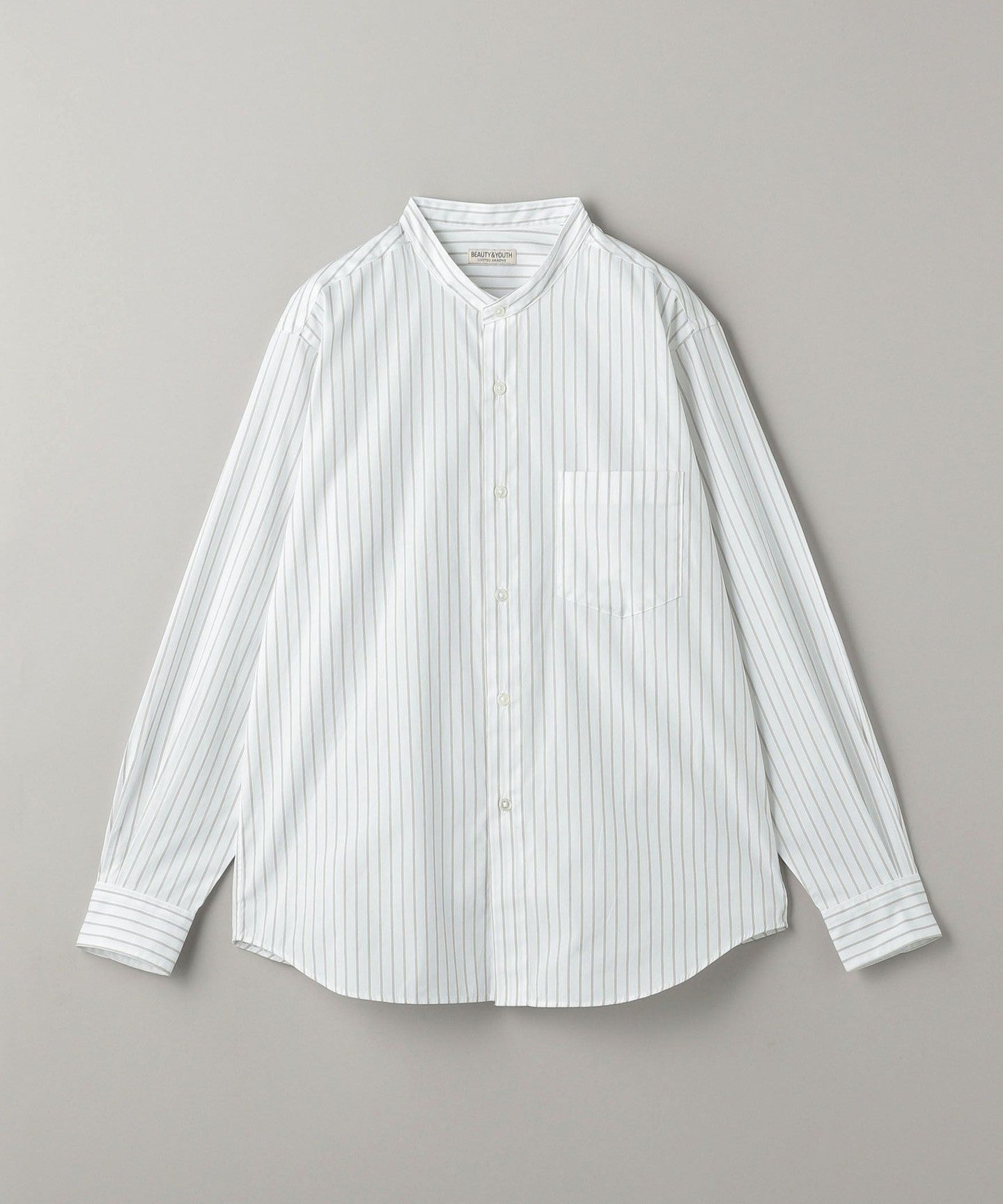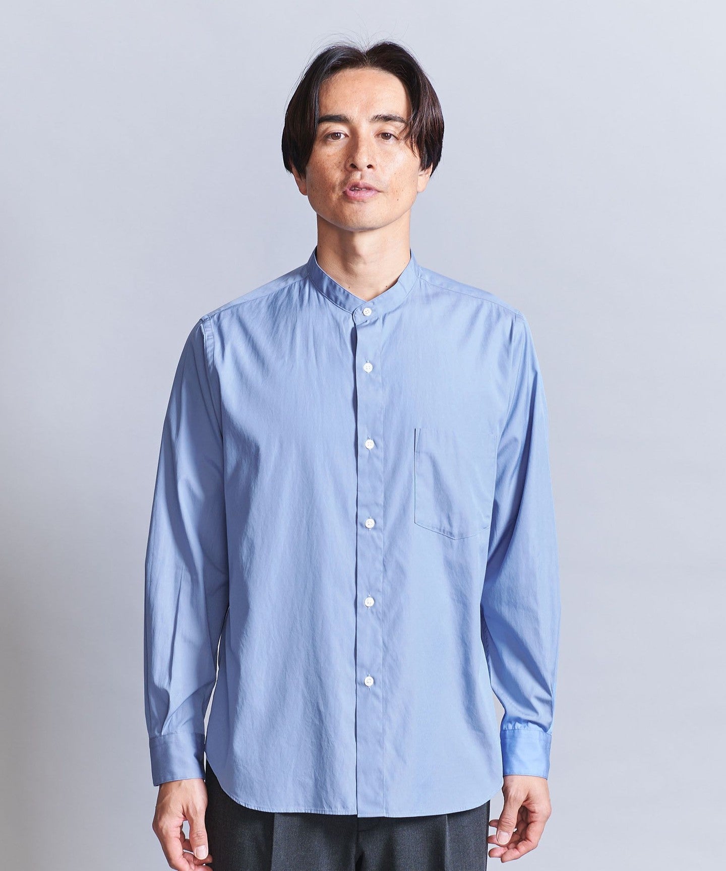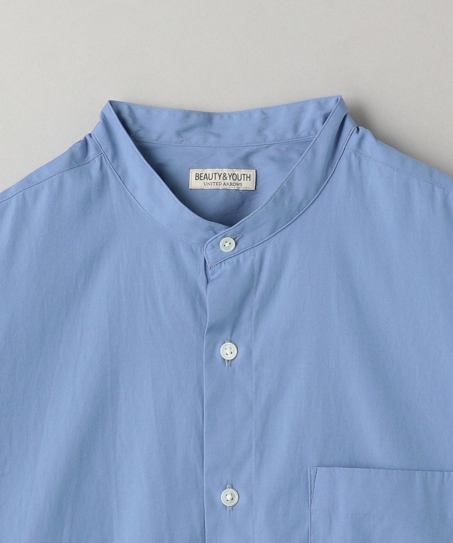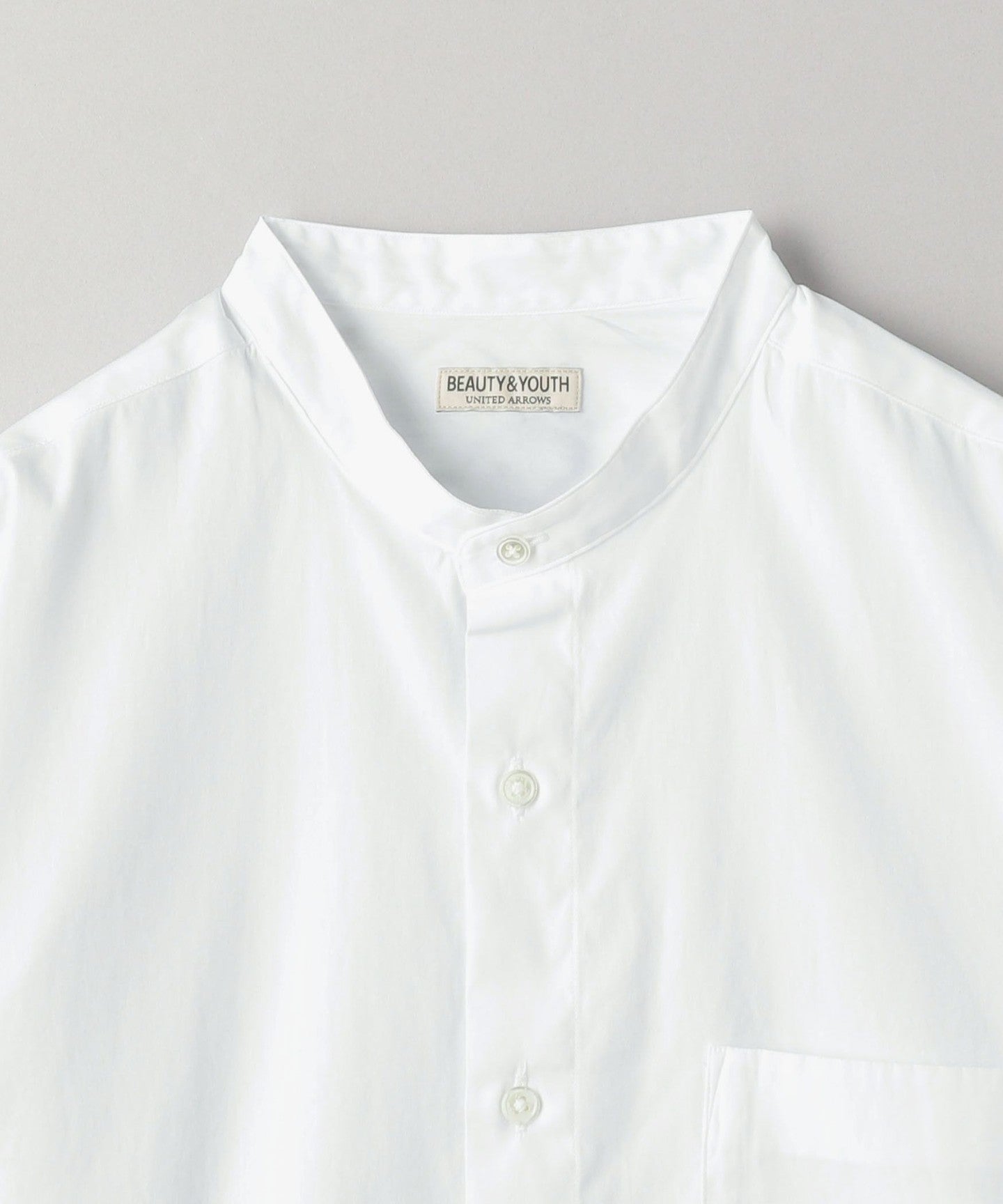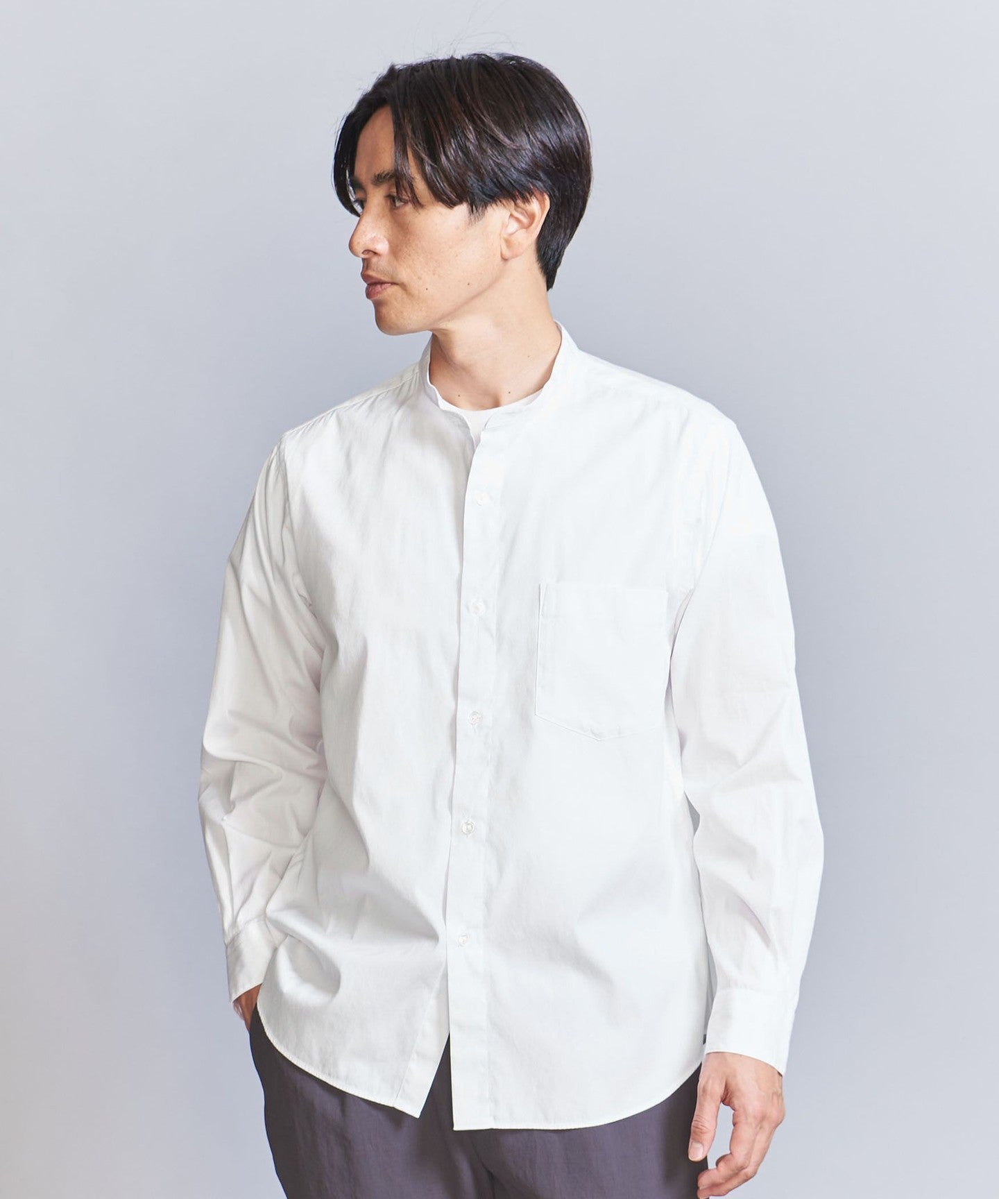 A standard broadcloth band collar shirt that can be worn both on and off the job.