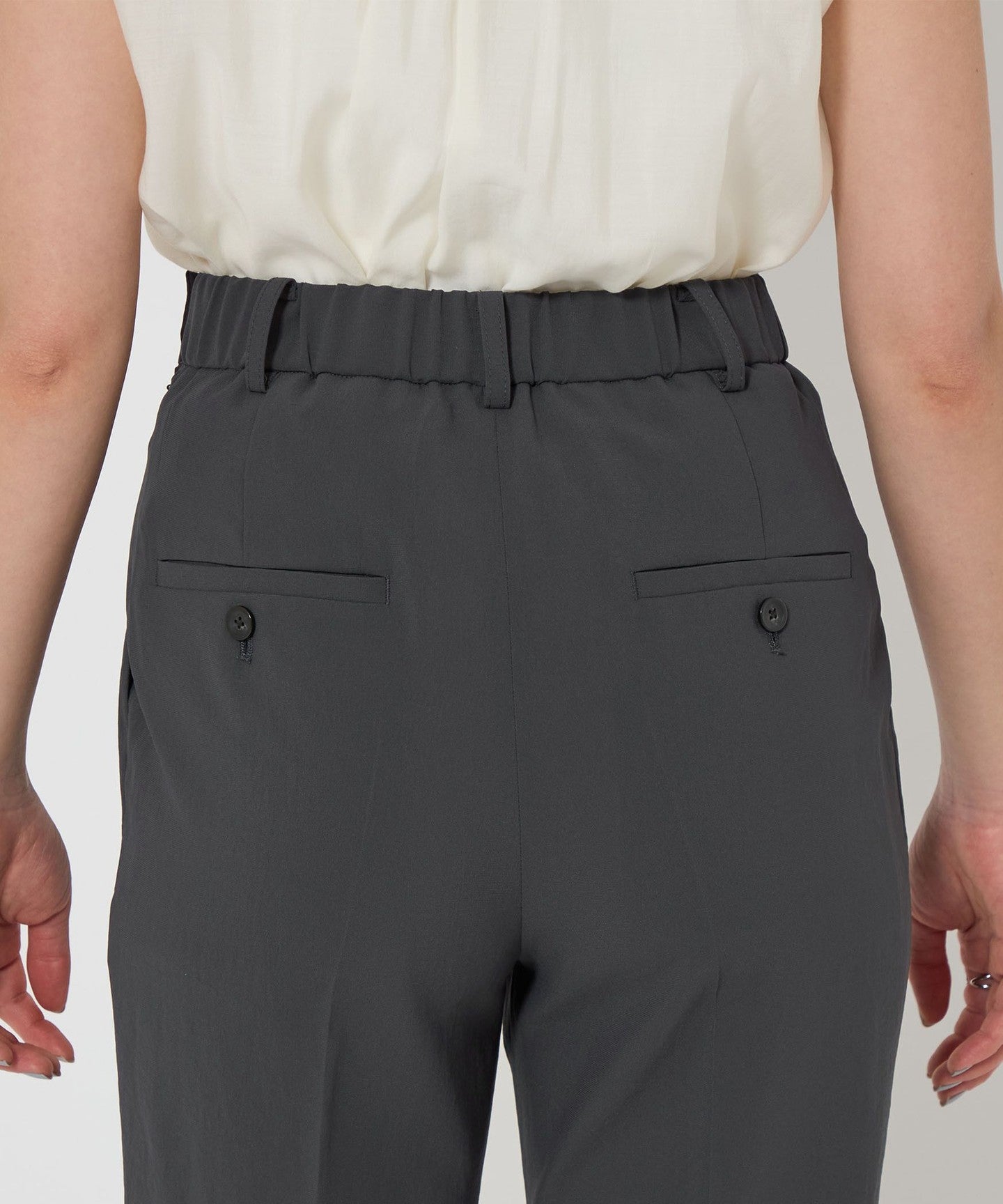 It has a neat look, but the back elastic waist makes it easy to wear.
