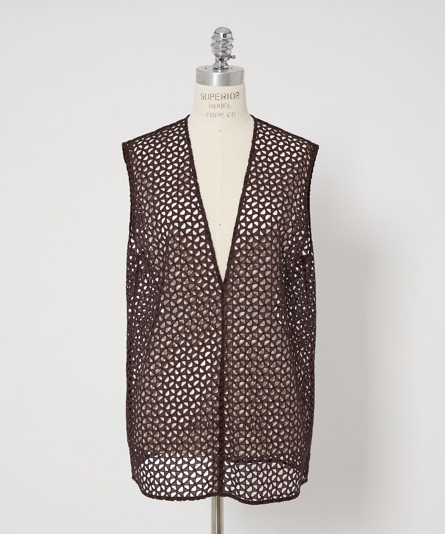 A slightly longer V-neck vest that makes the most of the texture of embroidered lace.