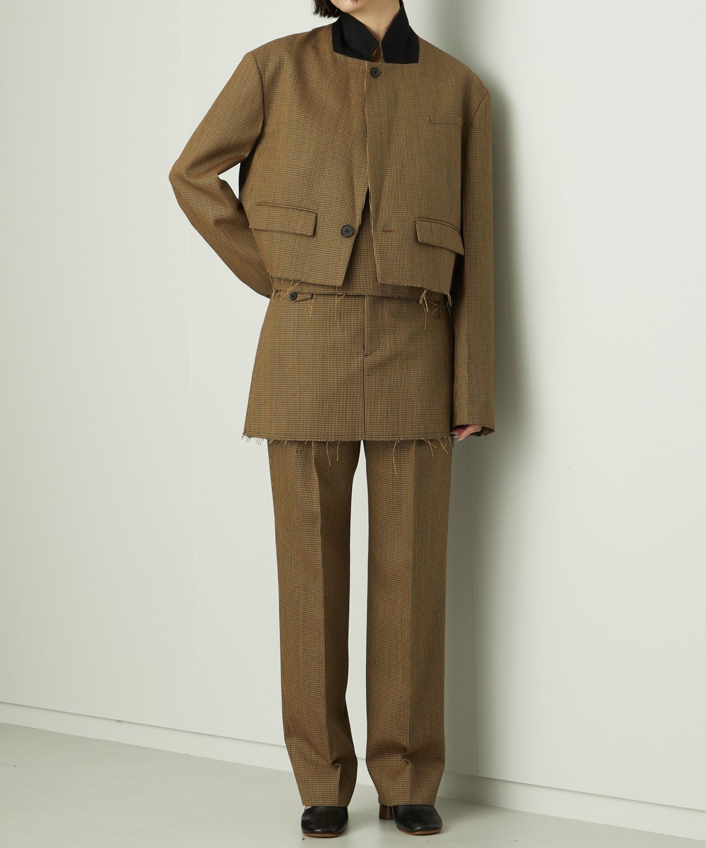 *This product was designed with an emphasis on design, and some parts are left unfinished (cut). As a result, the unfinished parts will gradually fray with repeated wearing and washing. If you are concerned about the fraying, do not pull on it forcefully, but simply remove the bothersome threads with scissors. Please keep this in mind as we hope you enjoy the unique atmosphere of this product.